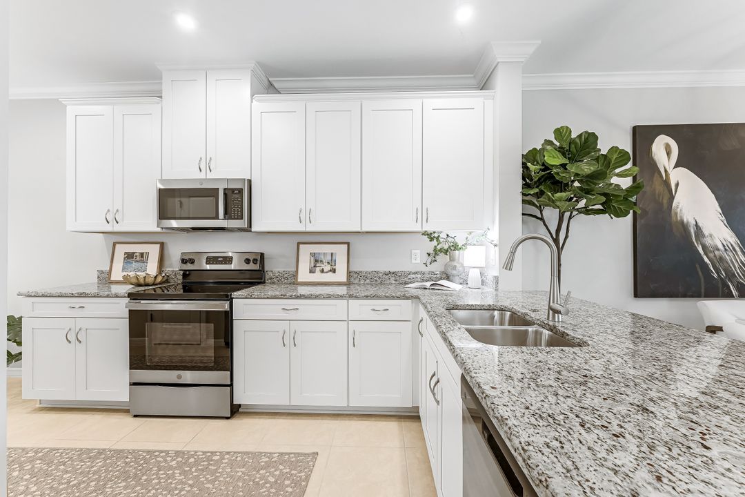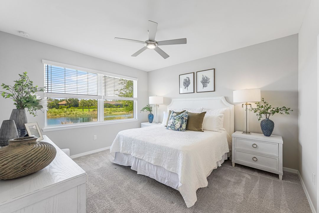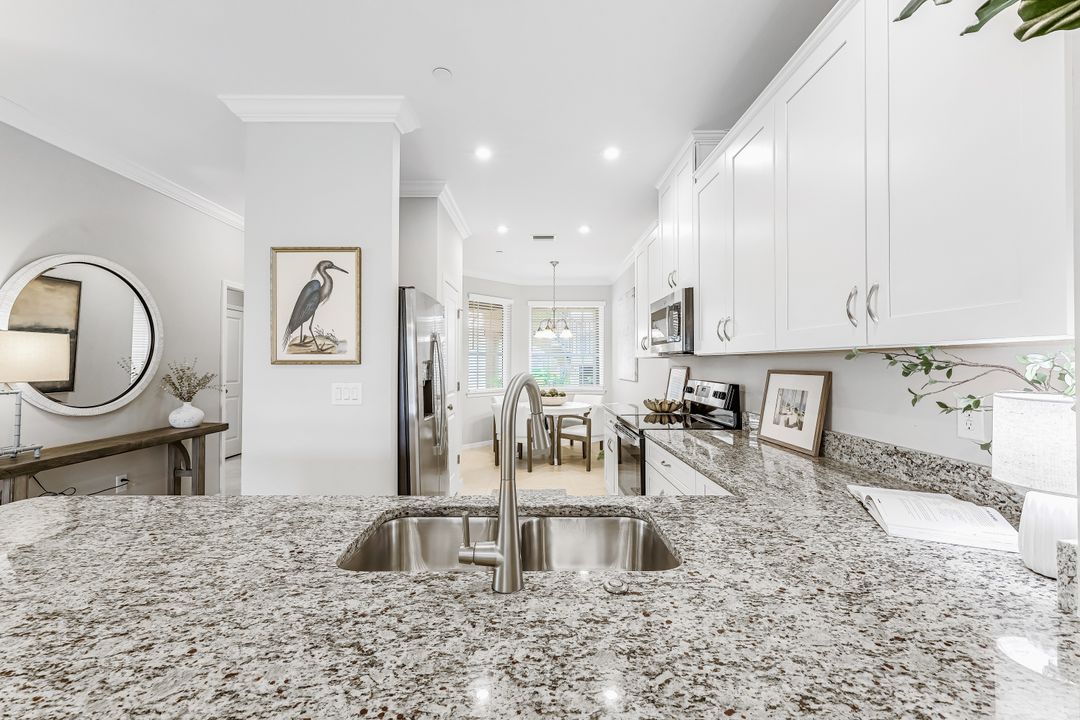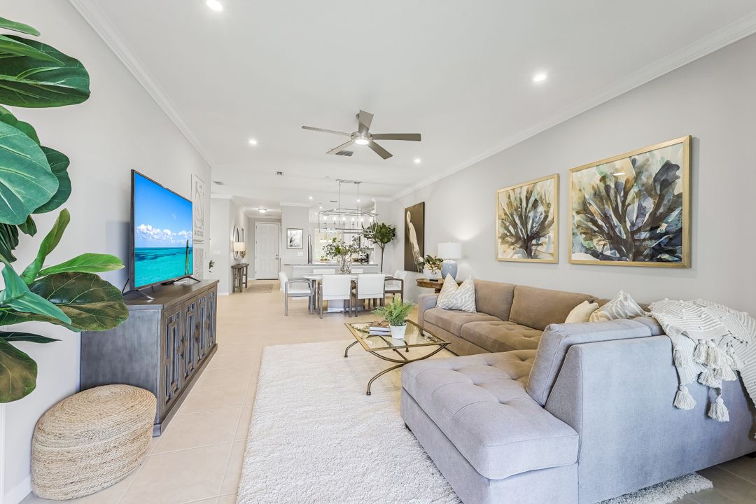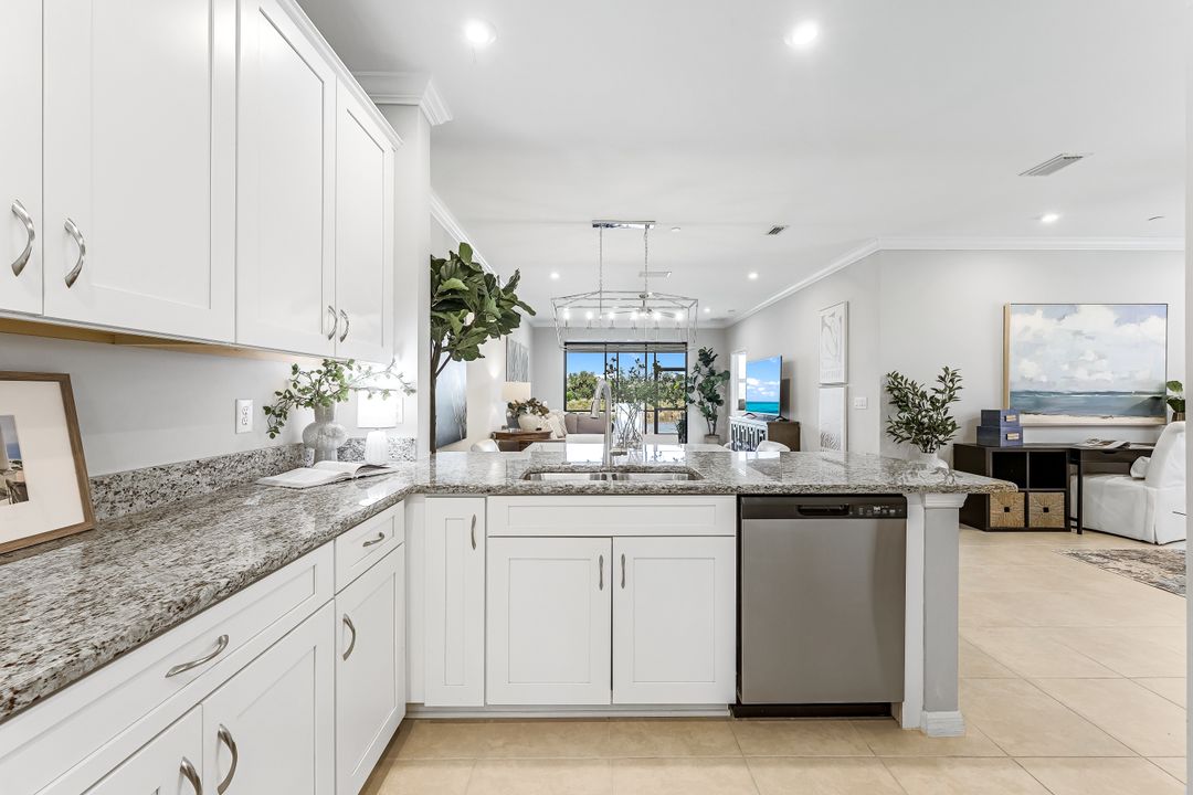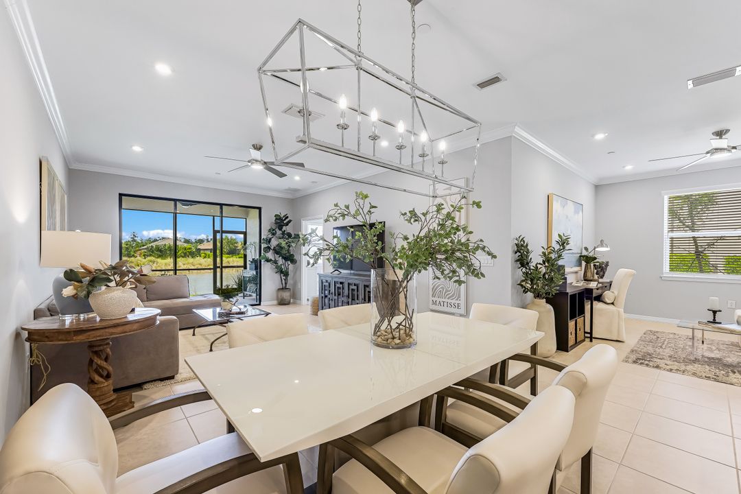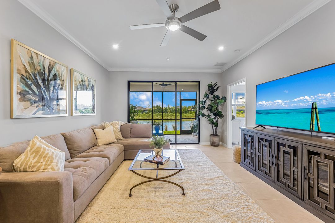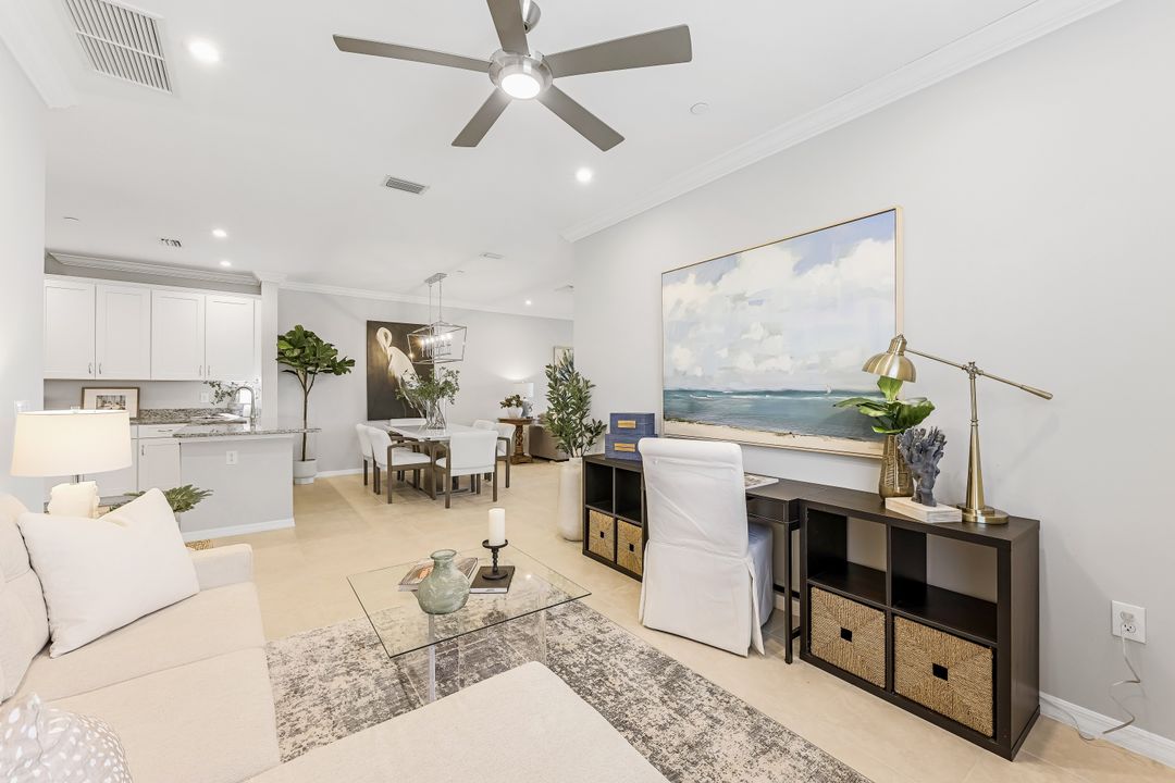 LIVE A VACATION LIFESTYLE IN ESPLANADE! This immaculate FIRST FLOOR END UNIT condo is situated at the end of a quiet cul-de-sac street with extra space between the neighboring building. From the moment you walk in the door you are greeted with a light and airy floorplan that leads you straight to the screened lanai overlooking the lake and golf course. Catch the Naples sunset 365 days a year from the lanai. There are 3 additional windows (Den & both bathrooms) compared to an interior unit. Notable features of this property include: tile floors throughout with carpeted bedrooms; crown molding throughout the living area/kitchen; white shaker style kitchen cabinets; GE stainless steel appliances; upgraded chandelier & fans; detached 1 car garage; and more! This property is being offered PARTLY FURNISHED. This property comes with a CLUB/SPORTS MEMBERSHIP which offers full access to all of Esplanade G&CC amenities including limited golf opportunities (2 day advanced tee times throughout the year). Esplanade is a true "Lifestyle Community" with something for everyone: resort pool complete with cabanas & poolside "Bahama Bar"; tennis; pickleball; bocce; Koquina Day Spa; fitness center; dog park; 14 miles of trails; 18 hole private golf course; restaurant, bar, wine tasting room, wine lockers, & Starbucks style cafe! Total monthly HOA/Club/Condo dues include water/sewer, building insurance, building maintenance, and access to all of Esplanade's resort style living amenities! Add this property and Esplanade Golf & Country Club of Naples to your list today!