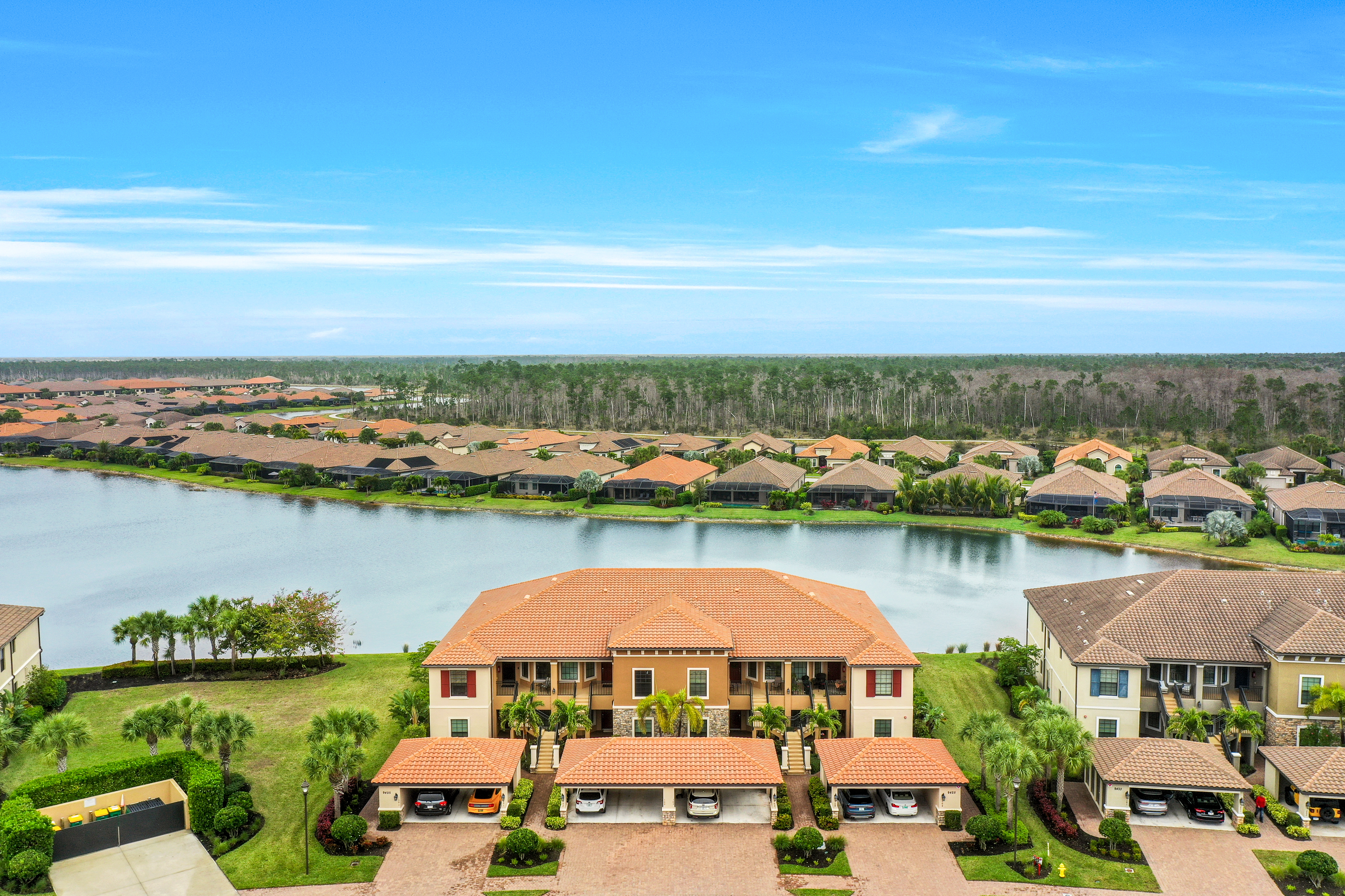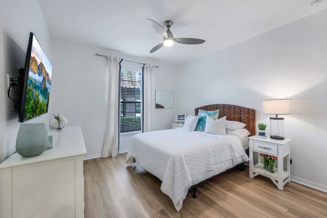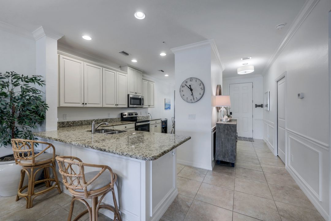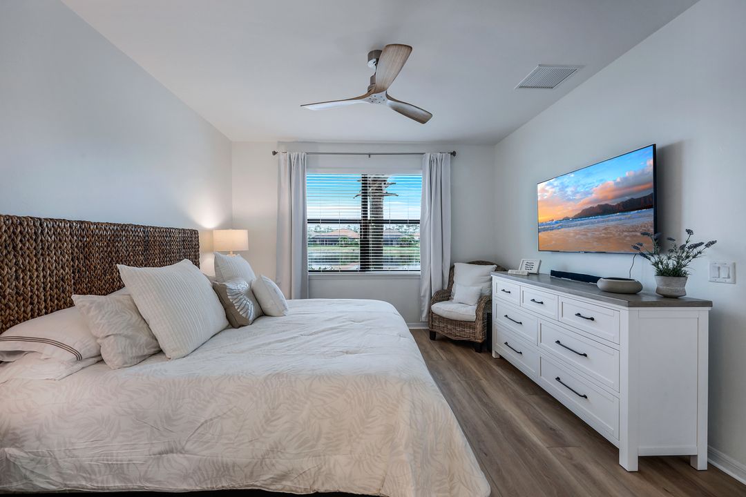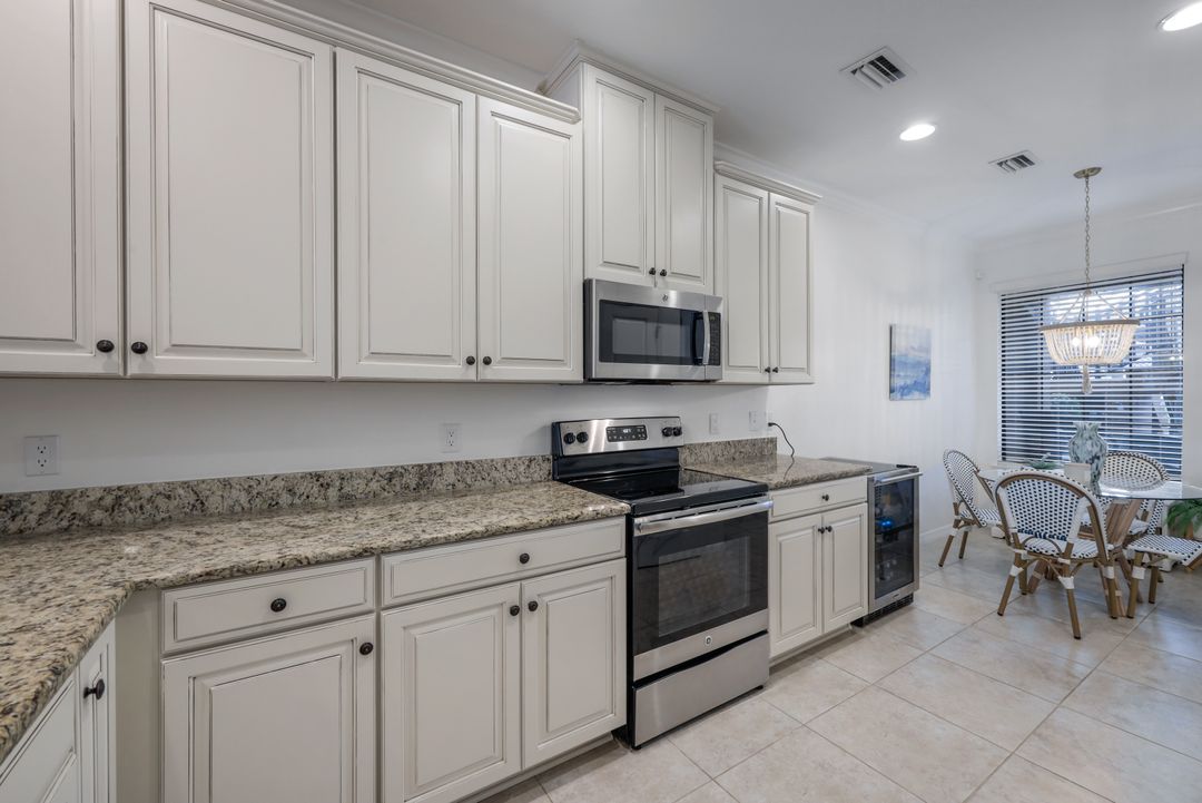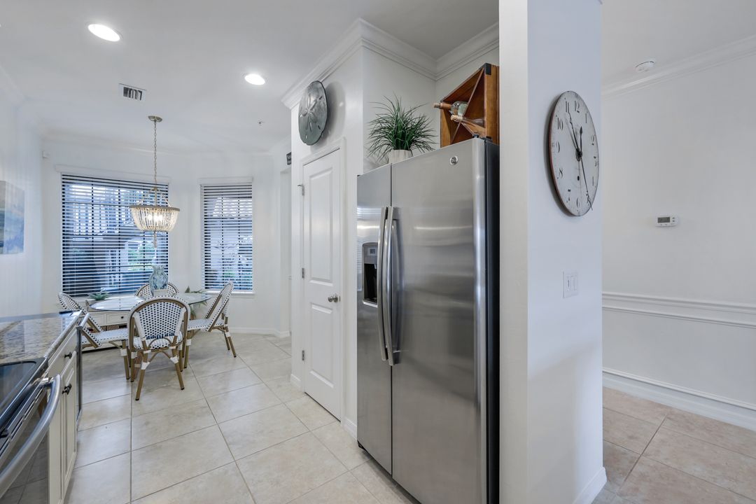 Live like you're on vacation every day at Esplanade Golf & CC. Welcome to this perfect, maintenance-free, 1st floor retreat that offers a fun-filled resort lifestyle combined with fresh coastal style. This open & airy home greets you with a sparkling lake view which can also be enjoyed from the screened lanai. There is plenty of space in the main great room/dining room for guests to mingle. The kitchen features upgraded 42” cabinetry, granite counters, stainless appliances & dining nook. Take in the lake view from the primary suite which includes 2 walk-in closets & ensuite bath. A pocket door to closes off the guest bed & bath for privacy & glass French doors close off the den. The high ceilings are set off with crown molding & the walls with wainscoting. Main living areas are tiled & new LVP added to the bedrooms. New white paint, ceiling fans & designer lighting polish off this beautiful home. This incredible property includes social membership to Esplanade where residents enjoy a 15,000 sq. ft. clubhouse, resort pool, lap pool, wellness center, salon & spa, tennis & pickleball courts, bocce, dog park, and multiple dining options including tiki bar & grill with poolside service.