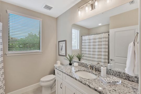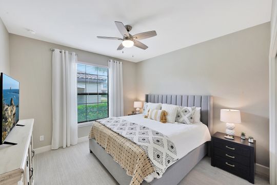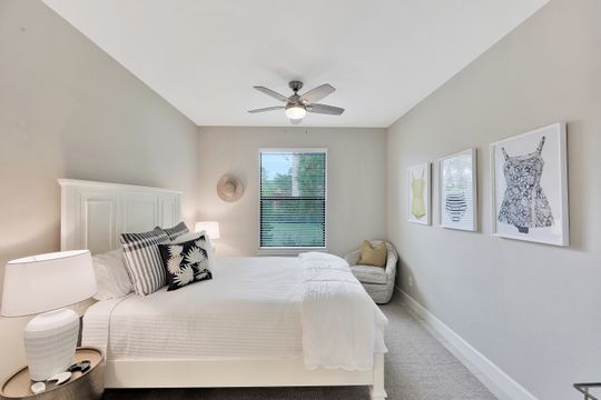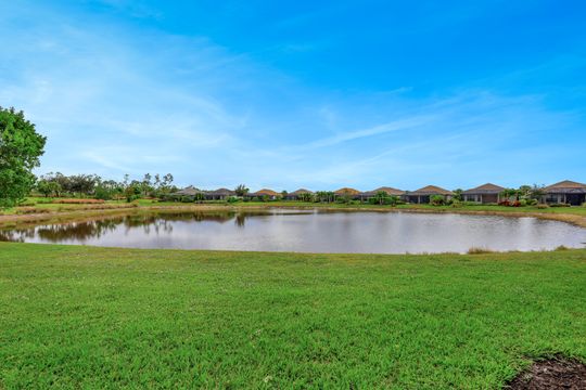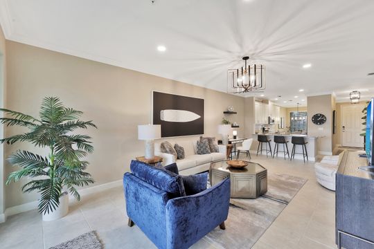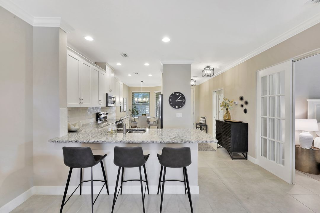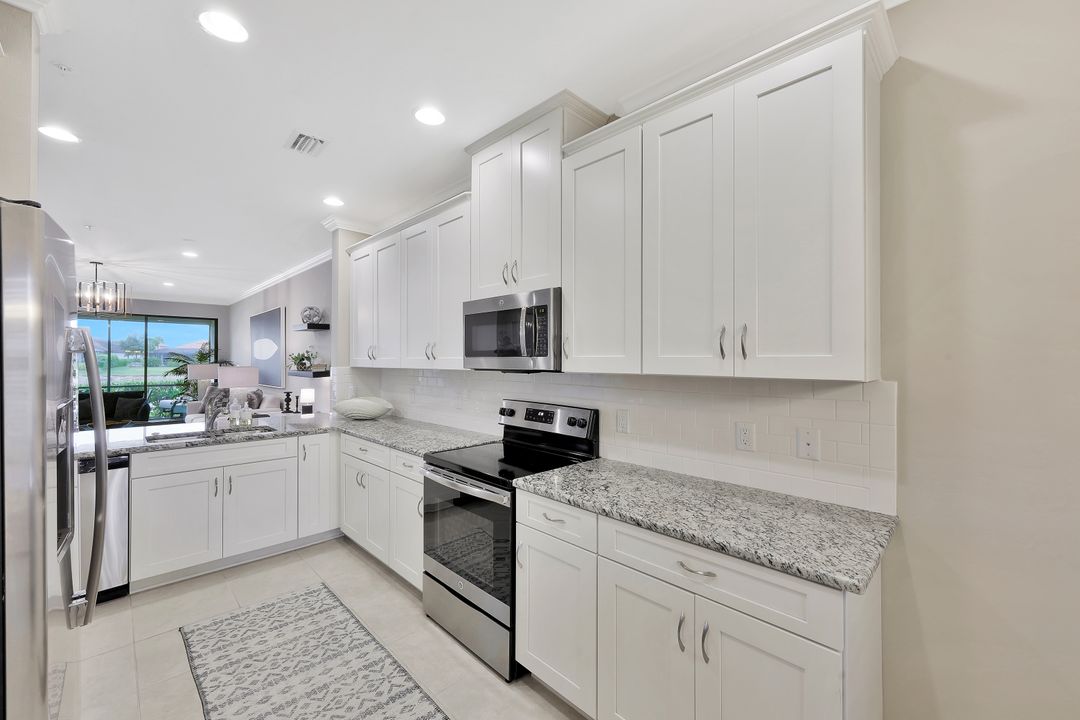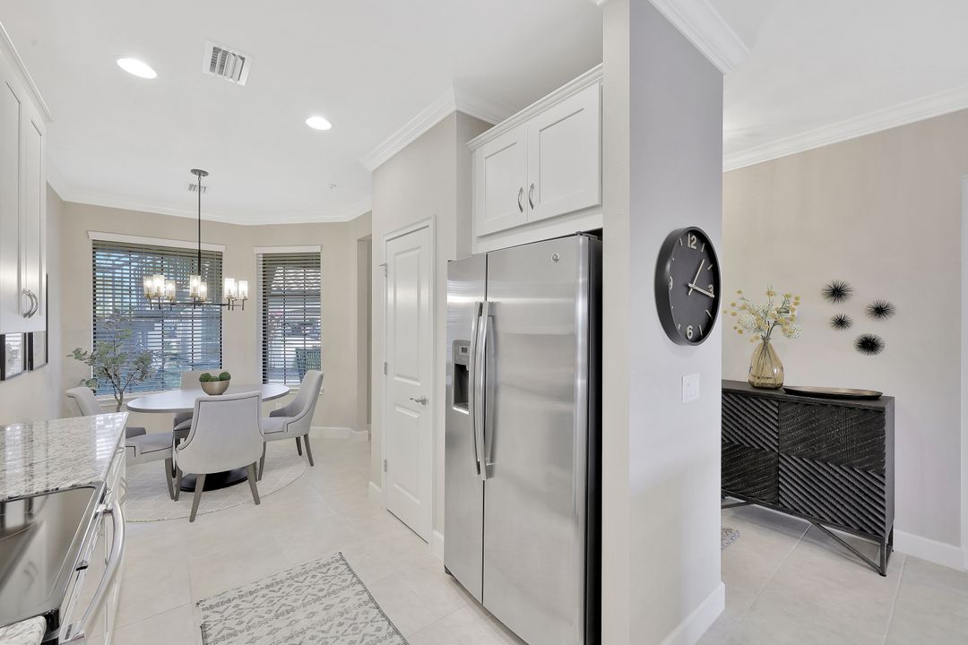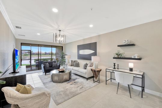 LIVE A VACATION LIFESTYLE IN ESPLANADE! This immaculate FURNISHED 2+Den/2 Bath FIRST FLOOR END UNIT condo is situated overlooking a tranquil lake on a quiet cul-de-sac street. Southern exposure and additional side windows make this condo light & bright 365 days a year! A long list of special features include: tile floors throughout the common areas and new sculpted carpet in the bedrooms; upgraded lights & fans; crown molding; white shaker cabinets; enclosed den with glass pocket doors; covered parking spot & storage closet; and more! This condo is being offered furnished which includes a long list of high end furniture & decor. This property comes with a SOCIAL/SPORTS MEMBERSHIP (ability to play golf with 2 day tee times throughout the year)! Esplanade is a true "Lifestyle Community" with something for everyone: resort pool complete with cabanas & poolside "Bahama Bar"; tennis; pickleball; bocce; Koquina Day Spa; fitness center; dog park; 14 miles of trails; 18 hole private golf course; restaurant, bar, wine tasting room, wine lockers, & Starbucks style cafe!