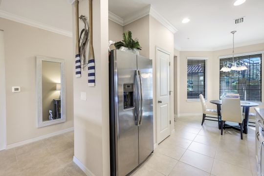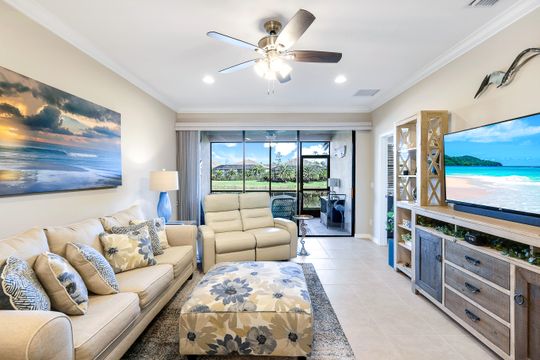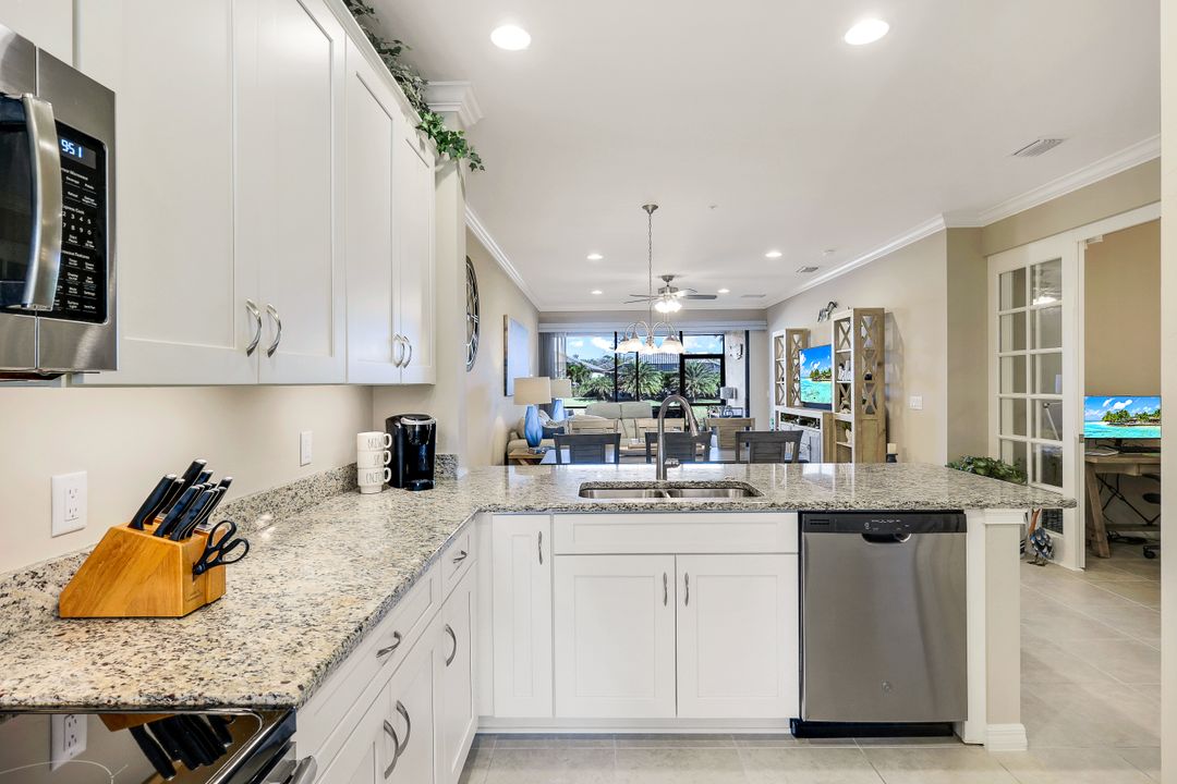 Sold turnkey furnished, this exceptional 2-bedroom, 2-bathroom condo with a den in the highly desirable Esplanade Golf & Country Club is meticulously kept and ready for season. This Benvenuto unit stands out with custom doors and blinds in the den, offering enhanced privacy and flexibility, perfect for use as a guest room or home office. Every detail has been thoughtfully designed to balance luxury with functionality. Elegant crown molding enhances the main living areas, while tile flooring creates a sleek, polished look that is easy to maintain. The kitchen is a chef's delight, featuring gleaming granite countertops, white cabinetry, and modern updates such as high-quality fans that add to the home's contemporary feel. As you step into this beautifully maintained condo, you’ll immediately notice its open and airy layout, designed for relaxation and entertaining. The living and dining areas flow seamlessly into the screened lanai, where you can unwind with serene views, making it an ideal spot to enjoy morning coffee or evening sunsets. The primary bedroom suite is a tranquil oasis with spacious walk-in closets and an ensuite bathroom with a spa-like atmosphere. The guest bedroom and bathroom are equally well-appointed, providing comfort and convenience for friends and family. With its turnkey furnishings, all you need to bring is your suitcase. Esplanade Golf & Country Club is more than a community; it’s a destination for those seeking an amenity-rich, resort-style lifestyle. Residents enjoy many activities and facilities designed to cater to every interest. Spend your days lounging by the stunning resort pool with private cabanas and the popular Bahama Bar. Indulge in pampering treatments at the Day Spa or maintain your fitness routine at the state-of-the-art fitness center. For sports enthusiasts, Esplanade offers tennis, pickleball, bocce courts, and 14 miles of scenic walking and biking trails that wind through the lush, beautifully landscaped grounds. The community’s 18-hole private golf course is a golfer's paradise, combining challenging play with breathtaking views. Food and wine lovers will appreciate the on-site culinary center, which features a full-service restaurant, a wine-tasting room with lockers for private collections, and a charming café perfect for grabbing a latte or meeting neighbors. The abundance of social events and clubs makes it easy to connect with fellow residents. Whether you’re hosting friends, enjoying a quiet evening at home, or exploring the numerous community amenities, every day at Esplanade feels like a vacation. This condo is conveniently located in Naples, just minutes from world-class beaches, upscale shopping, and vibrant dining options. It’s the perfect blend of tranquility and accessibility, allowing you to enjoy Naples's charm and sophistication. Don’t miss your chance to make this condo your home. Schedule your tour today and experience the unparalleled lifestyle of Esplanade Golf & Country Club!