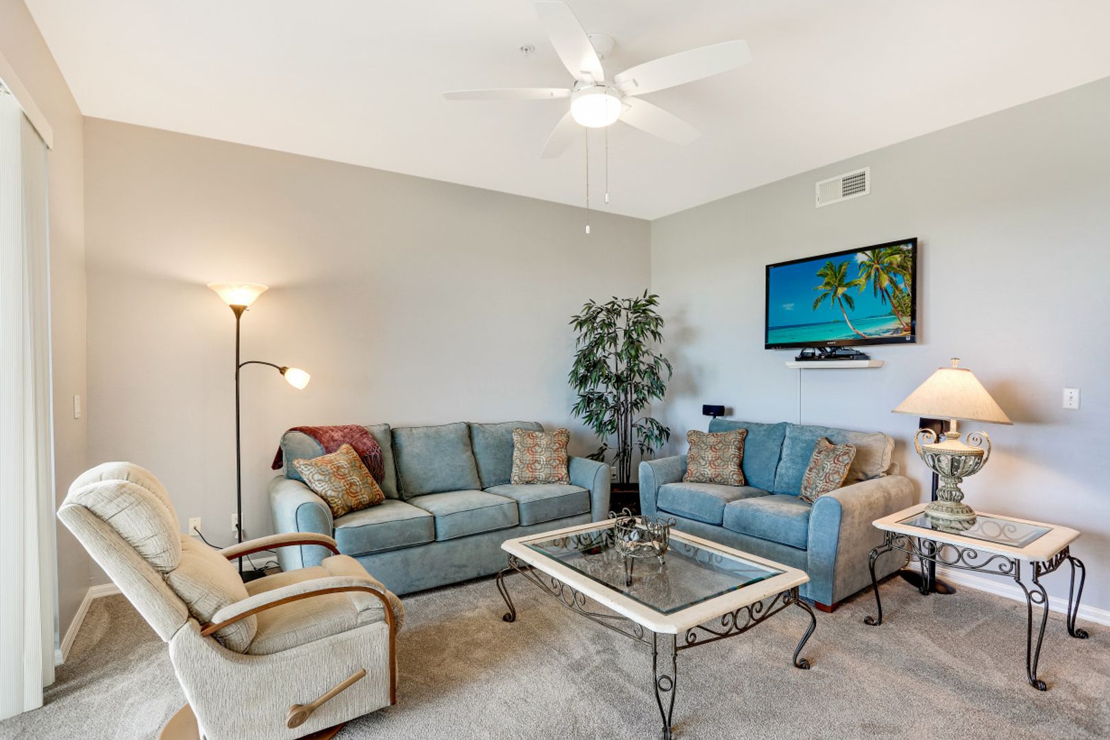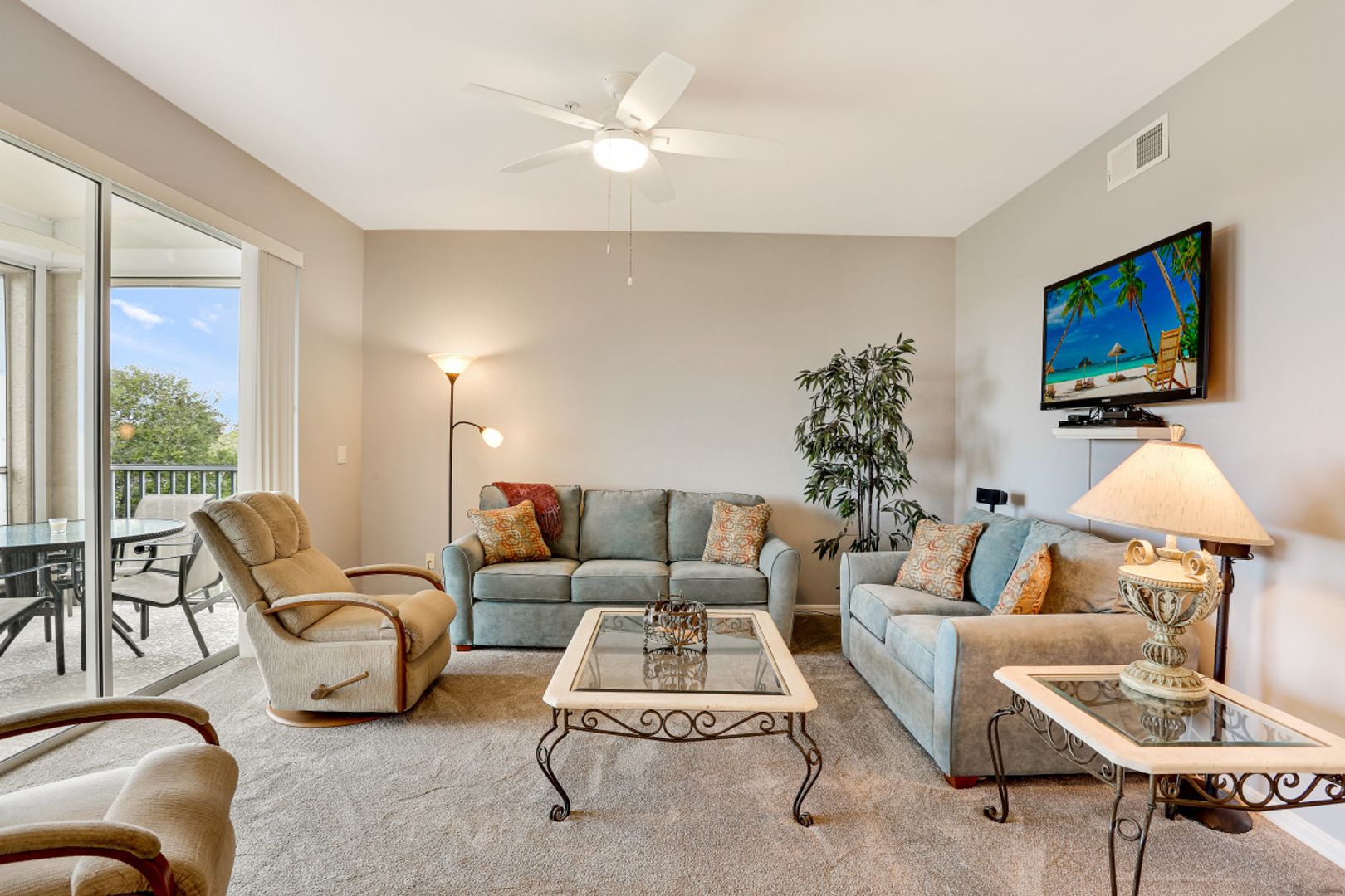 BRAND NEW AC AND IMPACT WINDOWS - rarely available "penthouse" corner unit with so much light! Enjoy the best of both worlds -- golf on site and Bonita Beach only a short drive away. Bright and spacious unit overlooking 18-hole golf course. This home awaits your personal touch -- so much room, a blank canvas where you can be creative. Large, open living/dining/kitchen area, lanai overlooking golf course perfect for observing the western sky, a master bedroom suite and a spacious guest bedroom. There is also a lovely foyer/entrance area, which helps to make the unit feel more like a home! Highland Woods is a preferred community with amenities that include clubhouse with both formal and casual dining, outdoor patio with fire pits, 18 hole course designed by Gordon Lewis, Fitness Center with a multitude of classes, Bocce Ball, heated clubhouse pool/spa, 4 lighted tennis courts and SO many club activities and events to choose from. Hurry, as corner units with views like this are rarely available in Highland Woods.