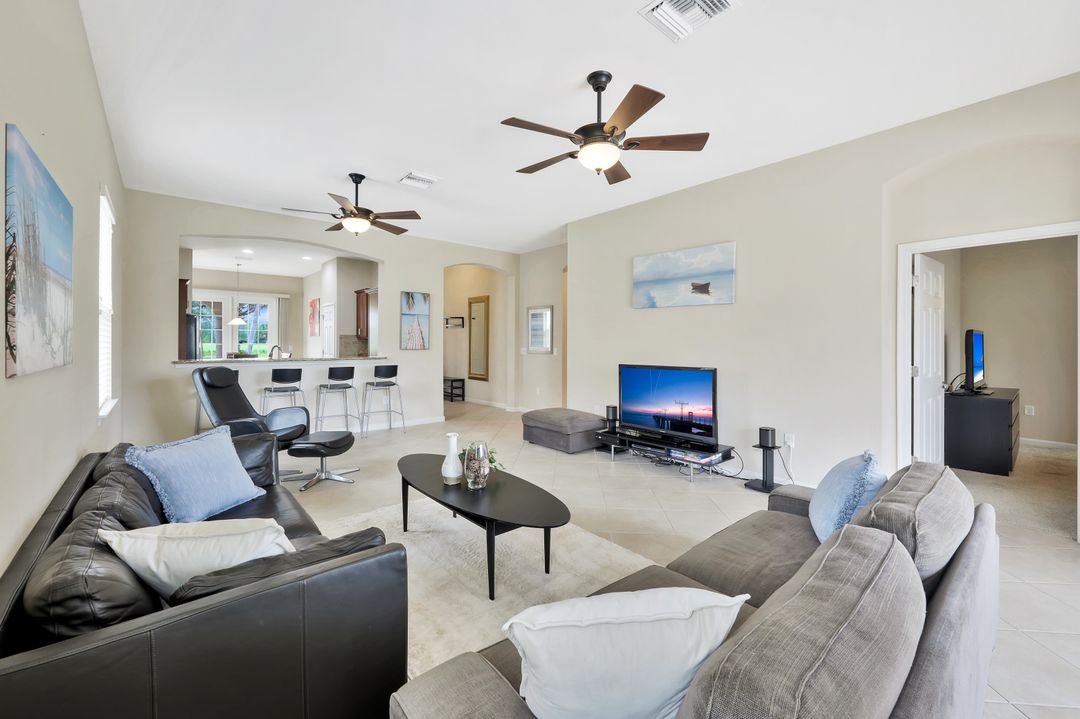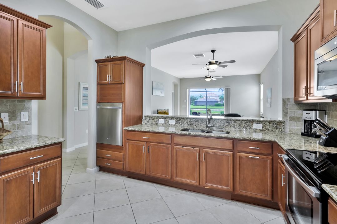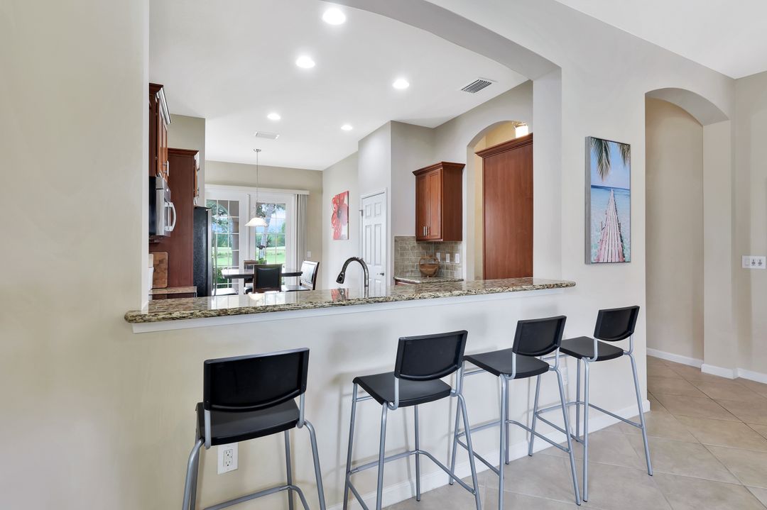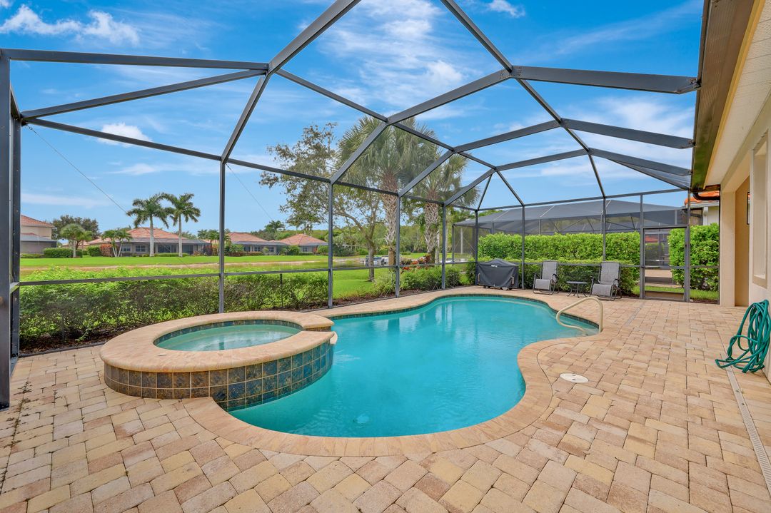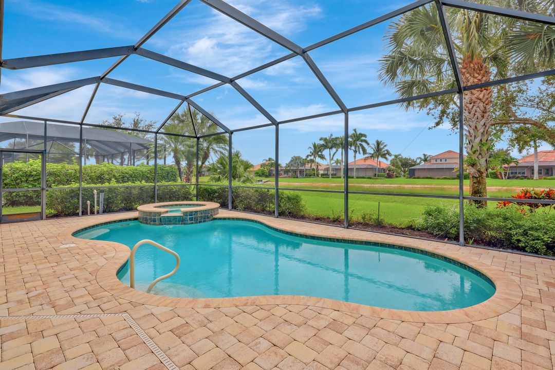LIVE A VACATION LIFESTYLE IN A COUNTRY CLUB SETTING IN AMENITY-RICH THE QUARRY! NAVIGABLE LAKE ACCESS/ SOUTHERN EXPOSURE PLUS GOLF AND WATER VIEWS FROM THE FRONT AND REAR! This 3 bedroom 2 bath home is being sold TURNKEY! The large eat in kitchen has lots of natural light, maple cabinets, stainless steel appliances, and granite counter tops. The spacious Owners Suite also provides access to the lanai. The lanai has a pool with a spa and is perfect for entertaining family and guests. Relax on your front porch enjoying the golf/water view. This home also has a newer AC (2021) as an added bonus. Just bring your suitcase to start enjoying all The Quarry has to offer! The Quarry is a gated lakefront community offering over 500 acres of lakes for boating, water skiing, paddle boarding, jet skiing, kayaking, and fishing.The Beach Club includes Tennis, Pickle ball, Bocce Ball, a Tiki Bar, Restaurant, Pool-Side food/drink service, Fitness Center, and a full-time activities director. The Beach Club is undergoing an $18 million Expansion and Renovation Project which is expected to be completed by December 2023.