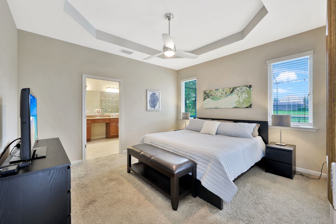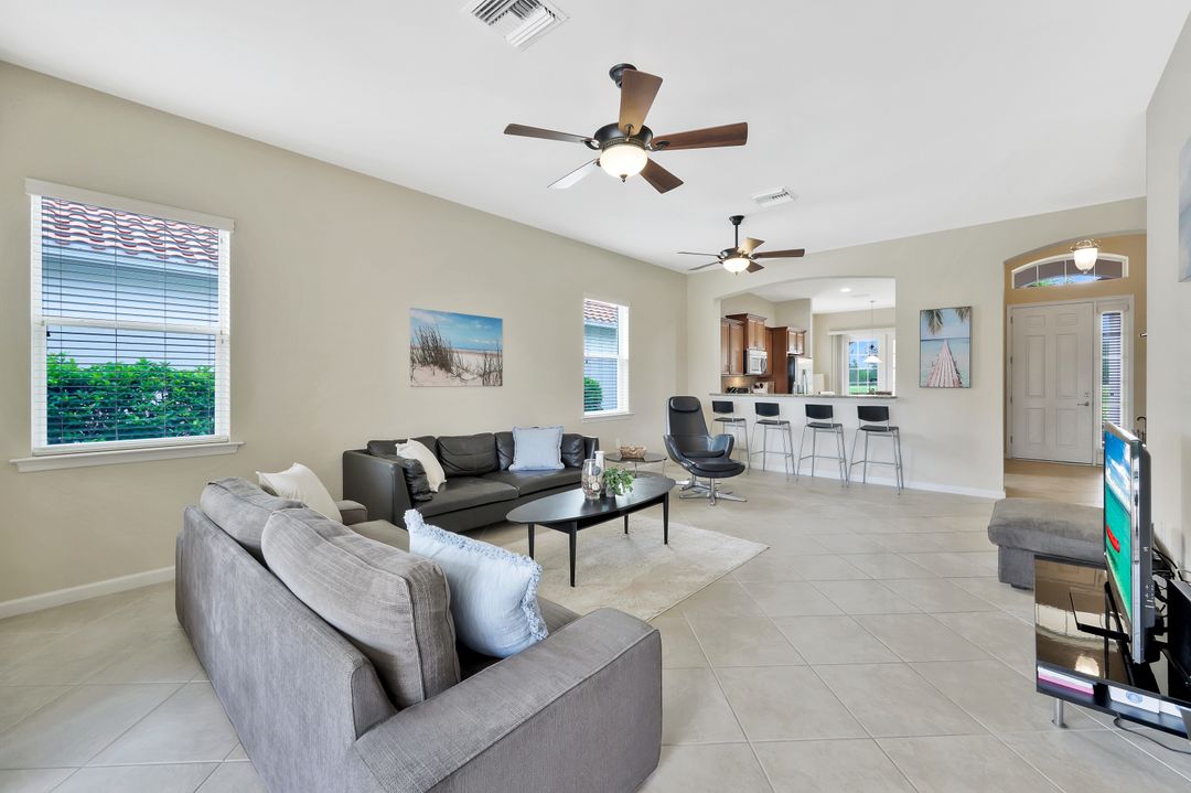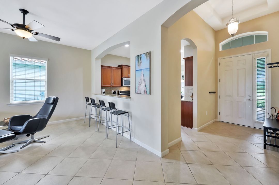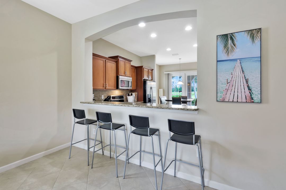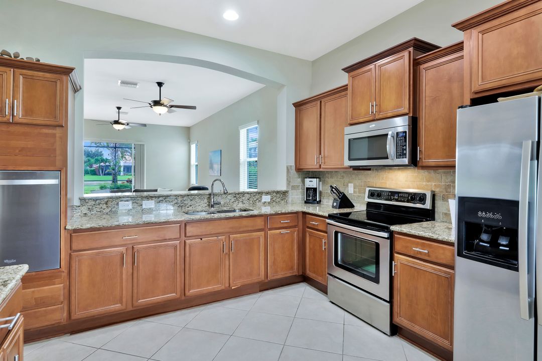 LIVE A VACATION LIFESTYLE IN A COUNTRY CLUB SETTING IN AMENITY-RICH THE QUARRY! NAVIGABLE LAKE ACCESS/ SOUTHERN EXPOSURE PLUS GOLF AND WATER VIEWS FROM THE FRONT AND REAR! This 3 bedroom 2 bath home is being sold TURNKEY! The large eat in kitchen has lots of natural light, maple cabinets, stainless steel appliances, and granite counter tops. The spacious Owners Suite also provides access to the lanai. The lanai has a pool with a spa and is perfect for entertaining family and guests. Relax on your front porch enjoying the golf/water view. This home also has a newer AC (2021) as an added bonus. Just bring your suitcase to start enjoying all The Quarry has to offer! The Quarry is a gated lakefront community offering over 500 acres of lakes for boating, water skiing, paddle boarding, jet skiing, kayaking, and fishing.The Beach Club includes Tennis, Pickle ball, Bocce Ball, a Tiki Bar, Restaurant, Pool-Side food/drink service, Fitness Center, and a full-time activities director. The Beach Club is undergoing an $18 million Expansion and Renovation Project which is expected to be completed by December 2023.