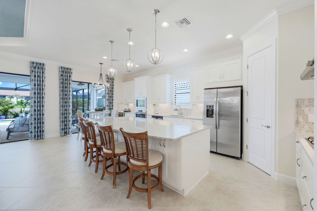 LIVE A VACATION LIFESTYLE IN ESPLANADE! Situated on oversized lot at the end of the cul-de-sac, this "Lazio" (3+Den/3BA) offers an open great room style floorplan with two sets of sliding glass doors to the extended lanai complete with outdoor kitchen, GAS heated pool/spa, lush landscaping, and lake views! A long list of special features include: Extended Gourmet Kitchen complete with quartz countertops, luxury backsplash, GAS Cooktop, wall oven, and wine cooler; diagonal tile floors throughout the common areas and NEW luxury laminate in the bedrooms/den; plantation shutters; fresh interior & exterior paint; walk in showers in all baths; crown molding; extra long driveway; and more! FULL GOLF MEMBERSHIP INCLUDED! Esplanade is a true "Lifestyle Community" with something for everyone: resort pool complete with cabanas & poolside "Bahama Bar"; tennis; pickleball; bocce; Koquina Day Spa; fitness center; dog parks; 14 miles of bike/walking trails; 18 hole private golf course; 15,000 Sq Ft clubhouse featuring restaurant, bar, wine tasting room, wine lockers, & Starbucks style cafe! TOTAL HOA fees just $972/month and includes landscaping, ALL club amenities, & golf dues.