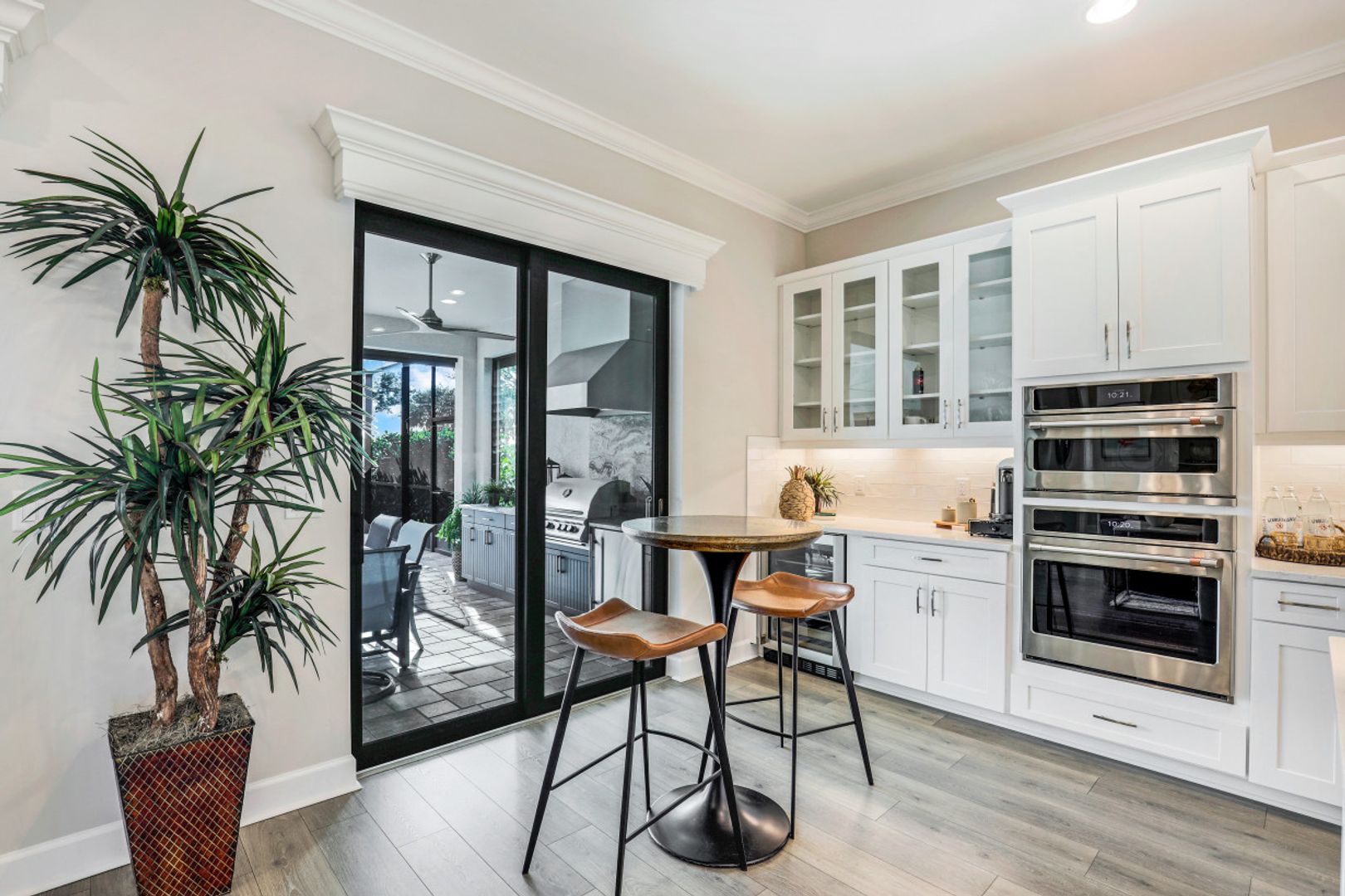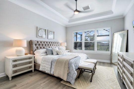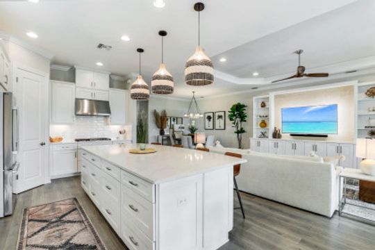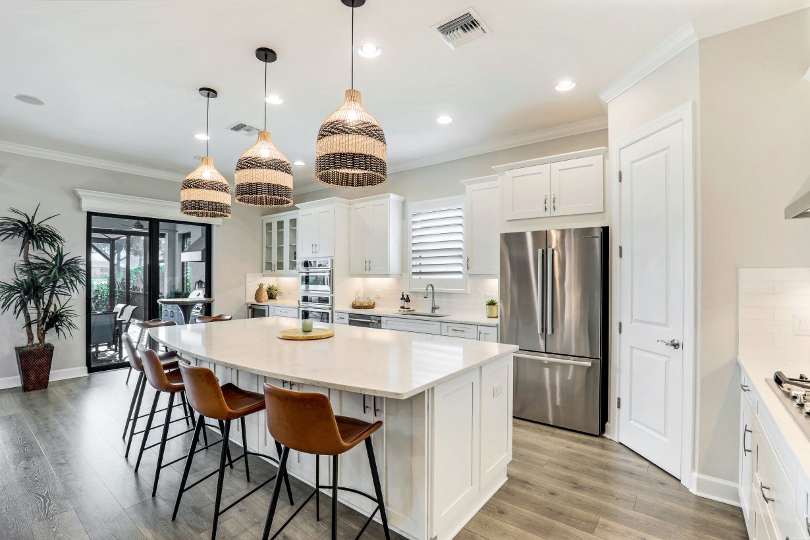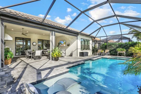 LIVE A VACATION LIFESTYLE IN ESPLANADE! Built in 2020, this FULL GOLF MEMBERSHIP "Lazio" has it all and comes TURNKEY! A long list of special features include: 3+Den, 3 Baths; GAS heated pool/spa/sunshelf and expanded lanai featuring an outdoor kitchen complete with grill, hood, refrigerator, & sink; Gourmet Kitchen incl. an oversized center island, quartz countertops, wall oven, GAS cooktop, and wine cooler; southeastern rear exposure; hurricane impact windows/doors; wood floors throughout; electric roll down hurricane shutters; extended garage (20'x24') with finished floor & cabinetry; closet built-ins; plantation shutters; and more! Esplanade is a true "Lifestyle Community" with something for everyone: Resort Pool complete with cabanas and beach entrance; 6 tennis courts; 4 bocce balls courts; 4 pickleball courts; Koquina Day Spa offering hair, nail, facial, and spa treatments; Techno Gym with Aerobics Room; Gated Dog Park; Poolside Bahama Bar; 14 miles of bike/walking trails; 18 hole private golf course (Can use your own cart); 15,000 Sq Ft Culinary Center featuring restaurant, bars, wine tasting room, wine lockers, & Starbucks style cafe! CDD paid in full ($30k value)!