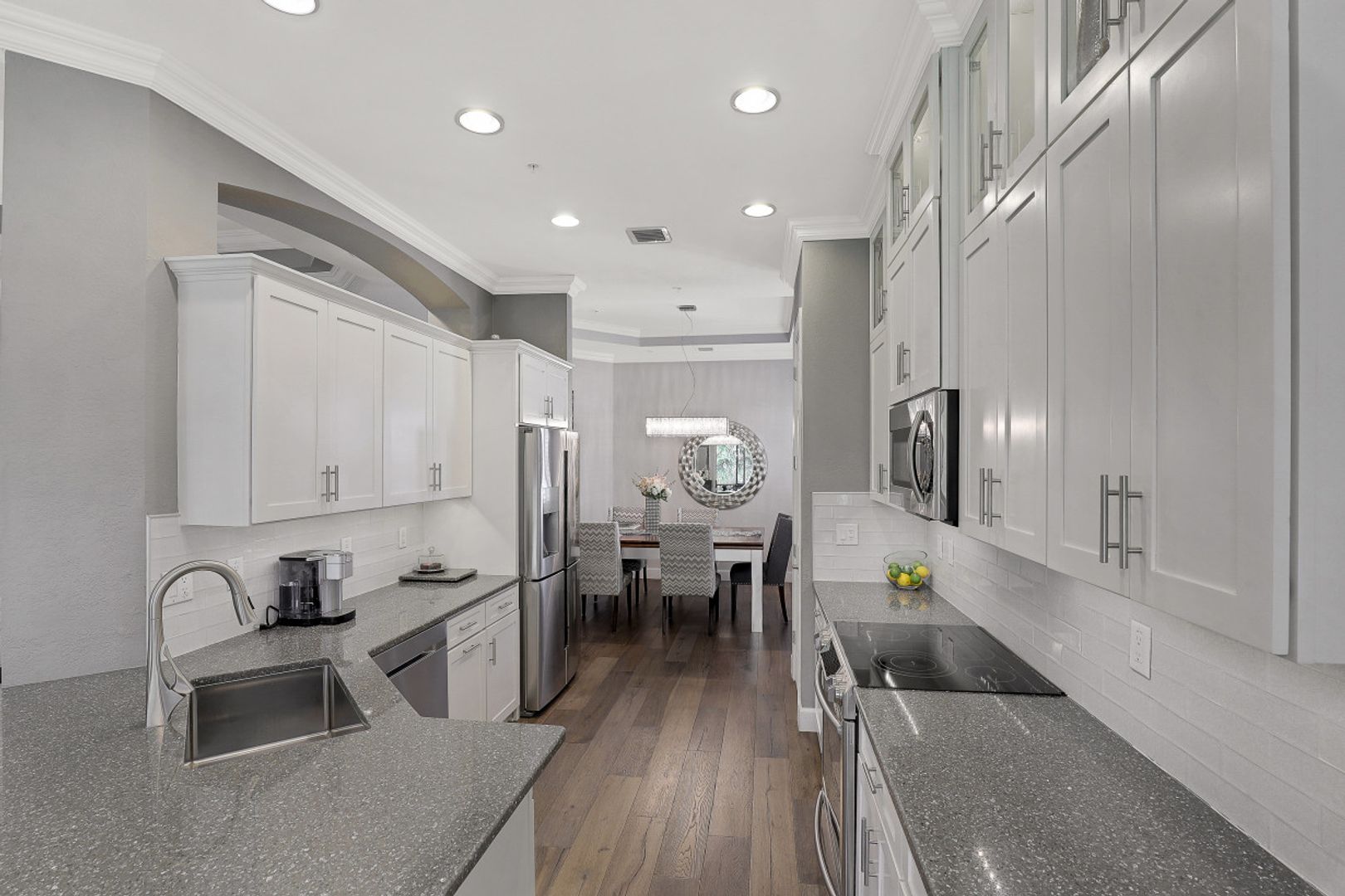 START LIVING A VACATION LIFESTYLE IN THE QUARRY! Enjoy the sunrise overlooking a pristine preserve from this SECOND FLOOR END UNIT Coach Home! Built in 2010, this updated condo features 3 Bedrooms, Den, 2.5 Baths, and an 2 Car ATTACHED GARAGE. Recently remodeled over the last few years including new kitchen, high end wood floors, oversized baseboards, plantation shutters, and a spa like master bath including custom steam shower and free standing jetted tub. Electric roll down shutters on the lanai. The Quarry is a Lakefront RESORT STYLE LIVING COMMUNITY offering something for everyone. Residents enjoy resort pool, Tiki Bar with Food & Beverage service, Restaurant, Full Time Activities Director, Fitness Center, Movement Studio, Tennis Courts, Bocce Courts, and Pickleball courts as part of their Master HOA Dues (No memberships required). The Golf Lodge & Golf Club offer an 18 hole PGA Level Hurdzan Frye course and its own private clubhouse & restaurant (Golf Memberships available but golf memberships are not mandatory for residents). Go boating/skiing/sailing/paddle boarding/jet skiing on 500 acres of fresh water lakes (Slips available for lease). THE QUARRY is sure to impress all!