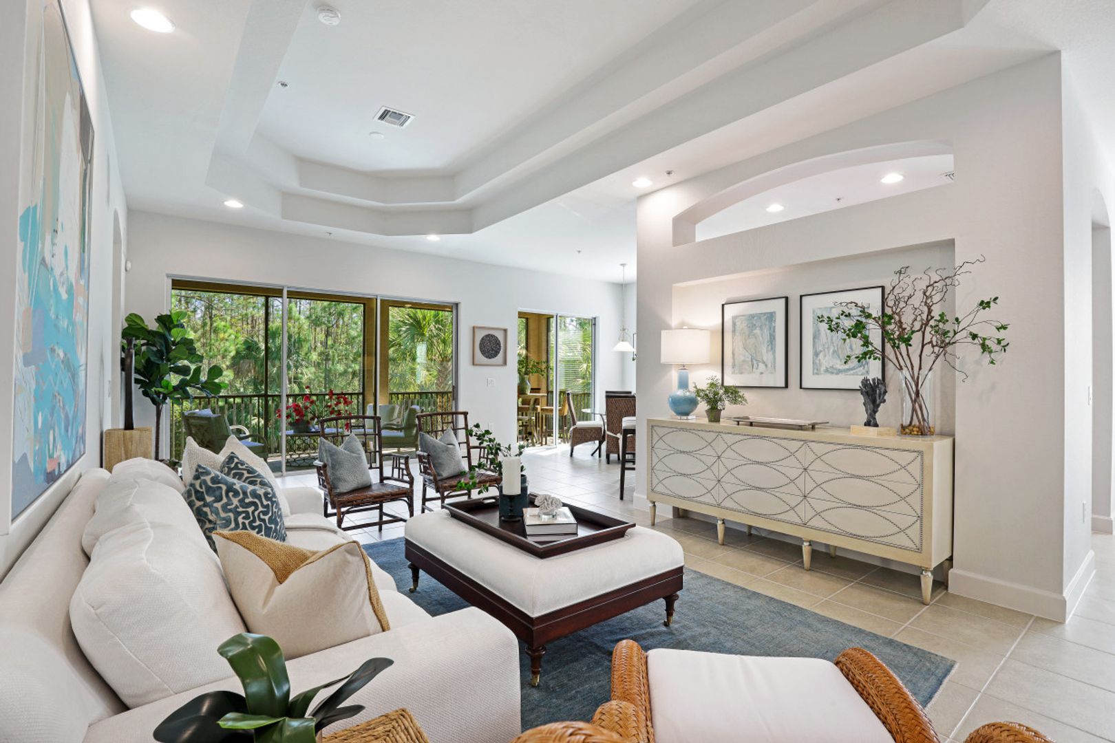 LIVE A VACATION LIFESTYLE IN THE QUARRY! This spacious second floor, end unit condo/coach home offers 3 Bedrooms, Den, 2.5 Baths, attached 2 car garage, and 2297 sq ft under air. The freshly painted coach home features an abundance of windows, two sets of sliders to the screened in lanai, 10' ceilings, 8' doors, in wall surround sound speakers, BRAND NEW LG Black stainless appliances including french door refrigerator, and a BRAND NEW AC! The Quarry is a lakefront community offering something for everyone: Boating, Golf, Tennis, Pickleball, Bocce Ball, Tiki Bar, Restaurant, Pool-Side Food/Drink Service, Gym, Social Activities including Full Time Social Director, and more! The Quarry offers a lifestyle like no other, including an impressive "Lake Lodge" and over 500 acres of navigable lakes and a private 18 hole Golf Club (Not Mandatory). An impressive $18M renovation & expansion of the Lake Lodge & Beach Club is under way and is to be completed by early 2023. HOA/Condo dues include access to all community amenities (with the exception of The Golf Lodge/Golf), water/sewer, building maintenance, and building insurance.