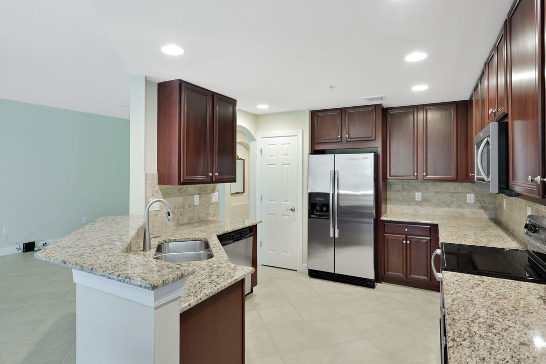 LIVE A VACATION LIFESTYLE IN AN UPSCALE COUNTRY CLUB SETTING! This meticulously maintained first-floor Coach Home offers an inviting blend of comfort, style, and effortless resort living. Featuring 2 bedrooms plus a den, 2 full bathrooms, and being offered partially furnished, this residence is ideal for those seeking a refined, move-in-ready home in one of Naples’ most desirable lakefront communities. Step onto your private lanai and enjoy serene preserve views, creating a peaceful backdrop for morning coffee or sunset relaxation. Inside, the well-designed floor plan showcases a spacious kitchen with granite countertops, upgraded cherry wood cabinetry, tumbled-tile backsplash, under-cabinet lighting, and stainless steel appliances perfect for those who love to cook or entertain.
