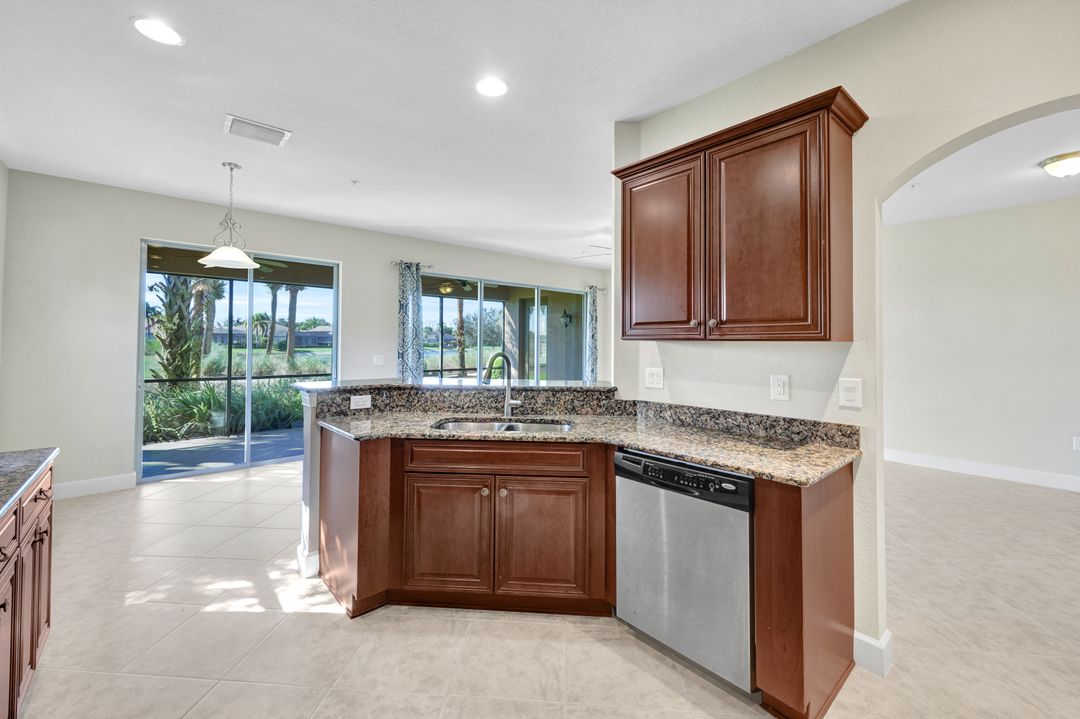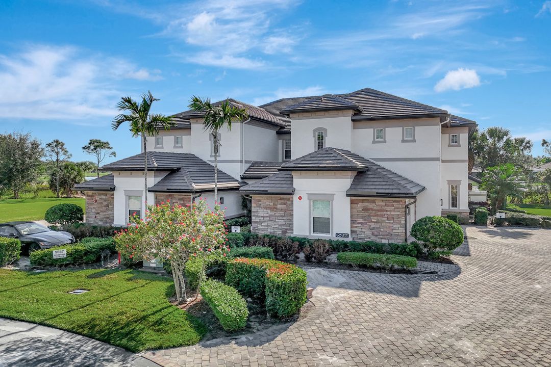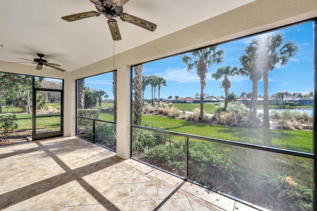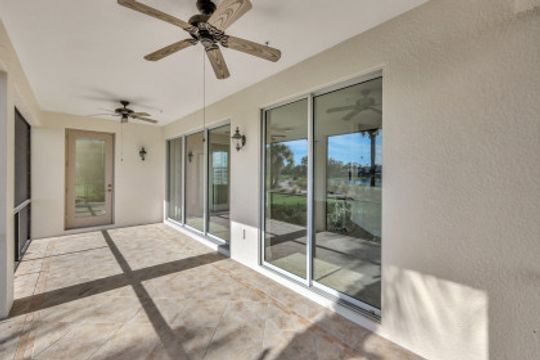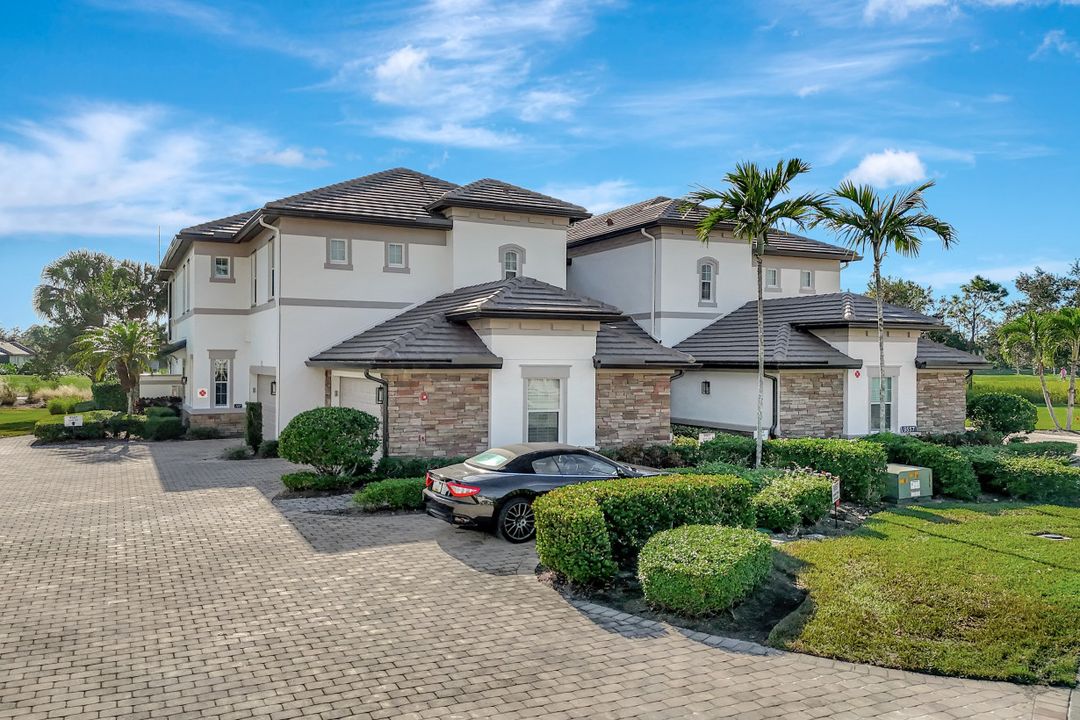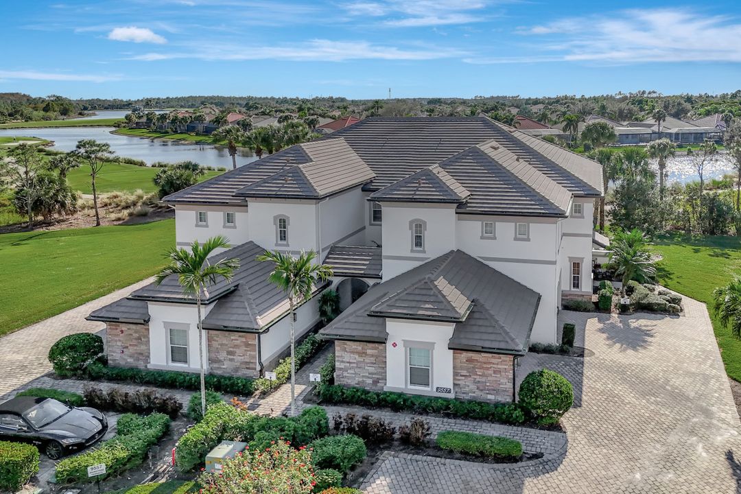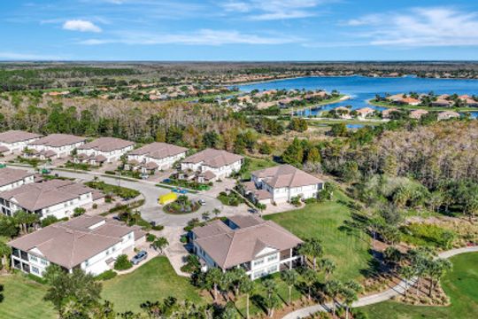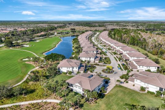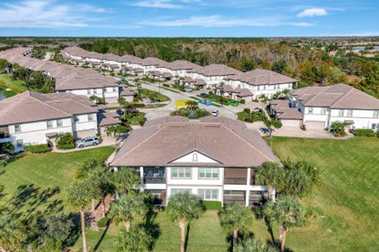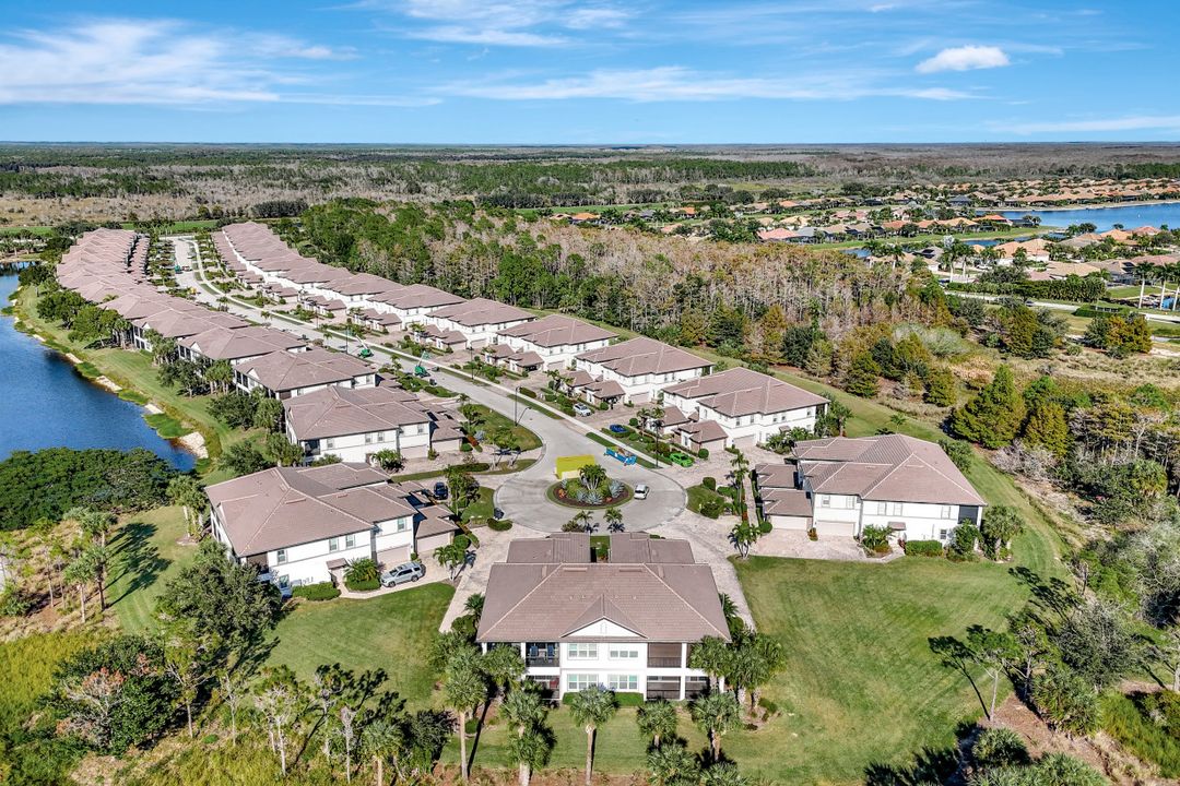 Experience Luxurious Living in The Quarry! Indulge in a vacation lifestyle every day in this delightful end-unit Coach Home located within The Quarry, a distinguished country club community. This spacious and light-filled residence features two bedrooms plus a den, two bathrooms, and a two-car garage, all set on a tranquil cul-de-sac with southern exposure, offering expansive views of the golf course and water. Begin and conclude your day with breathtaking sunrises and sunsets from your generous lanai.The well-appointed kitchen is adorned with maple cabinetry, granite countertops, and stainless steel appliances, making it ideal for both casual meals and entertaining guests. The property has new enhancements, including new roofs, fresh exterior paint, and updated light fixtures - all without any special assessments. The Quarry is an amenity-rich, gated lakefront community encompassing over 500 acres of lakes, perfect for boating, water skiing, paddle boarding, jet skiing, kayaking, and fishing. The recently renovated Beach Club offers a multitude of amenities, such as tennis, pickleball, bocce ball, a tiki bar, a restaurant, poolside food and drink service, a wellness center, and a dedicated activities and wellness director. Optional golf memberships are available, and your HOA dues include access to the newly upgraded Beach Club. Enjoy a lifestyle that seamlessly blends relaxation and recreation!
