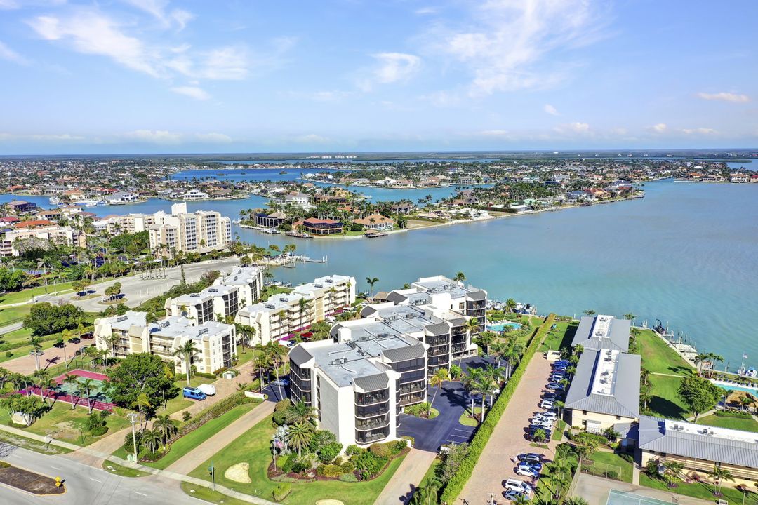 Fantastic opportunity to own a desirable and rarely available Penthouse in paradise where casual elegance, comfort and tropical flavor await you. Enjoy fabulous views of the gulf and the famous Ten Thousand Islands from this spacious residence, offering tray ceilings, large bedrooms, custom made closets and electrical hurricane shutters for extra peace of mind. The functional and inviting kitchen features custom-made cabinets, stainless steel appliances and granite countertops, making it a perfect setting to entertain, cook your favorite meal, dine or just enjoy that happy hour drink. Three separate balconies call you to sit down, relax and be mesmerized by the beautiful scenery. Camelot is a low-density building with boat docks available for lease right at Caxambas Pass. It is nestled at the south-end of the island close to shops, restaurants and the beach. A real gem to complement your Marco Island lifestyle.