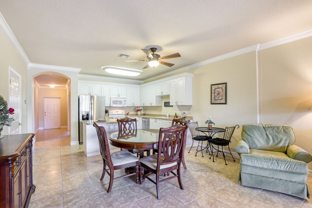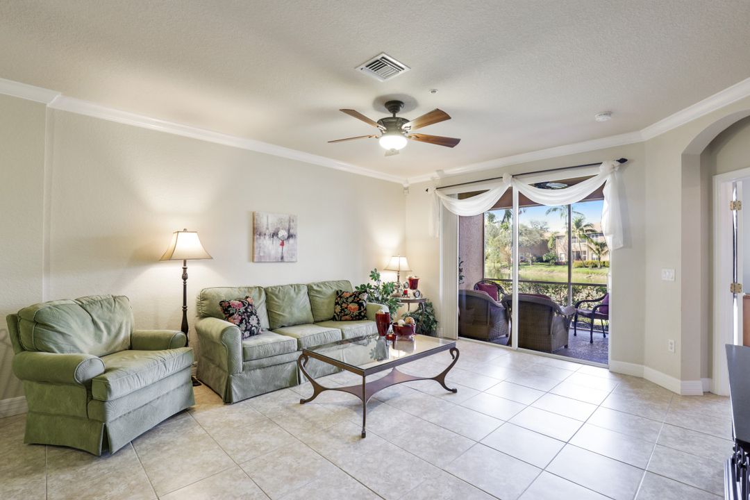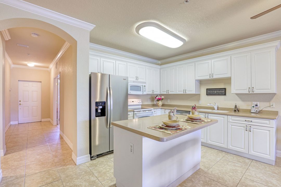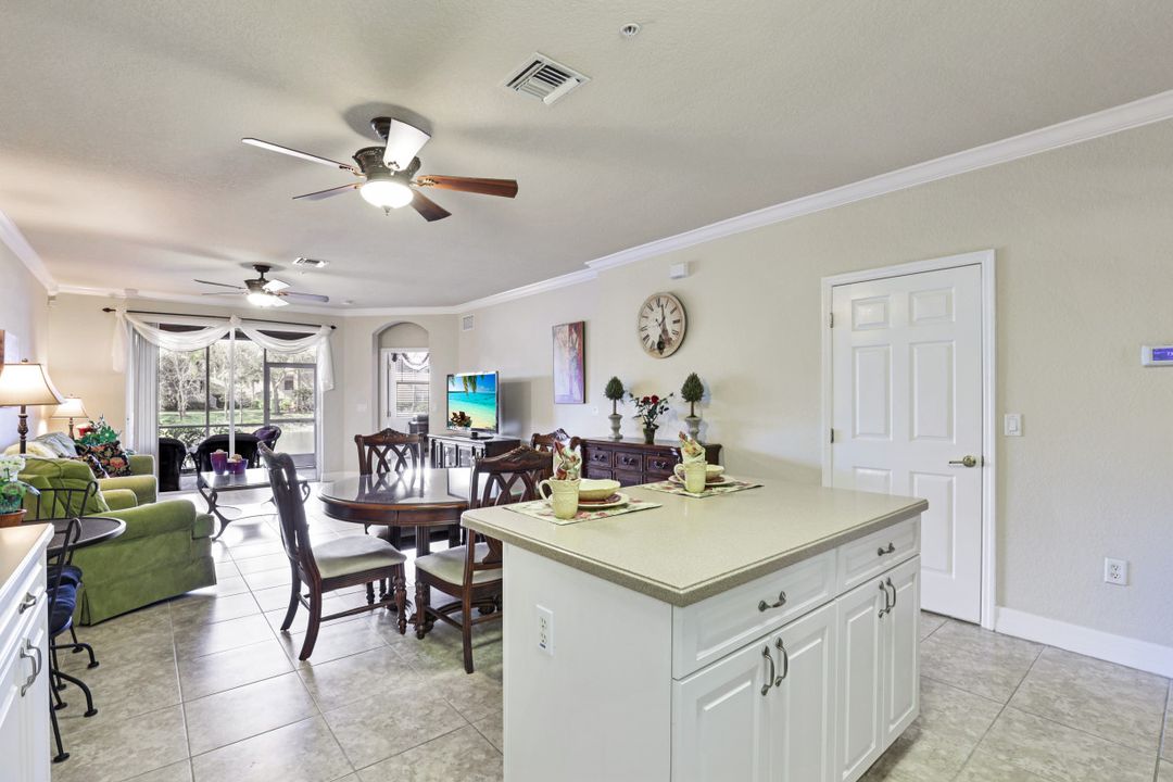 Pristine and Move-in Ready that lives like a 3B home! This FIRST-FLOOR condo in the much-desired community of Marbella at Spanish Wells, with a lush landscape featuring tropical palms, oak trees, and water features, is a short THREE-MILE drive to spectacular and sandy Barefoot and Bonita BEACH. This 2B+Den condo lives like a three-bedroom home, with the den set up to function like a third bedroom. The open kitchen has a new Whirlpool refrigerator and dishwasher. The long entrance opens to the kitchen and living room leading to the private lanai overlooking the tranquil lake where local birds and small wildlife enjoy the water and green landscape. The primary bedroom suite offers a dual sink vanity, a soaking tub, and a separate walk-in shower. Located in a gated community, amenities include two community pools plus an option to join Spanish Wells Golf & Country Club, which features 27 holes of championship golf in three different 18-hole combinations, an onsite restaurant & Pub, Bocce, 5 Tennis Courts, and more! There are various and affordable membership packages to choose from.