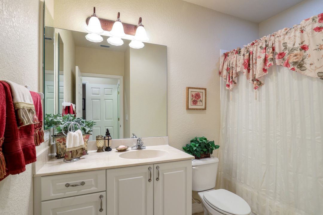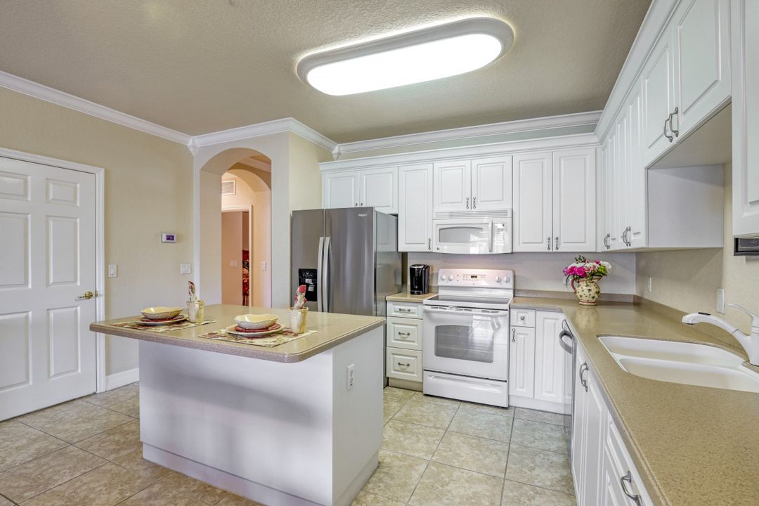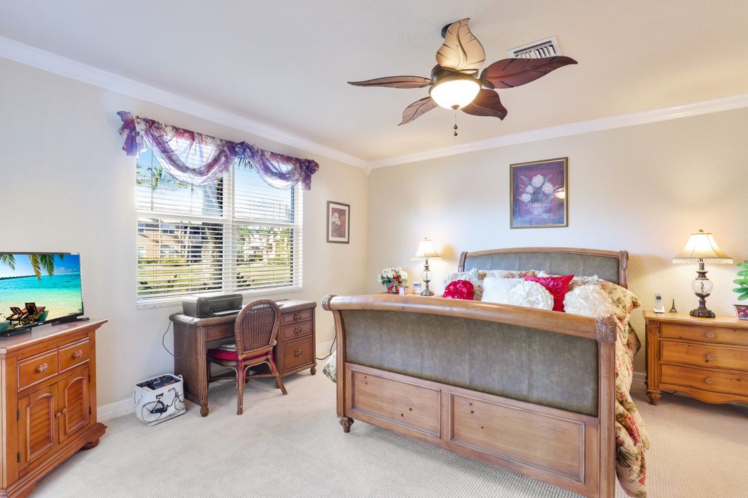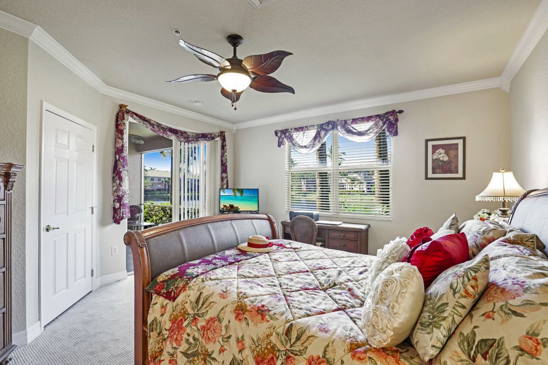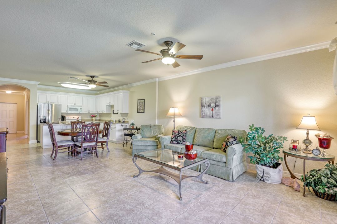 Pristine and Move-in Ready that lives like a 3B home! This FIRST-FLOOR condo in the much-desired community of Marbella at Spanish Wells, with a lush landscape featuring tropical palms, oak trees, and water features, is a short THREE-MILE drive to spectacular and sandy Barefoot and Bonita BEACH. This 2B+Den condo lives like a three-bedroom home, with the den set up to function like a third bedroom. The open kitchen has a new Whirlpool refrigerator and dishwasher. The long entrance opens to the kitchen and living room leading to the private lanai overlooking the tranquil lake where local birds and small wildlife enjoy the water and green landscape. The primary bedroom suite offers a dual sink vanity, a soaking tub, and a separate walk-in shower. Located in a gated community, amenities include two community pools plus an option to join Spanish Wells Golf & Country Club, which features 27 holes of championship golf in three different 18-hole combinations, an onsite restaurant & Pub, Bocce, 5 Tennis Courts, and more! There are various and affordable membership packages to choose from.