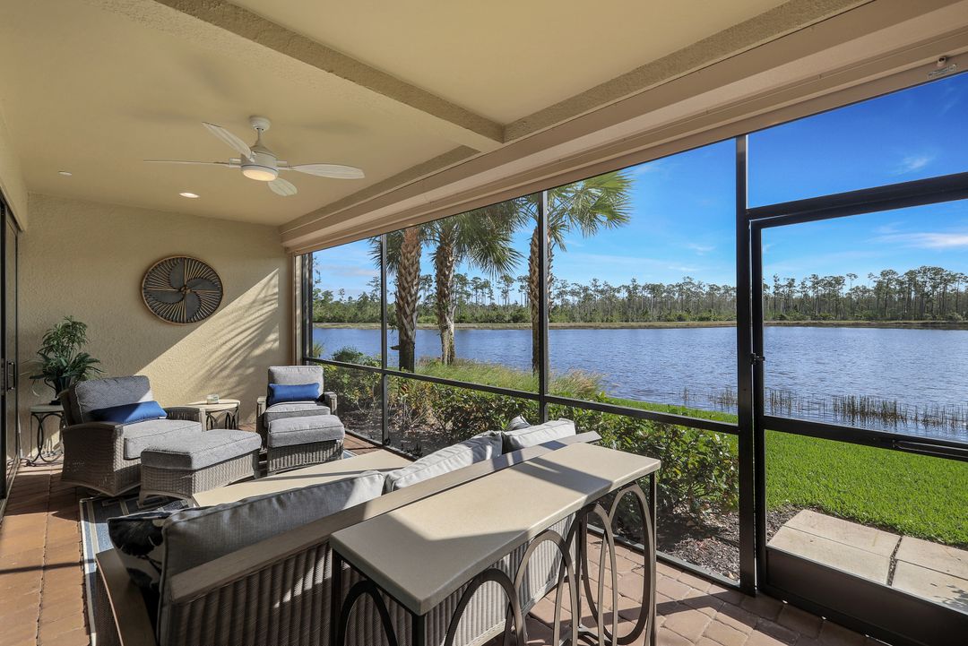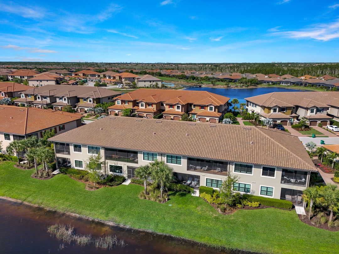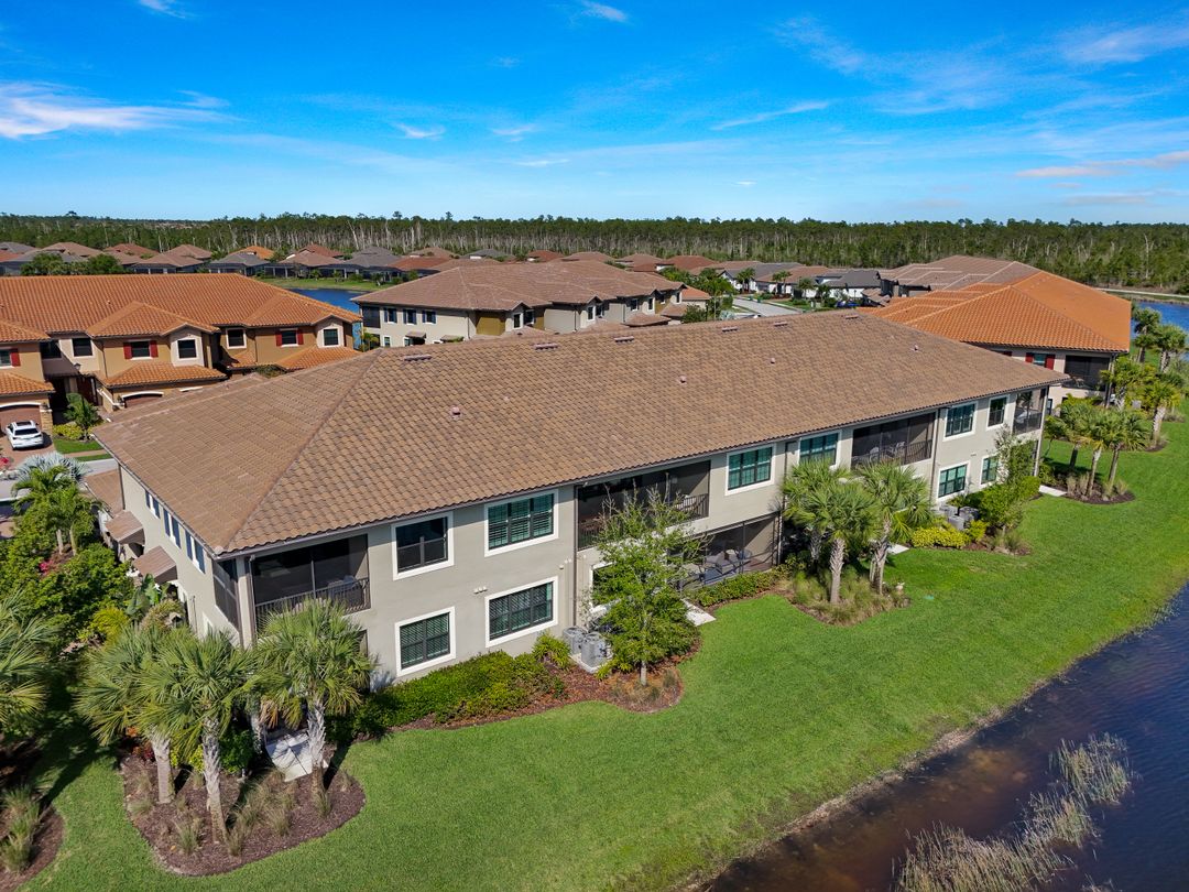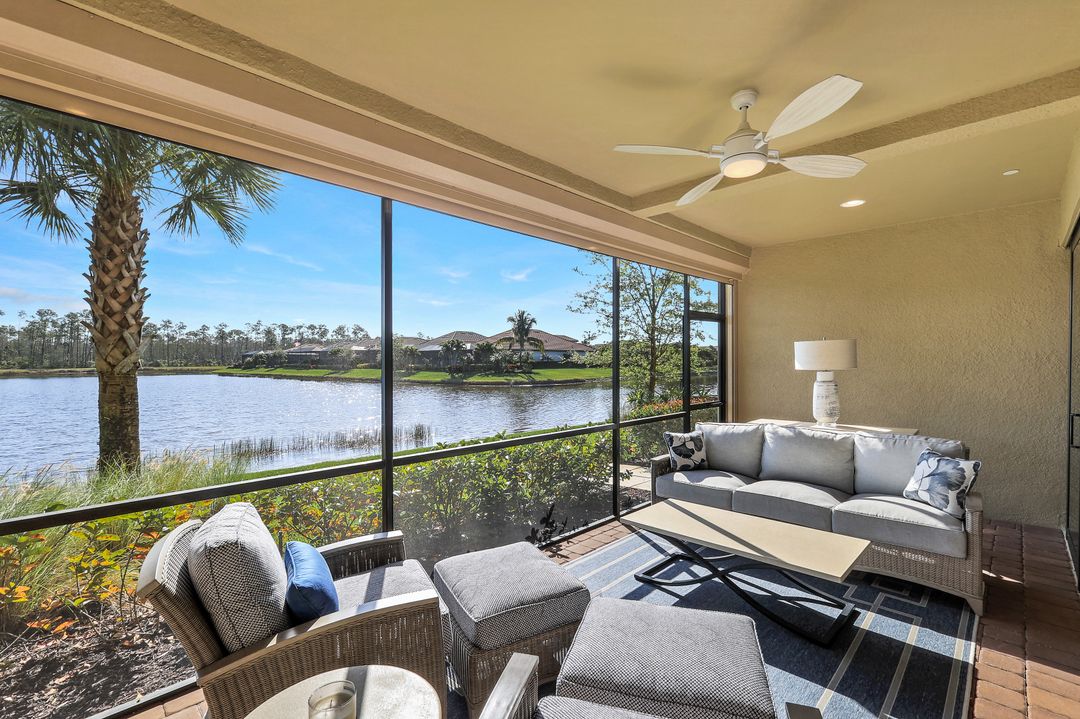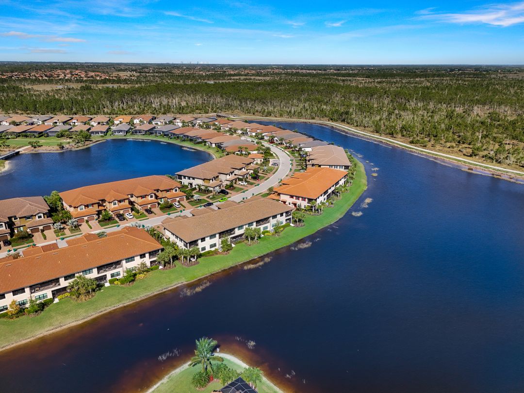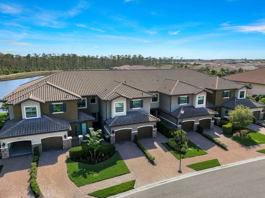 Stunning 2 Bedroom/2 Bath first floor Coach Home in Montelanico a subdivision in the highly desirable Esplanade Golf and Country Club of Naples. Professionally curated, the exquisite design pallet brings inviting elegance to enhance the amazing East facing lake and wildlife preserve views. This home is feature rich with coffered ceilings, crown molding, impact doors/windows, electric storm shutter in the lanai, built-in cabinets in the Great Room with ambient and/or heated fireplace, an open concept kitchen with large pantry, stainless steel appliances, granite counter tops and room for dining. A few additional highlights include the large bedrooms, spacious primary bathroom with step-in shower and walk-in closet. Enjoy Montelanico satellite pools or your full social membership that includes use of the resort pool, gym, fitness room, spa services, tennis, pickleball, walking trails, casual and fine dining at the state-of-the-art culinary center and more!