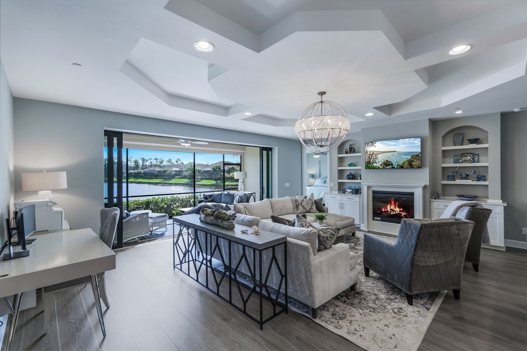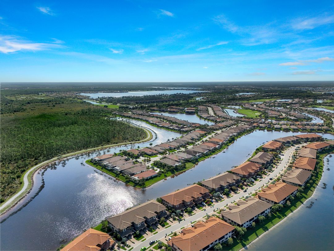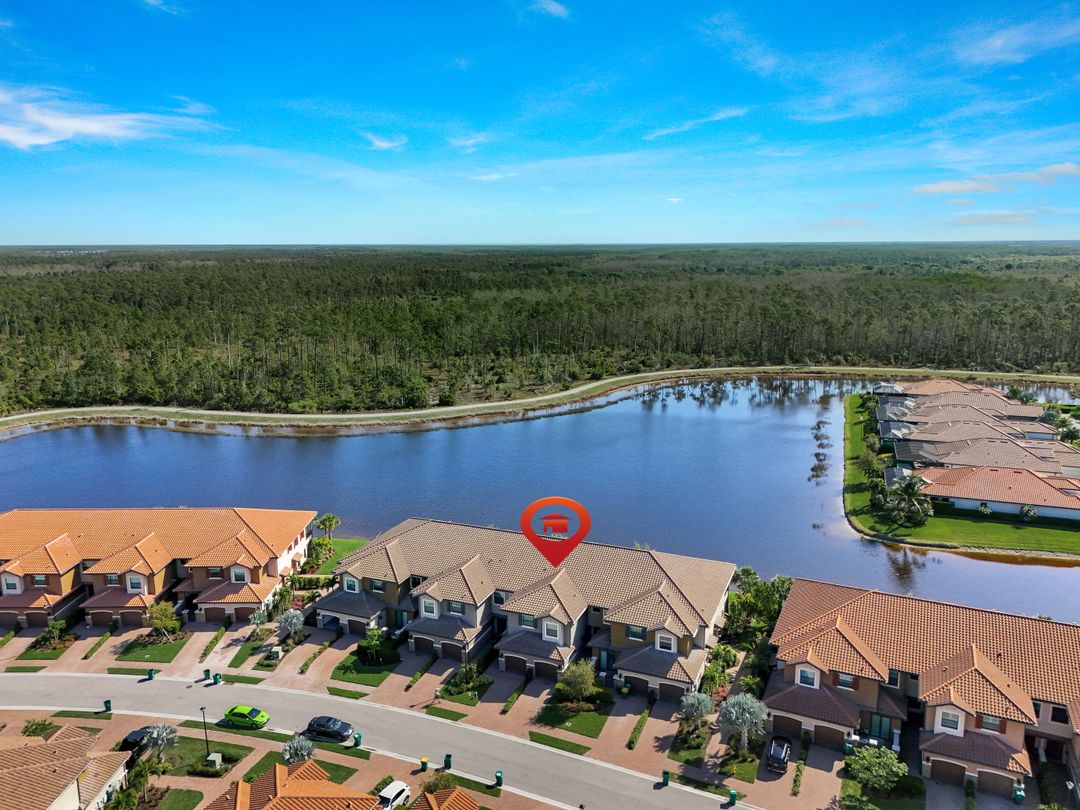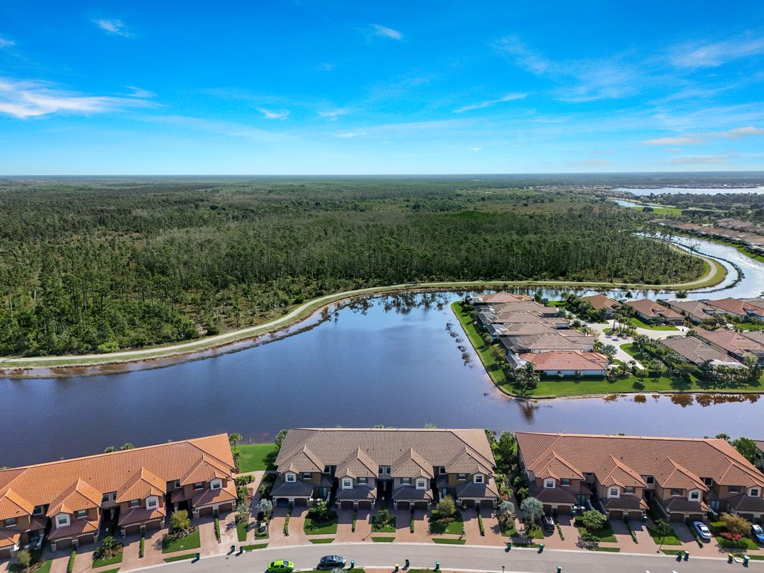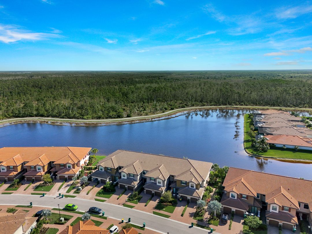 Stunning 2 Bedroom/2 Bath first floor Coach Home in Montelanico a subdivision in the highly desirable Esplanade Golf and Country Club of Naples. Professionally curated, the exquisite design pallet brings inviting elegance to enhance the amazing East facing lake and wildlife preserve views. This home is feature rich with coffered ceilings, crown molding, impact doors/windows, electric storm shutter in the lanai, built-in cabinets in the Great Room with ambient and/or heated fireplace, an open concept kitchen with large pantry, stainless steel appliances, granite counter tops and room for dining. A few additional highlights include the large bedrooms, spacious primary bathroom with step-in shower and walk-in closet. Enjoy Montelanico satellite pools or your full social membership that includes use of the resort pool, gym, fitness room, spa services, tennis, pickleball, walking trails, casual and fine dining at the state-of-the-art culinary center and more!