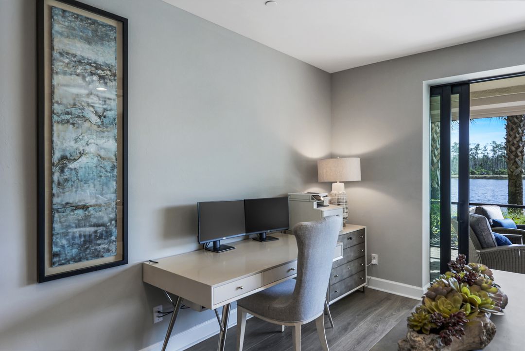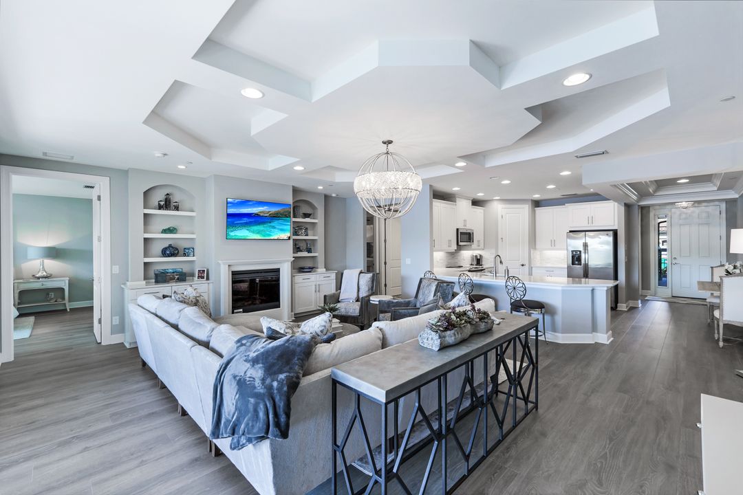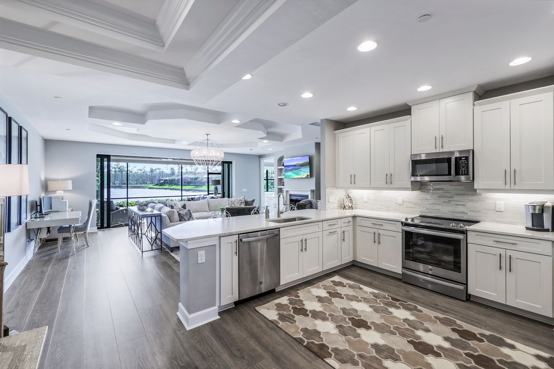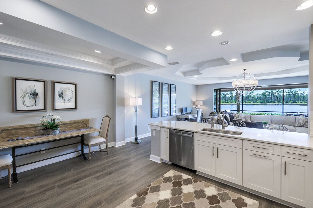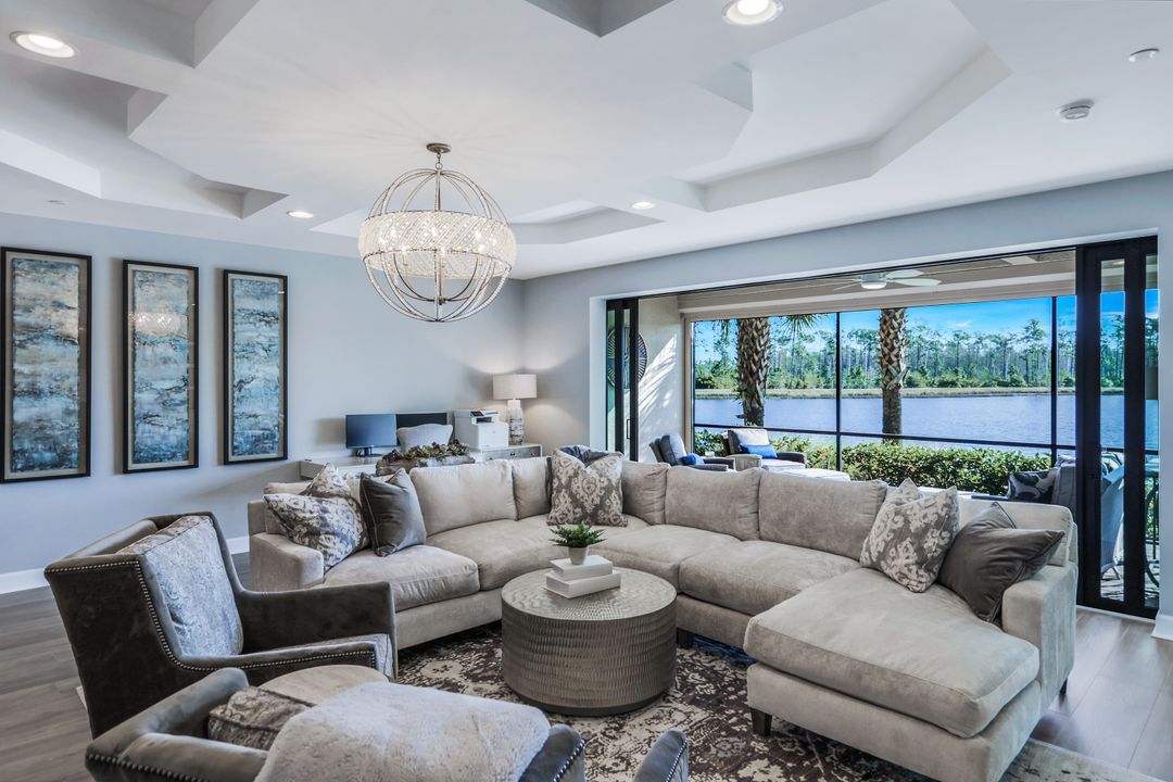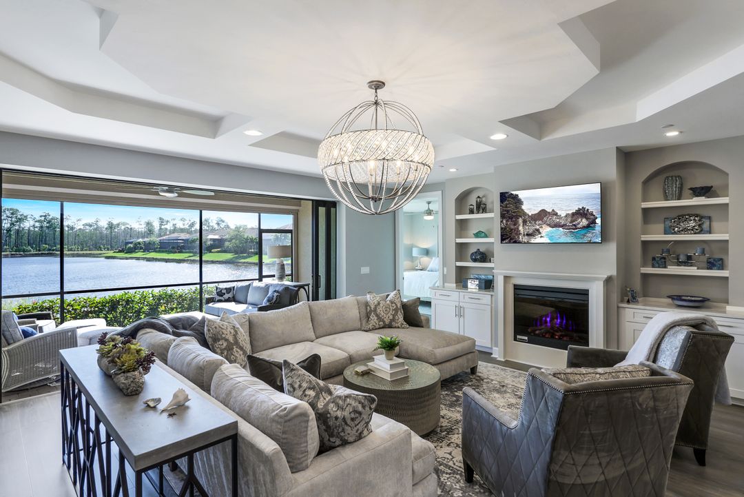 Stunning 2 Bedroom/2 Bath first floor Coach Home in Montelanico a subdivision in the highly desirable Esplanade Golf and Country Club of Naples. Professionally curated, the exquisite design pallet brings inviting elegance to enhance the amazing East facing lake and wildlife preserve views. This home is feature rich with coffered ceilings, crown molding, impact doors/windows, electric storm shutter in the lanai, built-in cabinets in the Great Room with ambient and/or heated fireplace, an open concept kitchen with large pantry, stainless steel appliances, granite counter tops and room for dining. A few additional highlights include the large bedrooms, spacious primary bathroom with step-in shower and walk-in closet. Enjoy Montelanico satellite pools or your full social membership that includes use of the resort pool, gym, fitness room, spa services, tennis, pickleball, walking trails, casual and fine dining at the state-of-the-art culinary center and more!
