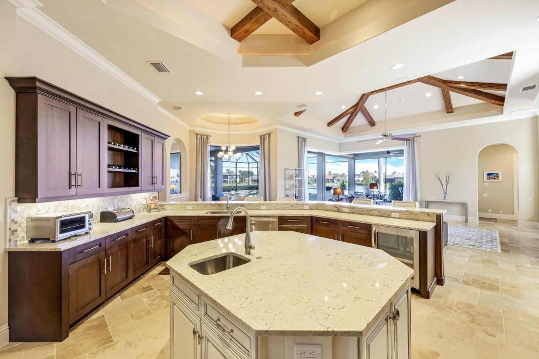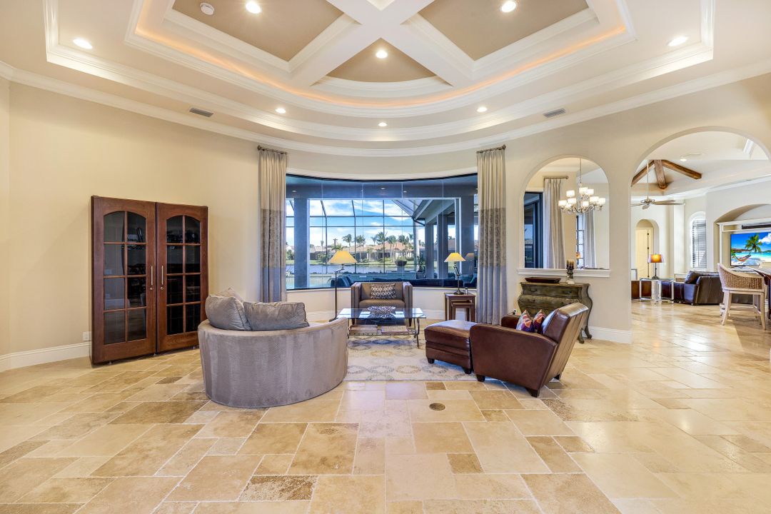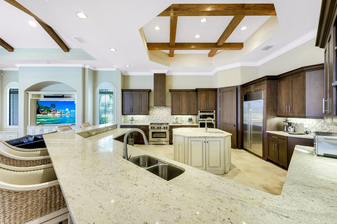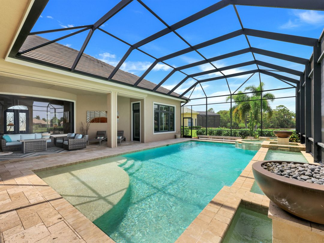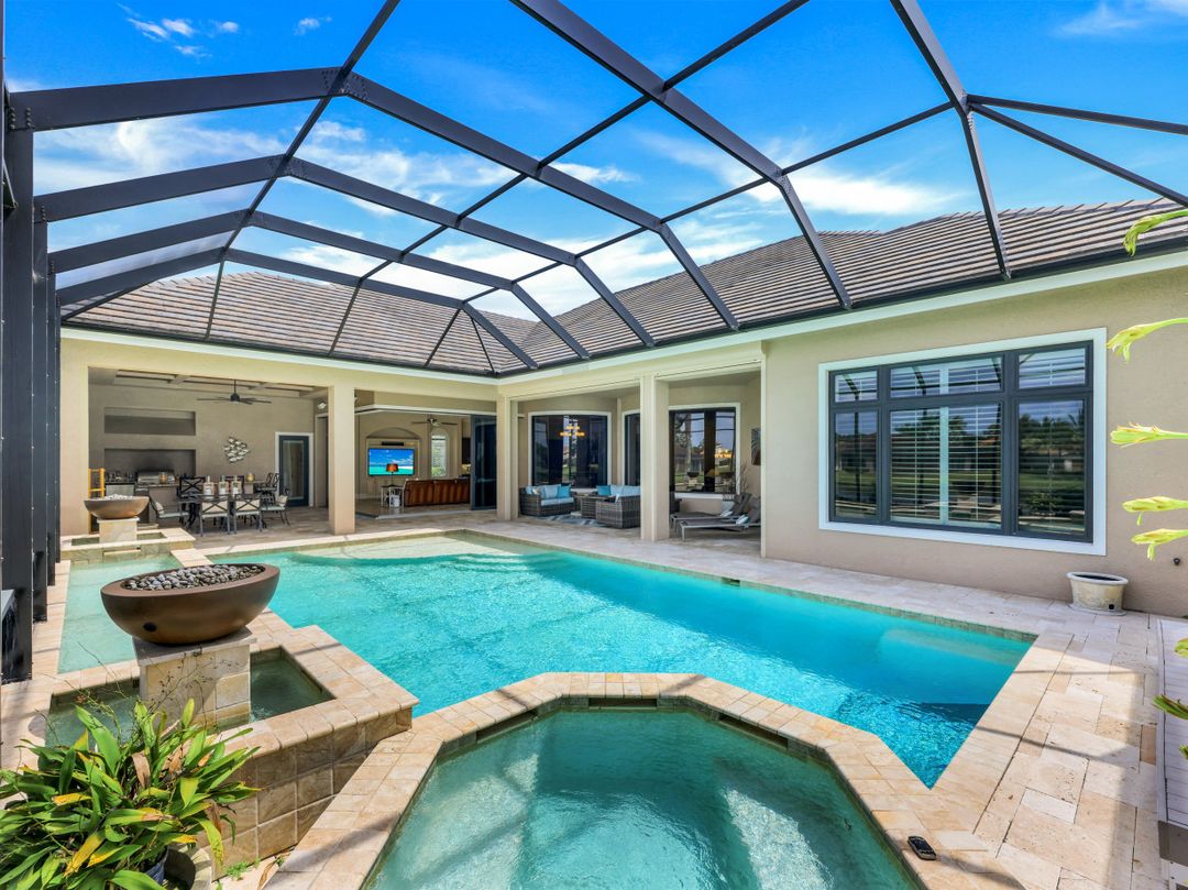 Welcome to this one of a kind custom Estate Home built by William Stancel, located in the Via Lago neighborhood of Renaissance. This *turnkey furnished* estate boasts a bright, open interior offering 3 oversized bedrooms + den and 3 bathrooms. Enjoy 10 foot zero-corner sliding pocket doors, opening the kitchen and living area up to the expansive outdoor space. The gourmet kitchen features Sub-Zero, Kitchen Aid and Bosch appliances, custom cabinetry, custom granite tops and butlers pantry. This custom home sits on a private, oversized lot in the cul-de-sac and offers unparalleled views of the lake and lighted water feature. The outdoor living space offers a wonderful summer kitchen and undercover space to enjoy outdoor dining, covered seating and a beautiful oversized pool & spa. Additional features include custom wood and travertine flooring, coffered and beam ceilings, impact windows and doors, electric Kevlar shutters and a whole home generator. The Renaissance lifestyle includes an Arthur Hills Championship Golf Course, resort style pool and pool pavilion, children’s play area, full service spa & fitness center, 6 red clay tennis courts, 2 pickle ball courts and 2 bocce courts.