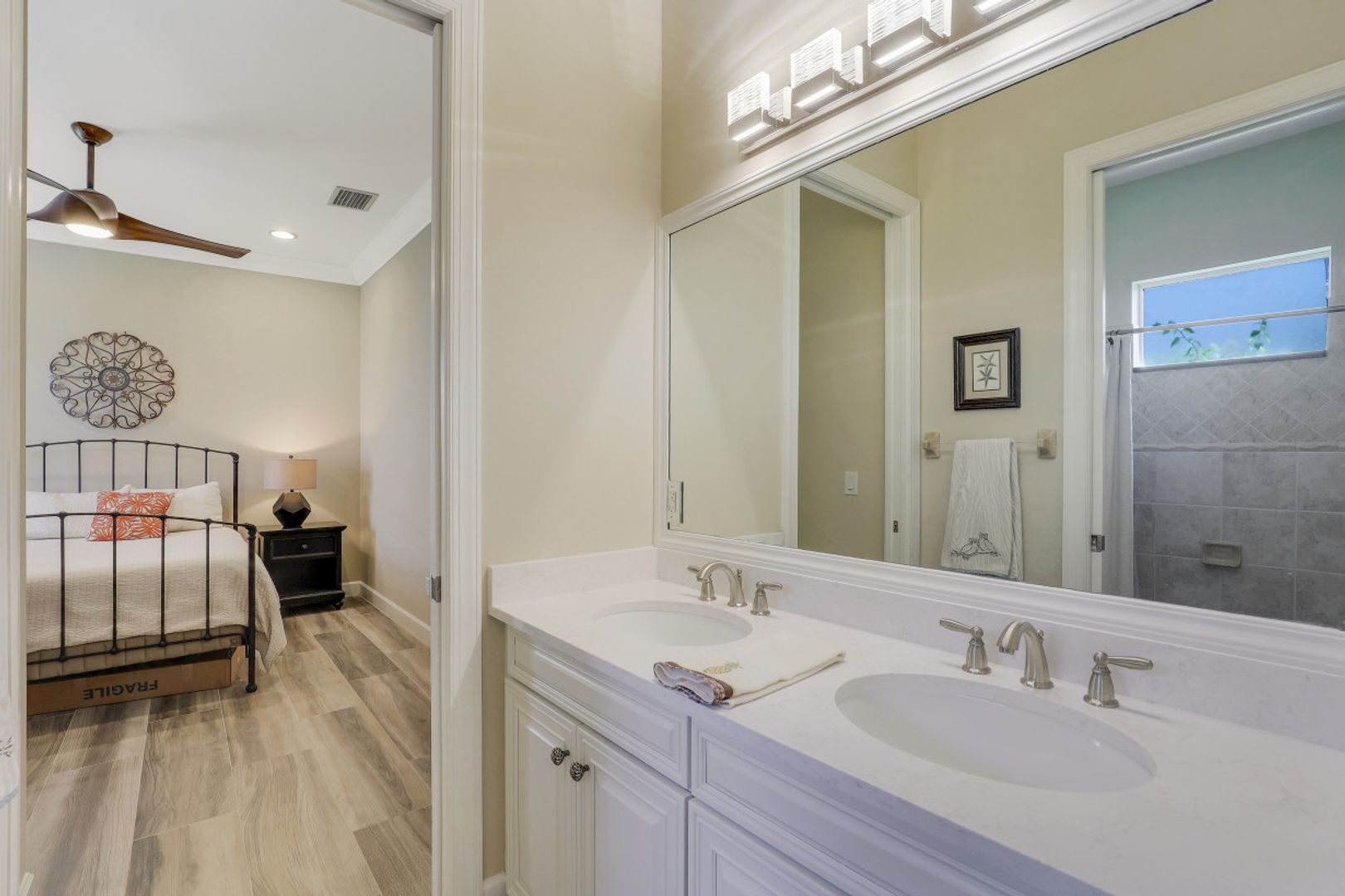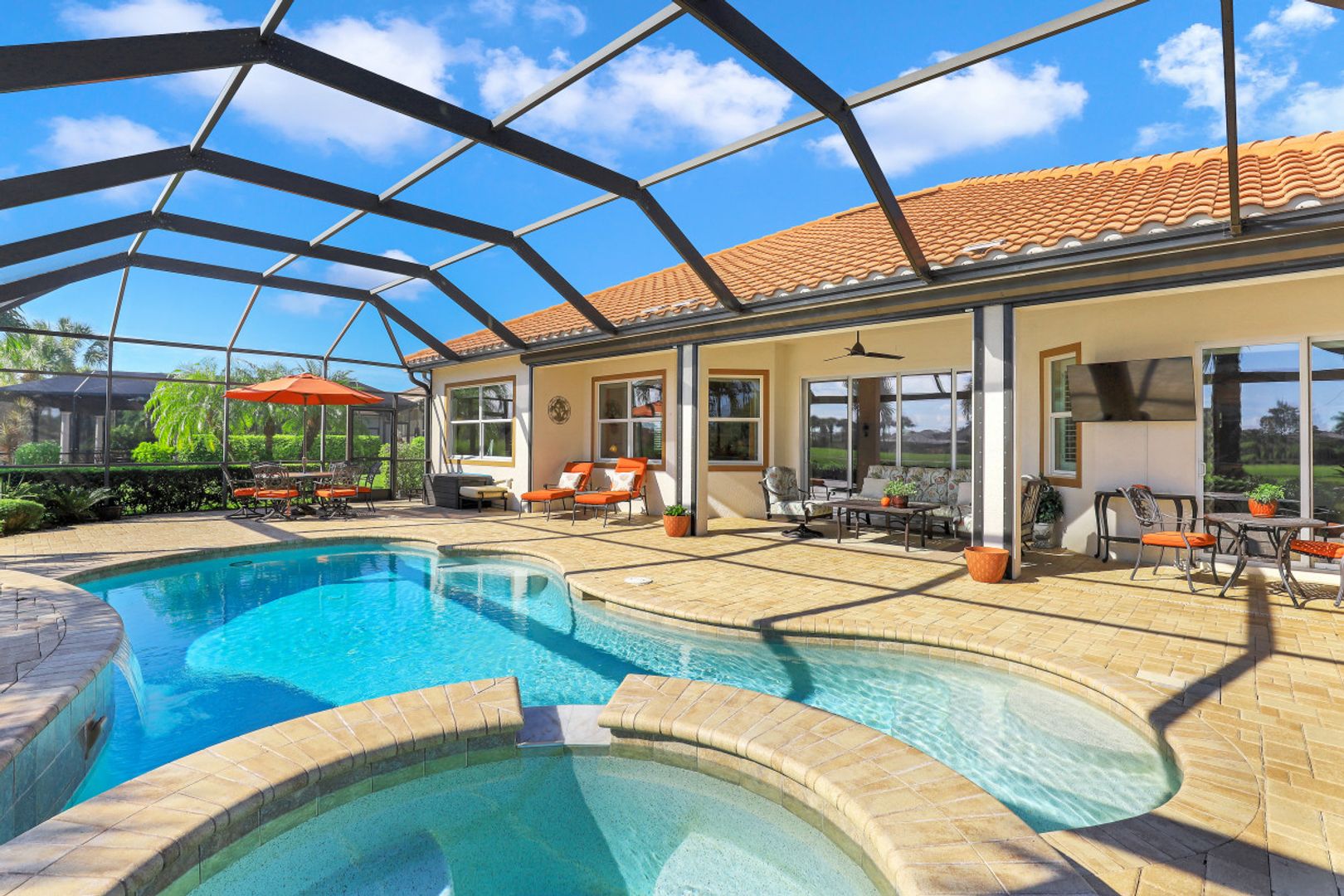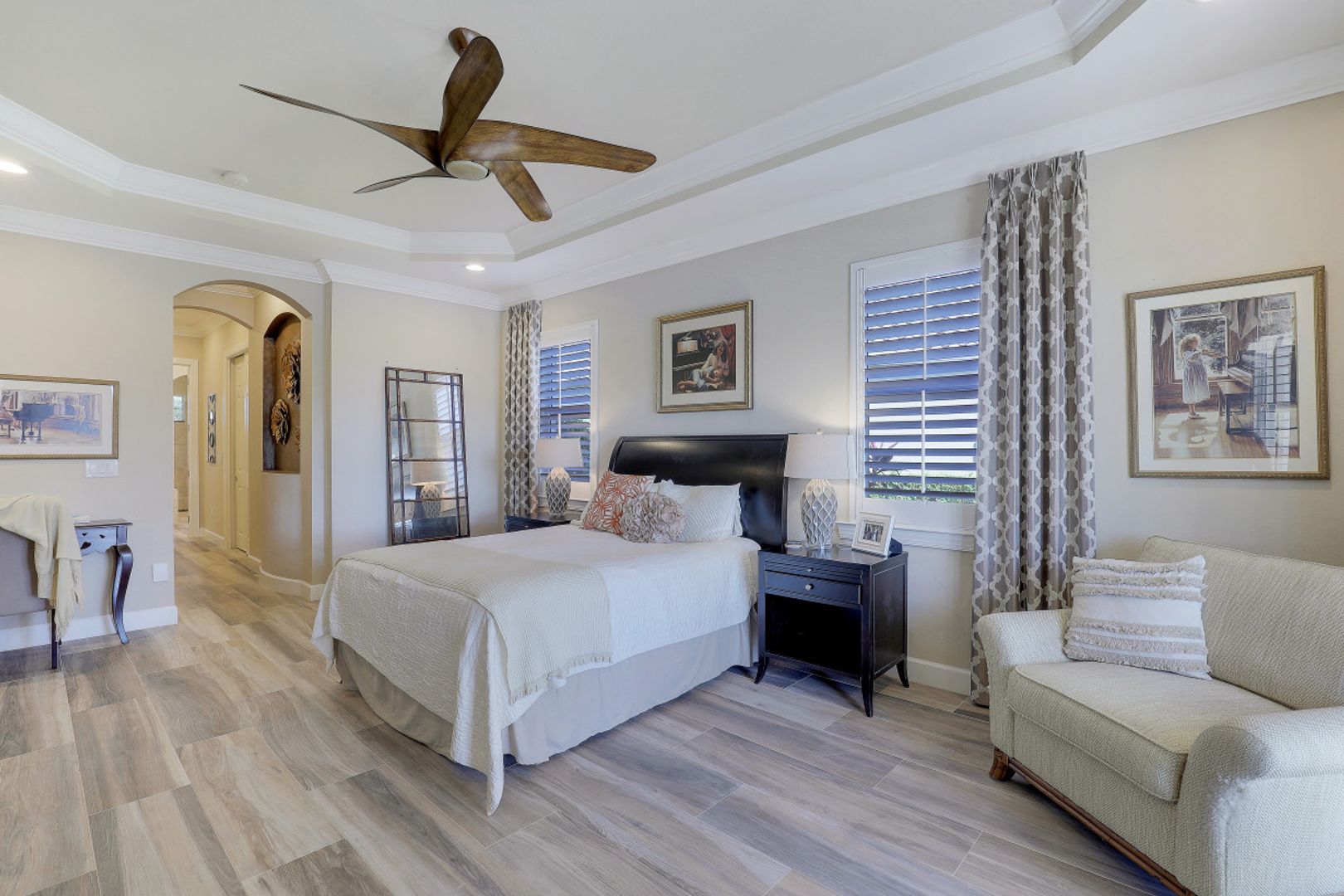 START LIVING A VACATION LIFESTYLE IN THE QUARRY! This immaculate "Reddington" is situated on a prime pie shaped lot overlooking the lake and 14th hole. Great Room style floorplan with 12' ceilings, multiple tray ceilings, and oversized Master Suite with sliders to the lanai & "car wash" style shower. Many updates and luxury features as; solid wood cabinetry; new Quartz countertops; wood look tile floors in the bedrooms and baths; custom window treatments; electric roll down shutters; IMPACT WINDOWS & DOORS; electric AND solar heated pool/spa; and more! The Quarry is a Lakefront RESORT STYLE LIVING COMMUNITY offering something for everyone. Residents enjoy resort pool, Tiki Bar with Food & Beverage service (Lunch & Dinner 7 days a week), Restaurant, Full Time Activities Director, Fitness Center, Movement Studio, Tennis Courts, Bocce Courts, and Pickleball courts as part of their Master HOA Dues (No memberships required). The Golf Lodge & Golf Club offer an 18 hole PGA Level Hurdzan Frye course and its own private clubhouse & restaurant (Golf Memberships available but golf memberships are not mandatory). Go boating/skiing/sailing/jet skiing on 500 acres of fresh water lakes!