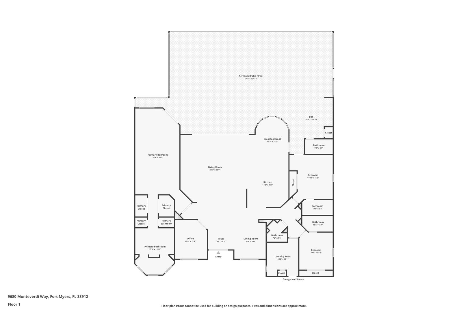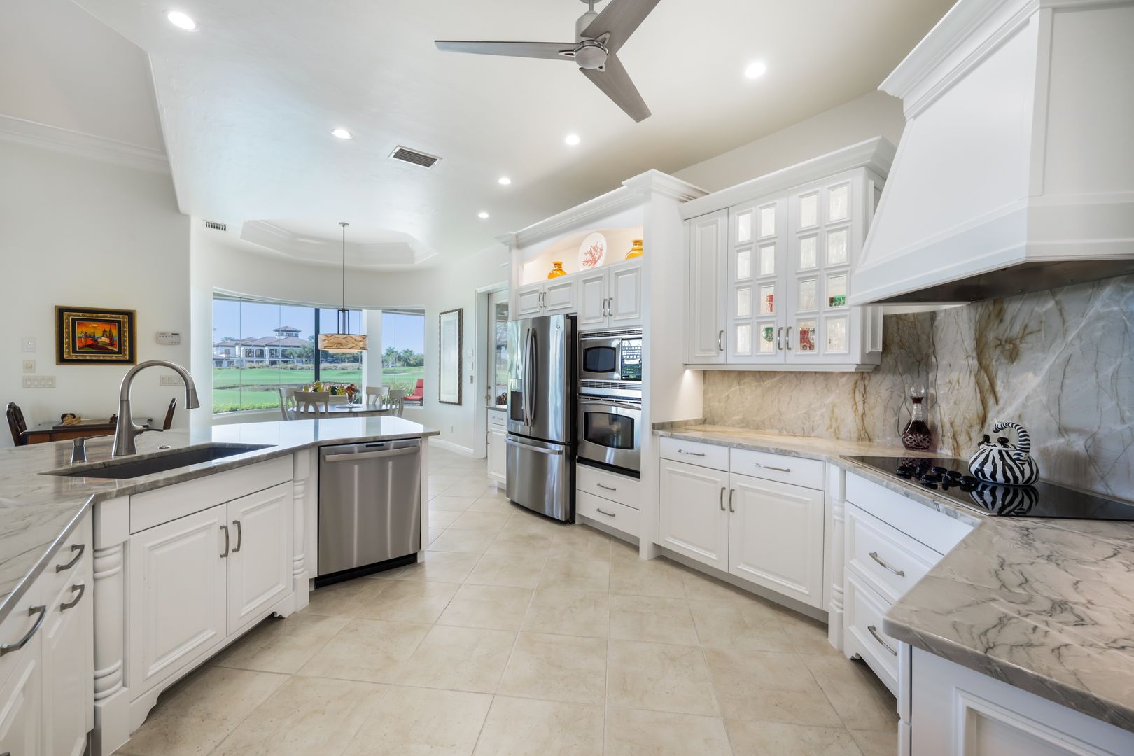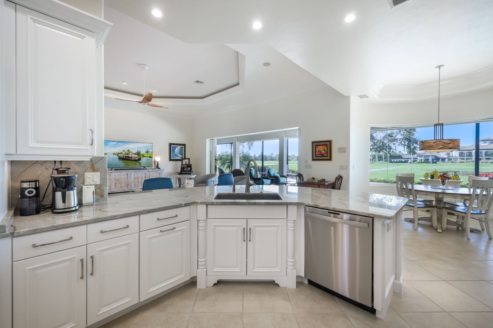 Welcome to this exquisite estate located in the Monteverdi neighborhood of Renaissance! A true masterpiece — this entirely updated home sits on one the most premier homesites in the community offering stunning views of the clubhouse, lake, golf course, and the coveted Southwest Florida sunsets. This privately positioned estate boasts beautiful updates inside and out featuring a newly painted exterior, meticulous landscape and brand new flat tile roof. As you enter the property you are welcomed by expansive views showcased by the grand glass doors and windows lining the back of the home. The kitchen is a chef’s dream featuring Brazilian Quartzite countertops and stainless-steel appliances. The open floor plan and newly re-imagined kitchen pour into the fully renovated outdoor space featuring a spectacular pool, spa, and luxury outdoor kitchen. Immerse yourself in the Primary Suite, a relaxing oasis with serene views! The primary en-suite bathroom features a backlit double-polished Cristallo Quartzite wall feature, oversized soaking tub, and luxurious walkthrough shower donning porcelain Italian tile. Experience this incredible home in the premier luxury golf community of Fort Myers!