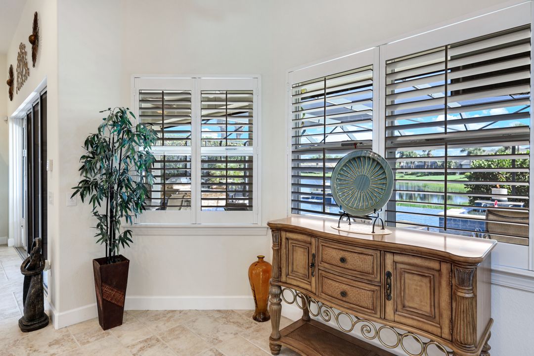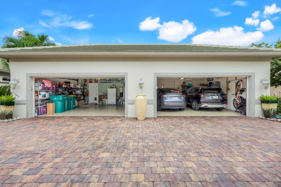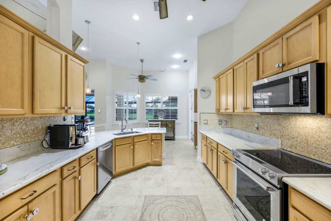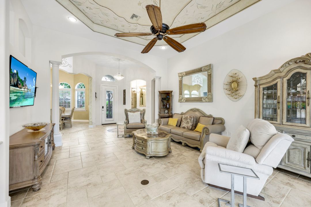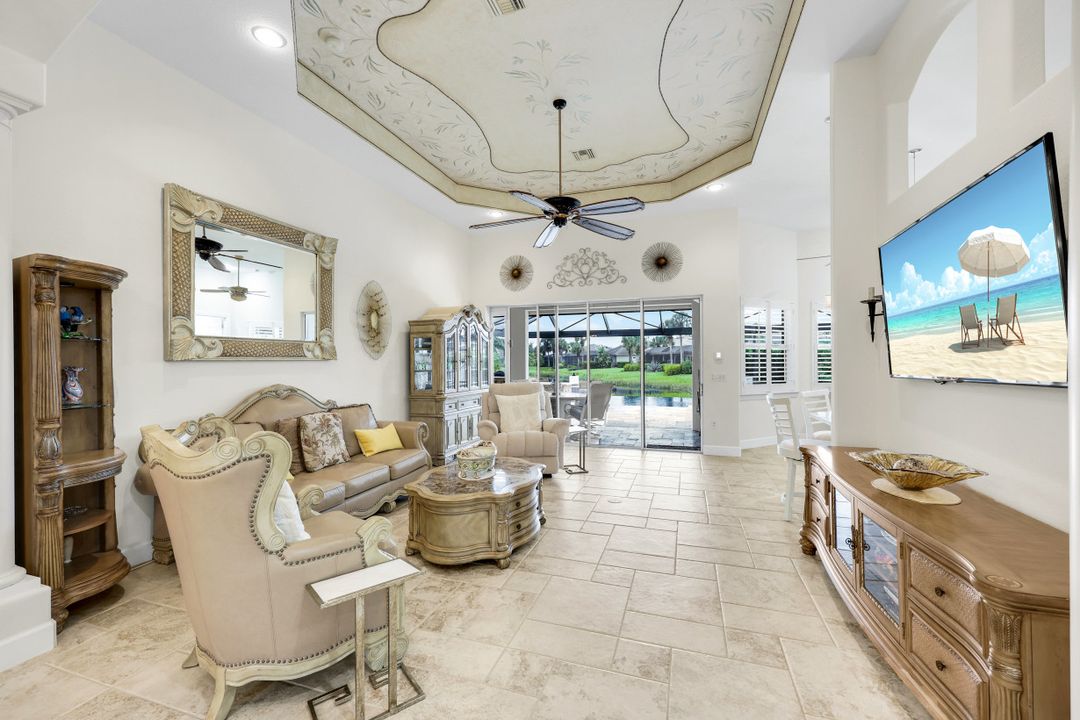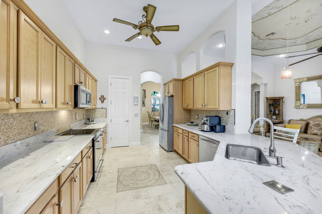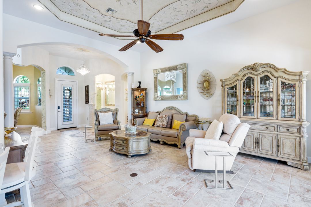 LIVE A VACATION LIFESTYLE IN A COUNTRY CLUB SETTING! This customized, spacious home features 3 BEDROOMS PLUS A DEN, 3 FULL BATHS, A RARE 4 CAR AIR CONDITIONED GARAGE and is situated on an oversized pie-shaped lot. This exceptional home is perfect for entertaining friends and family. Step outside to your private resort-style lanai, where a saltwater infinity pool and spa await - enhanced with breathtaking fire and water features, a picture window screen for unobstructed water views, and elegant marble travertine tile. The custom outdoor kitchen is fully equipped with an oversized stove, grill, sink, dishwasher, refrigerator, blender and plenty of built in storage, while the outdoor shower, nebula lighting, and lush landscaping add the perfect finishing touches to your outdoor oasis. Inside, enjoy a bright layout with porcelain tile and hardwood flooring throughout (no carpet), quartz countertops, a farm-style sink and custom tray ceilings. A long list of special features and upgrades include an air conditioned 4 car garage ideal for car collectors, boats, or a home gym, newer tile roof (2019), newer water heater (2024), newer HVAC (2021), custom outdoor landscaping and lighting throughout, freshly painted inside and out, electric storm and accordian shutters throughout, 500 gallon propane tank for heating the pool and spa plus more! This home is a "must see" to appreciate the finishing touches. Discover The Quarry—an exceptional lakefront community sprawled across over 500 acres of pristine lakes. This gated, amenity-rich environment is perfect for boating, water skiing, jet skiing, kayaking, and fishing enthusiasts. Enjoy the Beach Club, which features a resort pool, lap pool, hot tub, tennis, pickleball, and bocce courts, a Tiki bar with poolside food and beverage service, a state-of-the-art wellness center, and a full-time activities director who organizes a variety of social events. For golf lovers, The Quarry Golf Lodge offers an optional membership to its PGA-level Hurdzan-Frye 18-hole golf course. Experience the resort-style living you’ve always dreamed of in this extraordinary home!