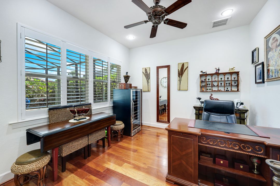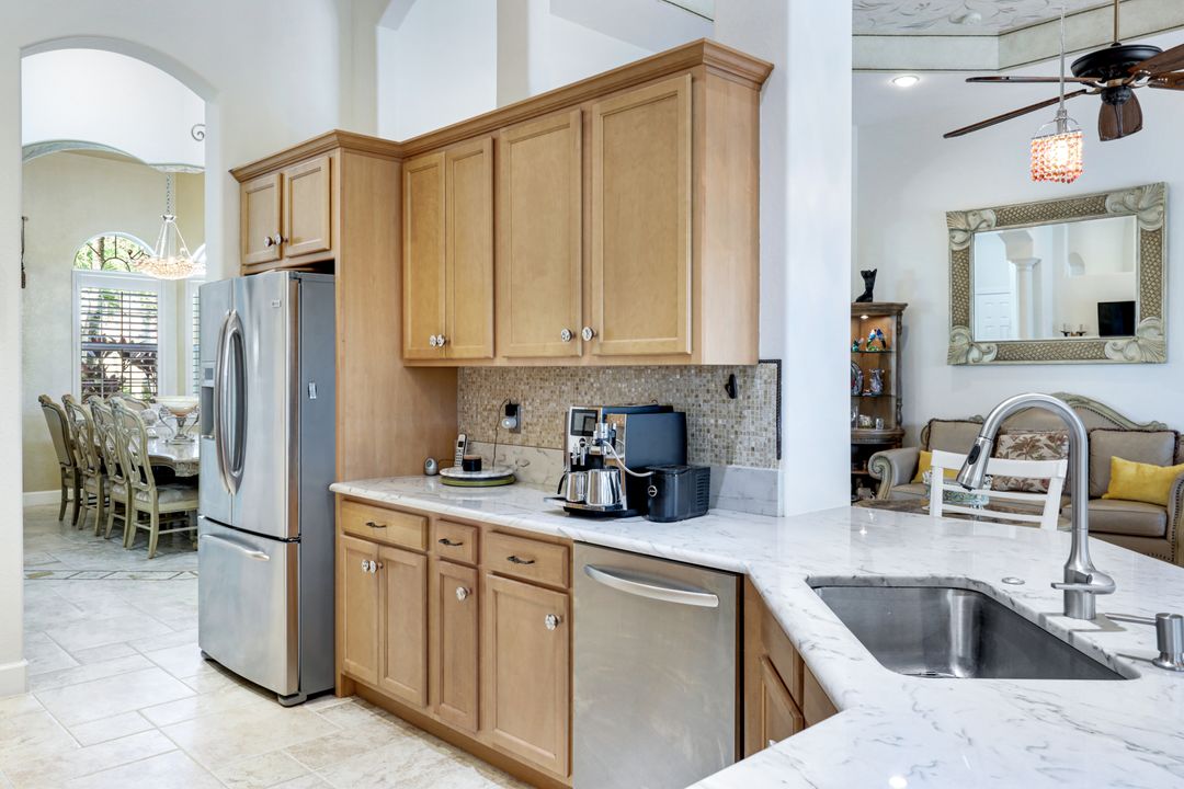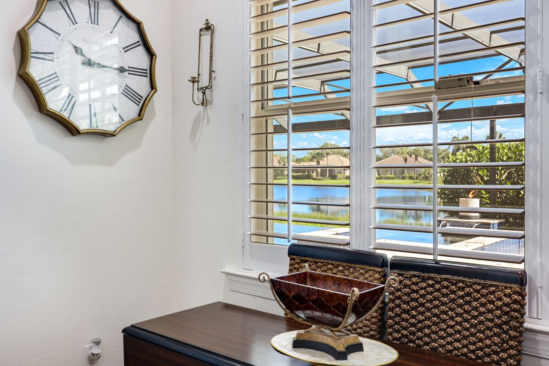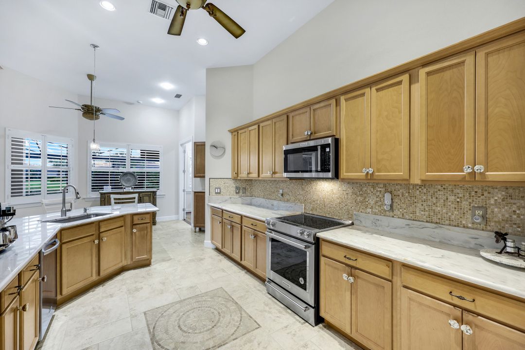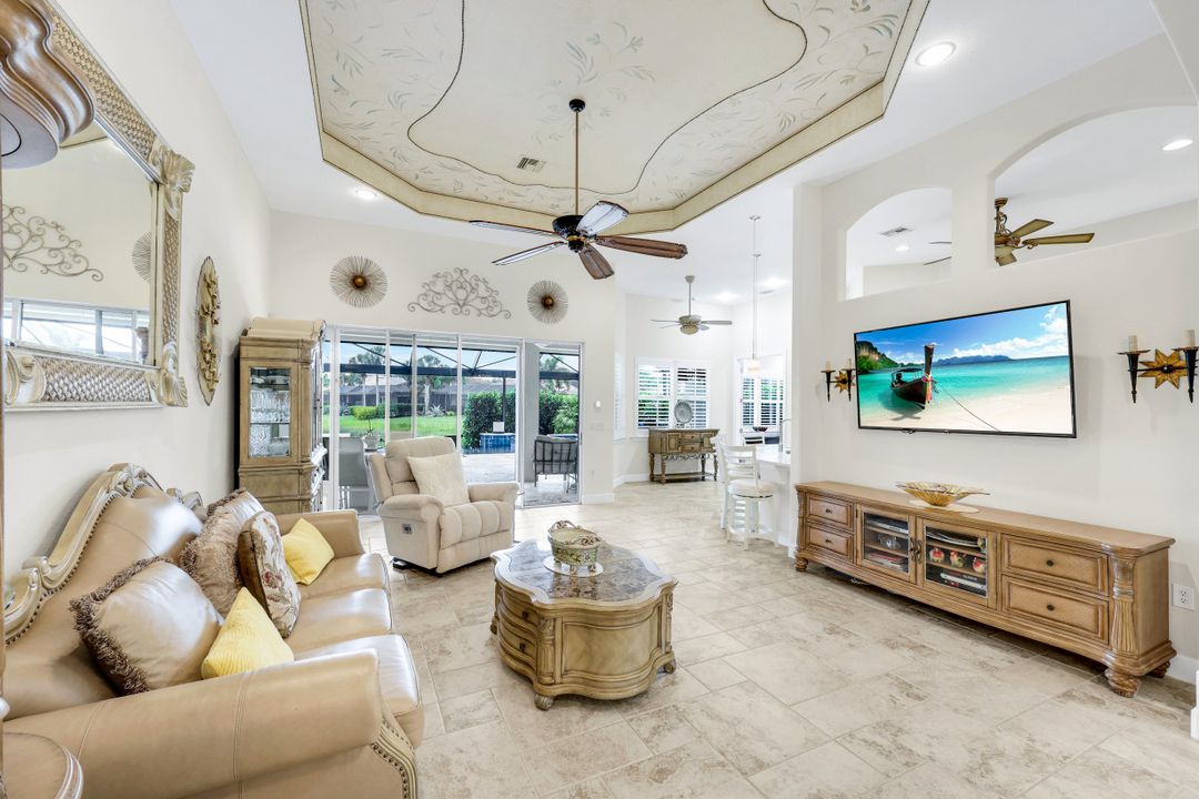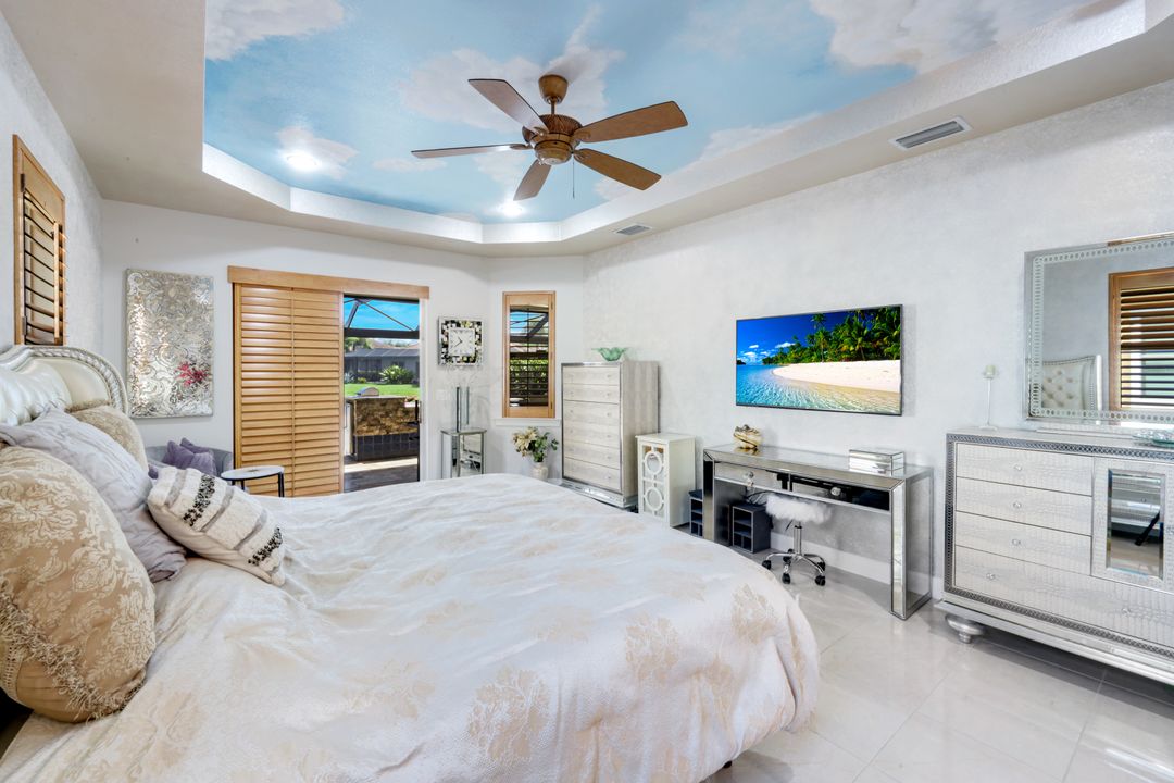 LIVE A VACATION LIFESTYLE IN A COUNTRY CLUB SETTING! This customized, spacious home features 3 BEDROOMS PLUS A DEN, 3 FULL BATHS, A RARE 4 CAR AIR CONDITIONED GARAGE and is situated on an oversized pie-shaped lot. This exceptional home is perfect for entertaining friends and family. Step outside to your private resort-style lanai, where a saltwater infinity pool and spa await - enhanced with breathtaking fire and water features, a picture window screen for unobstructed water views, and elegant marble travertine tile. The custom outdoor kitchen is fully equipped with an oversized stove, grill, sink, dishwasher, refrigerator, blender and plenty of built in storage, while the outdoor shower, nebula lighting, and lush landscaping add the perfect finishing touches to your outdoor oasis. Inside, enjoy a bright layout with porcelain tile and hardwood flooring throughout (no carpet), quartz countertops, a farm-style sink and custom tray ceilings. A long list of special features and upgrades include an air conditioned 4 car garage ideal for car collectors, boats, or a home gym, newer tile roof (2019), newer water heater (2024), newer HVAC (2021), custom outdoor landscaping and lighting throughout, freshly painted inside and out, electric storm and accordian shutters throughout, 500 gallon propane tank for heating the pool and spa plus more! This home is a "must see" to appreciate the finishing touches. Discover The Quarry—an exceptional lakefront community sprawled across over 500 acres of pristine lakes. This gated, amenity-rich environment is perfect for boating, water skiing, jet skiing, kayaking, and fishing enthusiasts. Enjoy the Beach Club, which features a resort pool, lap pool, hot tub, tennis, pickleball, and bocce courts, a Tiki bar with poolside food and beverage service, a state-of-the-art wellness center, and a full-time activities director who organizes a variety of social events. For golf lovers, The Quarry Golf Lodge offers an optional membership to its PGA-level Hurdzan-Frye 18-hole golf course. Experience the resort-style living you’ve always dreamed of in this extraordinary home!