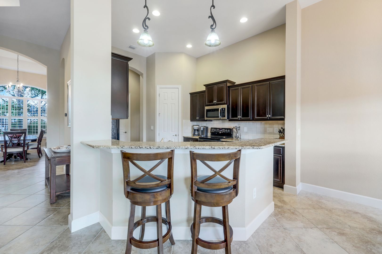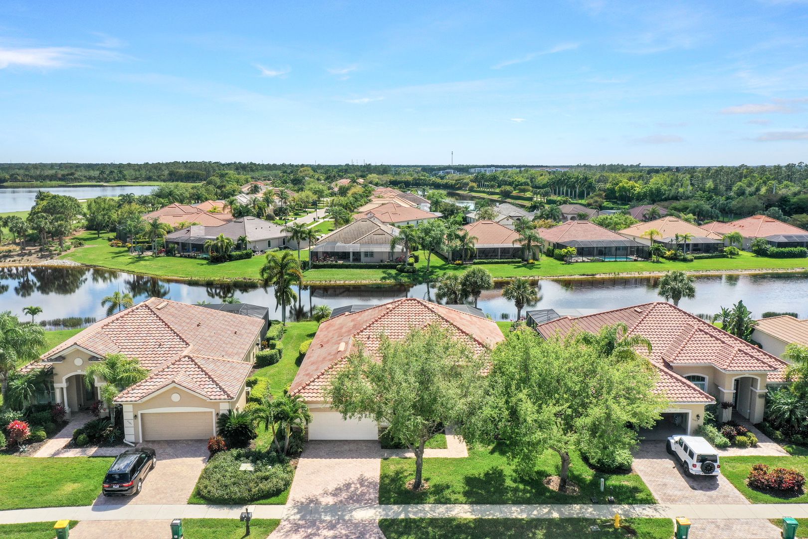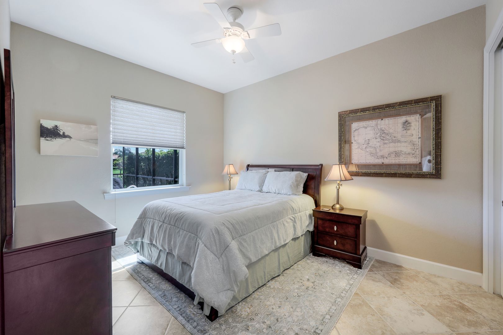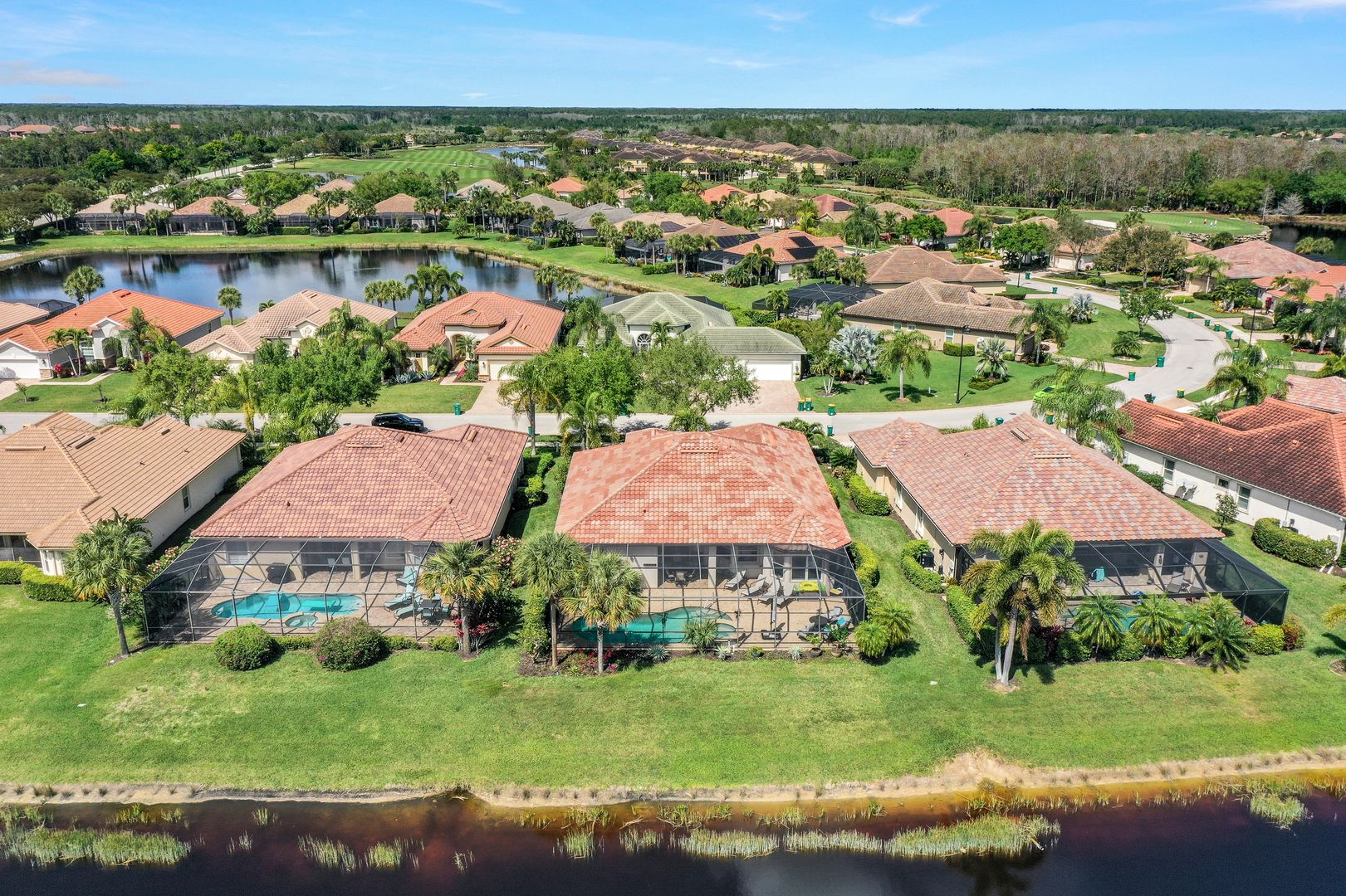 LIVE A VACATION LIFESTYLE IN AMENITY-RICH - THE QUARRY! This soaring and spacious "Windjammer" floor plan is being offered FURNISHED and features 4 bedrooms and 3 1/2 baths with desirable Southern Exposure and water and golf course views. The spacious kitchen includes granite countertops, espresso cabinets and stainless steel appliances. There is also a formal dining room for entertaining. The main bedroom includes dual sinks, a soaking tub, and a dedicated cabana pool bathroom with walk-in shower to keep the rest of your home clean and dry! The spacious lanai has a saltwater pool and hot tub with newer pool heater and pump and offers beautiful water, golf course and sunset views. Fine appointments and upgrades include plantation shutters and large tile throughout, a 4 foot garage extension, a 4 foot lanai extension plus more! The Quarry is a an amenity rich gated lakefront community offering over 500 acres of lakes for boating, water skiing, paddle boarding, jet skiing, kayaking, and fishing.The NEWLY RENOVATED Beach Club includes Tennis, Pickleball, Bocce Ball, a Tiki Bar, Restaurant, Pool-Side food/drink service, a Wellness Center, and a full-time activities director.The Quarry Golf Lodge & Golf Club offers an 18 hole PGA Level Hurdzan-Frye Golf Course. GOLF MEMBERSHIP IS OPTIONAL