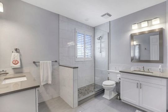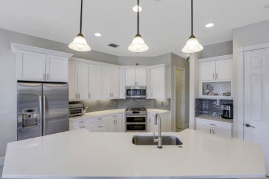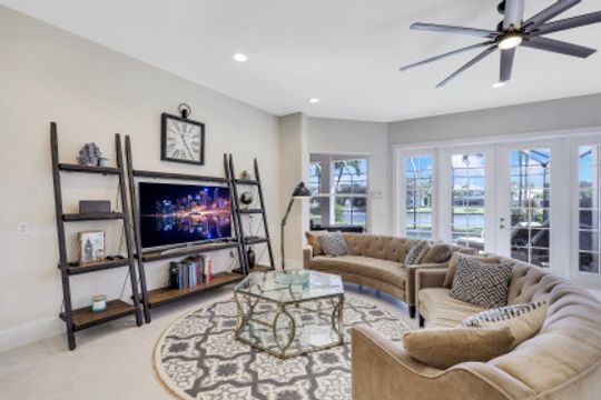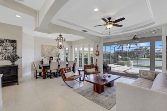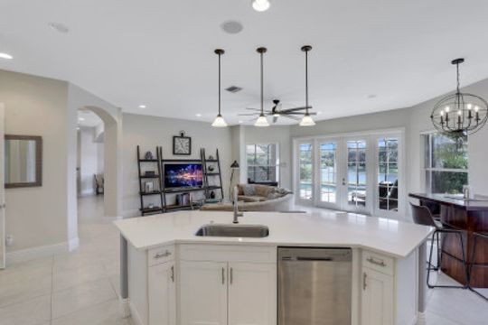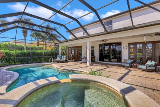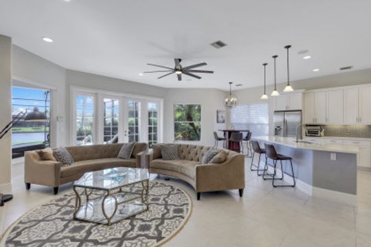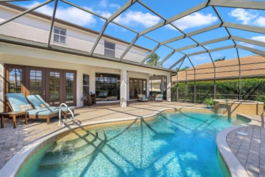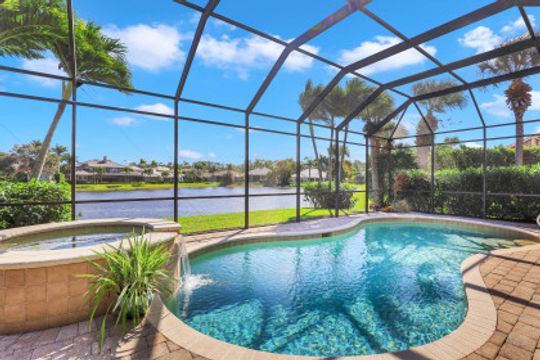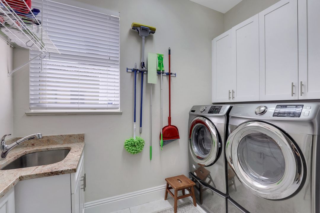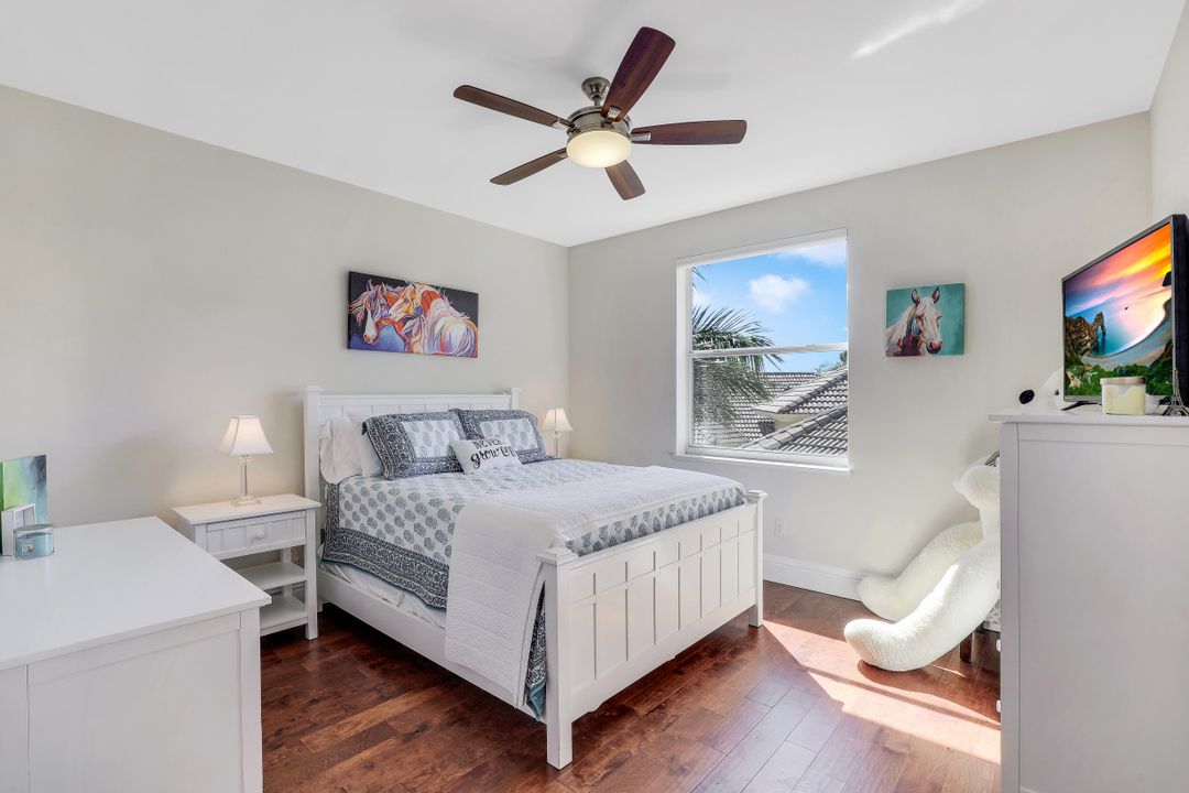 Wilshire Lakes, a quaint community located WEST of I75 featuring larger homesites, mature trees, and pristine lakes. This spacious 6 bedroom family home is situated on an oversized lot with southeast views down the lake and two fountains. The moment you walk in the door you are greeted with 20' ceilings, an impressive wood and iron staircase, and a seamless glass window overlooking the pool area and lake. The updated kitchen includes a GAS range, shaker style cabinets, and quartz countertops. The first floor master suite offers wood floors, french doors to the lanai, updated bath, and walk in closet with built in cabinets. There is also a bedroom/den and two half baths on the ground floor. Upstairs, you will find four additional bedrooms and two full baths with updated tile and cabinets. Other fine appointments include oversized tile floors, tankless gas hot water heater, buried propane tank, lush landscaping, two new HVAC units, 2 and 1 car garages, and more! Wilshire Lakes is a manned gated community with clubhouse, pool, and fitness room. Walking path into Collier County Park. A Rated Schools! Just 5 min from Mercato, 10 min to the Beach, 20 min to 5th Ave/Downtown Naples.