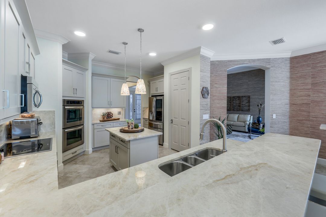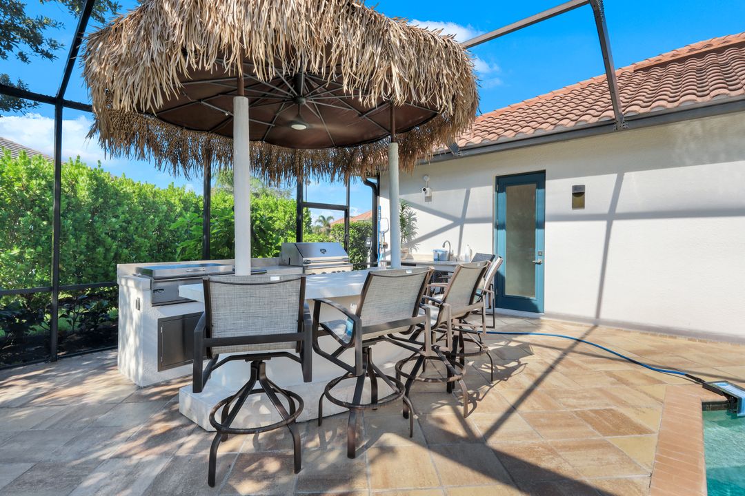 Experience Vacation Living at The Quarry! Discover this elegant home featuring 4 bedrooms plus a den (or 5th bedroom), 4 baths, and a 3-car extended garage, all nestled on a spacious 1/2 acre lot. Enjoy breathtaking Naples sunsets from your extended outdoor oasis complete with a picture window, custom saltwater pool, Tiki Bar with an outdoor kitchen, and a putting green with sand trap and pet-friendly turf. The custom landscape design creates a lush and inviting atmosphere. Inside, you’ll find stunning new quartzite counters and backsplash in the kitchen, new cabinet solid wood painted shaker doors, and a custom breakfast bar making this kitchen a chef's delight. There is luxury vinyl wood laminate in the living and dining rooms and tile throughout the rest of the home to blend style and functionality seamlessly. Additional fine appointments include all new LED fixtures, plantation shutters, impact windows plus more! A "must see" to appreciate the finishing touches!