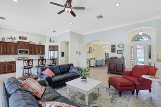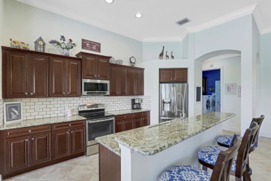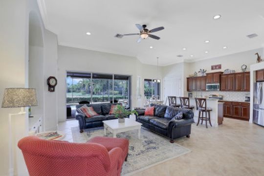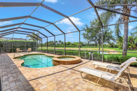 START LIVING A VACATION LIFESTYLE IN THE QUARRY - NAPLES' ONLY TRUE BOATABLE LAKEFRONT & COUNTRY CLUB COMMUNITY! This light and bright "Belleflower (4 Bed, 3 Bath, 3 Car)" is situated overlooking the lake with western exposure and sunset views 365 days year. Long list of extras include: diagonal tile and luxury Coretec floors throughout; plantation shutters; oversized crown molding; ELECTRIC ROLL DOWN HURRICANE SHUTTERS on the lanai and front door; solid wood cabinets throughout the kitchen and baths; heated pool/spa; 12' ceilings/8' doors; oversized and extra long driveway; newer Washer/Dryer & Refrigerator; pool bath; and more! The Quarry is a RESORT STYLE LIVING COMMUNITY offering something for everyone: resort pool; Tiki Bar serving Lunch & Dinner 7 days a week; Restaurant; Full Time Activities Director; Fitness Center; Tennis; Bocce; and Pickleball. $15M expansion/renovation to be completed by Season 2023. The Golf Lodge & Golf Club offer an 18 hole PGA Level Hurdzan Frye course and its own private clubhouse & restaurant (Memberships available but not mandatory). Go boating/skiing/sailing/jet skiing on 500 acres of fresh water lakes!