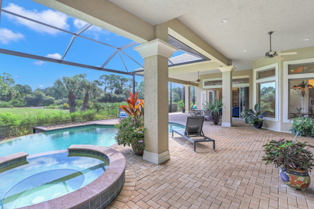 Fabulous ranch-style GOLF VIEW estate! Custom-designed for a classic casual lifestyle with open spaces living large inside and out. Enjoy special family time on the expansive lanai featuring ample covered seating and lounging areas, sunny infinity-edge pool w/ spa ~ both gas heated, a propane line for your poolside BBQ, and two pool baths. The new panorama screen enclosure enhances your golf vistas within the private setting of hole #9. Indoors, high tray ceilings w/ crown molding create an abundance of light. The seamless living area is complemented by 3 bedroom suites, an office + a powder bath. Life centers around the chef's island kitchen including stainless Thermador gas cook top, double ovens, SubZero refrigerator and walk-in pantry; a butler's pantry w/ wet bar, beverage frigde and 2nd Bosch dishwasher makes entertaining a breeze. A gas fireplace, custom wood cabinetry, lots of storage...luxuries abound. An oversized 2.5 car garage has a separate golf cart bay plus an A/C storage room. The North Naples location of Collier's Reserve is prime - close to Vanderbilt Beach, excellent shopping & dining at Mercato or the Waterside Shops, and the Naples Arts Center.