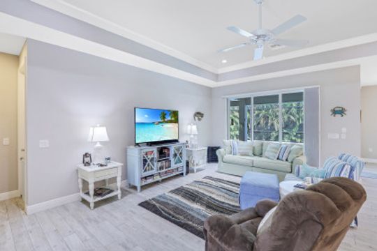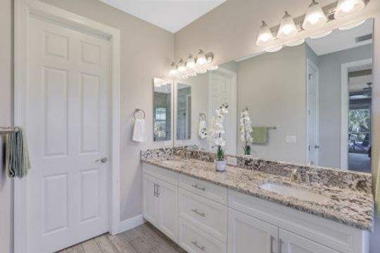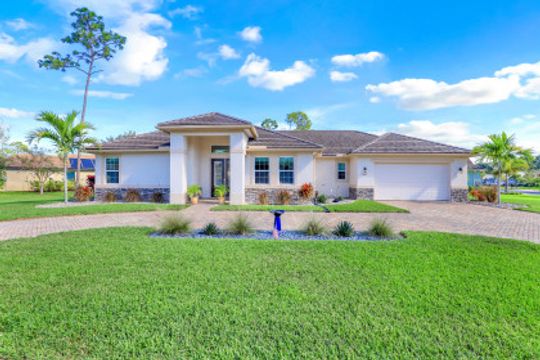 This home is Amazing and is a must see to believe!!! Low HOA fees of only $155 quarterly! Some of the many upgrades include Hurricane Rated Windows and Sliders, High Coffered Ceilings with Crown Molding, Huge Brick Paved Circular Driveway, Oversized Garage, Tile Roof, Stacked Stone Finish, Separate Mud and Laundry Room, Upgraded Cabinets, and Beautiful Wood Tile Flooring, 8 Foot Solid Core Doors, Frameless Shower Enclosures, Upgraded Granite Counters, and Whirlpool Stainless Steel Appliances. The den has French doors and can be used as a 4th bedroom. The home features security cameras in the front and is ready for you today!