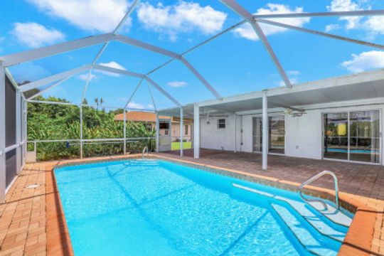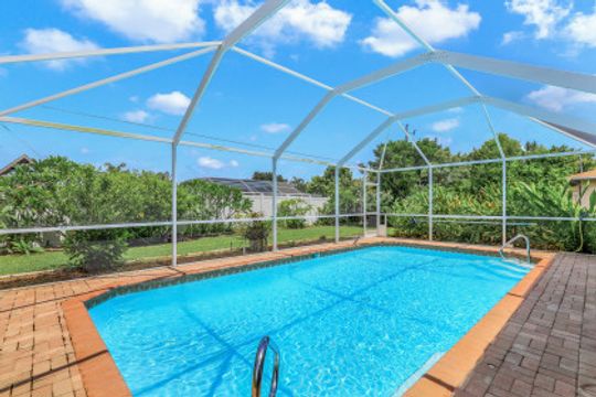 Cape Coral Pool Home with 3 Bedrooms, 2 Baths, 2 Car Garage, Built 1976 with 1192 SF Living Area. Features include: Chair height toilets 3-4 years old, Roof replaced in 2005, Owners Suite with Walk-in Closet, Paver Pool Deck, Garage Door Screen, 2 Sheds, Fenced Backyard with Coconut Palm tree, Mango tree and a Fig tree, among other landscaping. This Home needs Work & Updating, is being Sold As-Is, and seller will make No Repairs. UTILITY ASSESSMENTS ARE PAID IN FULL. HOME IS NOT IN A FLOOD ZONE. See Today and Make Your Best Offer.