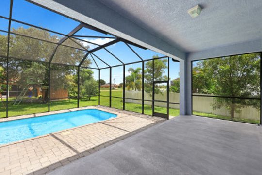 NEWER BUILT POOL HOME! Don't wait to build - this beauty was built in 2018 to all the toughest industry standards and is ready for you NOW! Home features 3BR, 2.5BA with 2 car garage and over 1700 sq ft of living space. Open great room floor plan with split bedrooms features polished porcelain tile throughout the main living areas. The kitchen features granite countertops, stainless steel appliances and lots of cabinet space. There are additional cabinets and counter in great room perfect for entertaining and storage. The owners suite has his and her walk-in closets, dual sinks, jetted tub, granite countertops & tiled shower. Outdoor living stands out featuring large covered sitting area, large screened sun deck and features crystal blue electric heated chlorine pool - 7ft deep! Convenient central location close to the Pine Island corridor, shopping & dining. Take a short drive to enjoy everything SWFL has to offer, including, white sandy beaches, world class fishing, boating, kayaking, paddle boarding, tubing & jet skiing! Schedule your private tour!