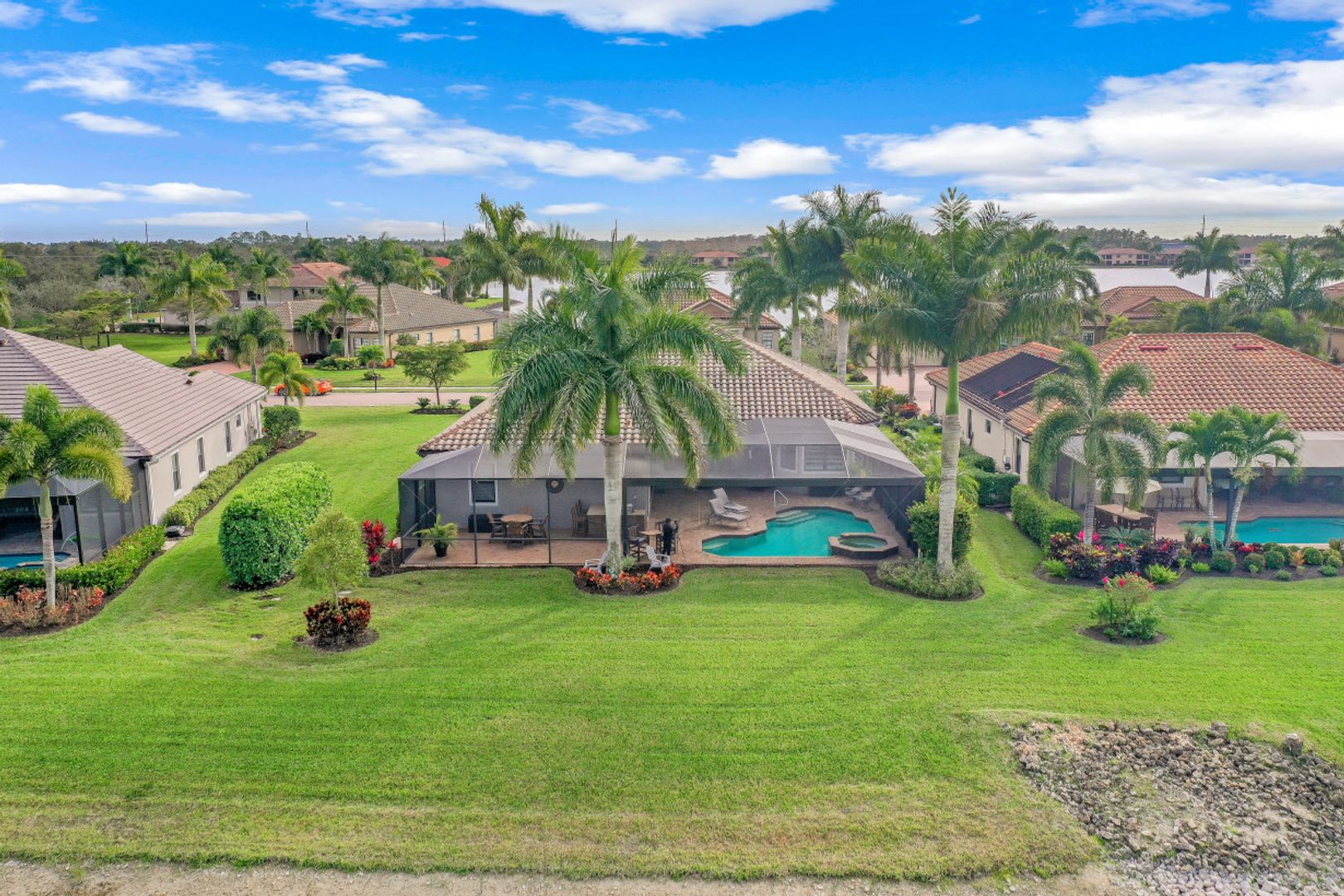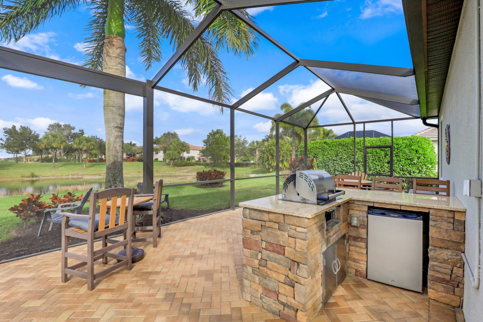 LIVE A VACATION LIFESTYLE IN A COUNTRY CLUB SETTING! HERITAGE BAY IS ONE OF NAPLES MOST PRESTIGIOUS BUNDLED GOLF COMMUNITIES WITH FULL GOLF MEMBERSHIP! This pristine "Doral" model Estate Home has 4 bedrooms, 3 baths plus a 3 car garage and is situated on a quiet cul-de-sac with beautiful water and golf views! The remodeled kitchen features quartz counter tops, stainless steel appliances and opens up to the great room. The large EXTENDED lanai has a picture window, saltwater pool and spa, an outdoor kitchen and plenty of room to entertain family and friends while enjoying the view of the golf course. This home has been recently painted on the outside, has impact windows and doors, storm smart shutters, and has been APPROVED and is in process of obtaining a NEW ROOF! Heritage Bay has just completed a $10 Million renovation which and the special assessment fee has been PAID IN FULL by the sellers. Resort style amenities include a 27 Hole Championship Golf Course, Gorgeous New Clubhouse with a grill room with inside and outside dining, formal dining, New Cabana Bar by the resort pool, 7 Har Tru Tennis Courts, 2 Pickle Ball Courts 3 new Har Tru Bocce Balls Courts, and a Fitness Center.