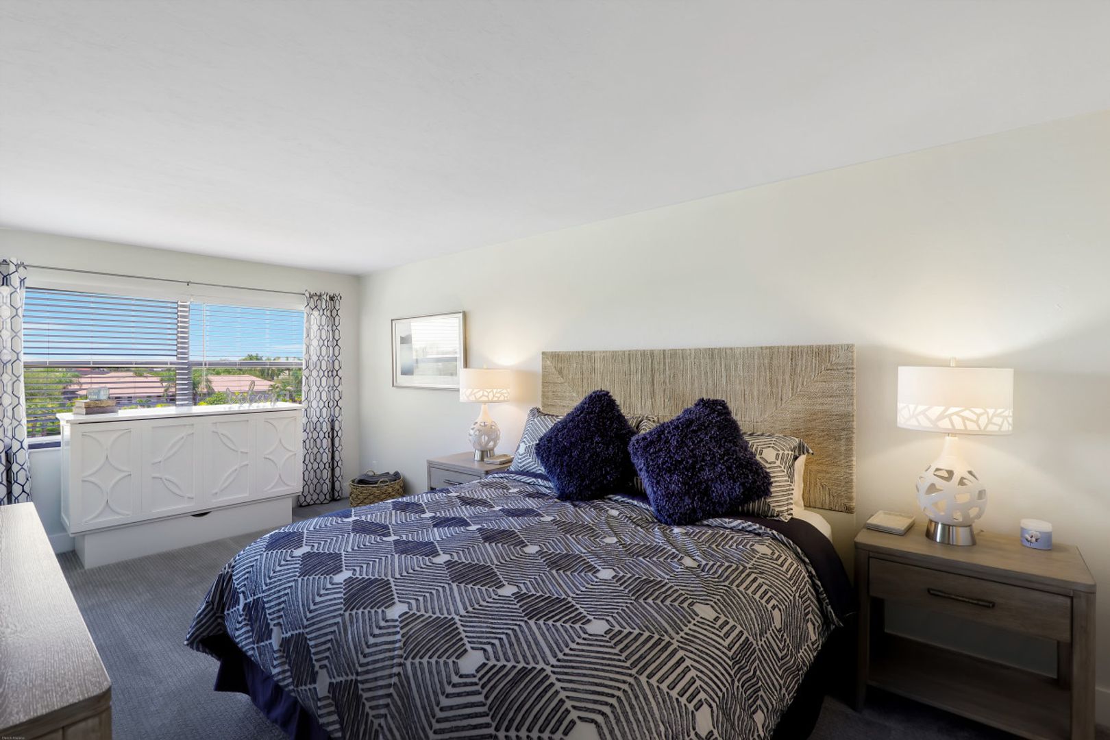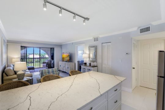 CHARMING! COASTAL! RENOVATED! CONDO! This TOP floor unit is Ready to use and ENJOY now! Updates completed in August 2019- including all new appliances, bedroom carpet, New Base and trim throughout, painted, light fixtures, all furnishings, custom window treatments. accessories, king size bed and a pull out sleeper in Bedroom.. quartz counter tops.. Anglers Cove is a resort style waterfront property- Dolphin Tiki bar/restaurant located on the property, next door to Rose Marina where you can rent boats, charter fishing, take the Key West Express & Marco Princess dinner cruises.. great central location close to restaurants, shopping and more! Anglers is one of the few weekly rental buildings too making it a great investment! Amenities include Tennis courts, 2 Pools, 3 hot tubs! Water and Electric included in your Condo Fee!