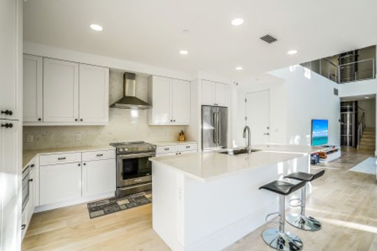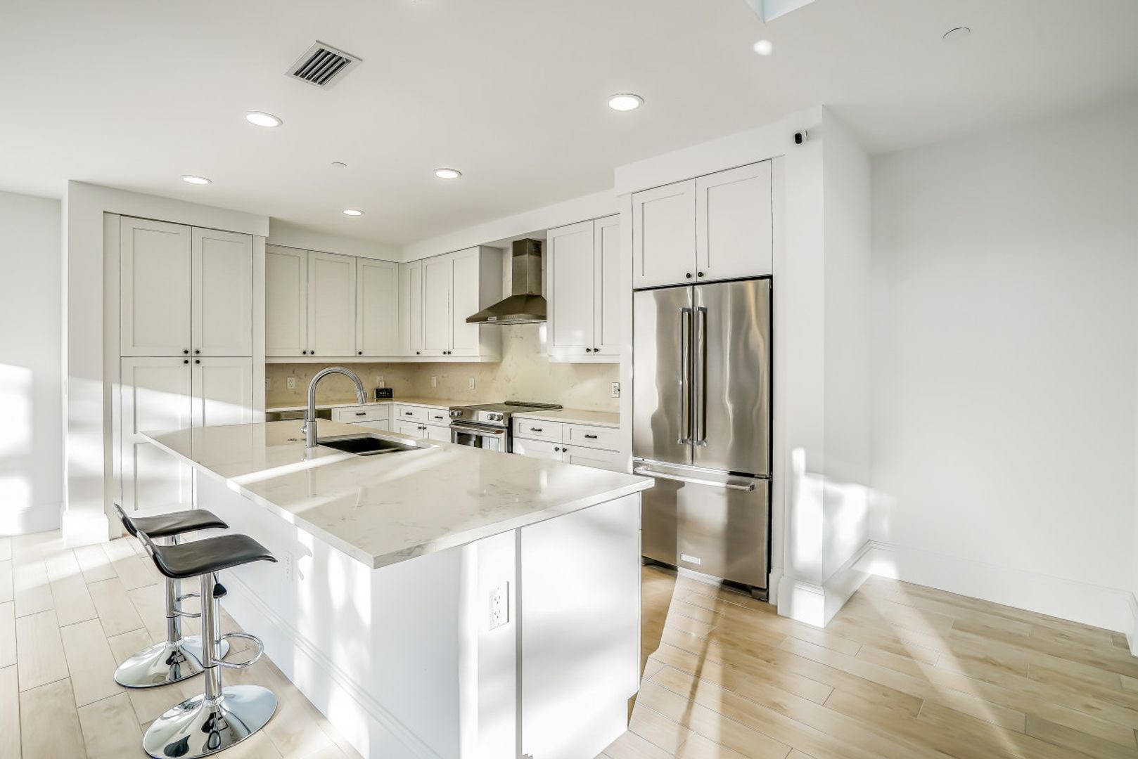 The home has all the conveniences of a condo, but lives like a house with a private street entrance, large terrace and attached oversized enclosed garage. A pristine, clean slate fitted with neutral finishes awaits your personal touch. Enjoy the comfort of an AprilAire healthy air system, impact windows and doors, private elevator & security including cameras. Further upgrades include quartz countertops & backsplash, custom cabinetry and an additional Juliet balcony & slider in the primary bedroom…