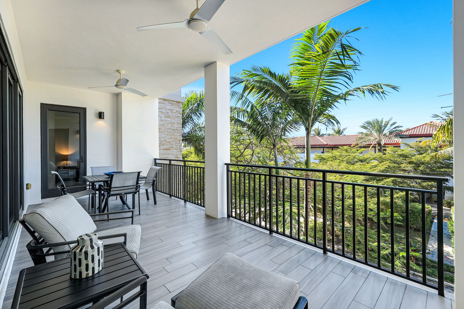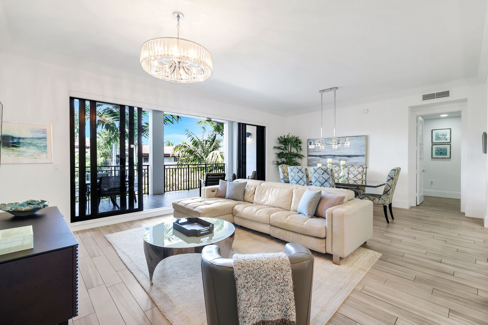 Welcome to this beautifully maintained, turnkey-furnished condominium in the heart of the Naples Design District. Western exposure bathes the home in warm afternoon light, while lush palm trees surrounding the lanai create a private, tropical oasis.