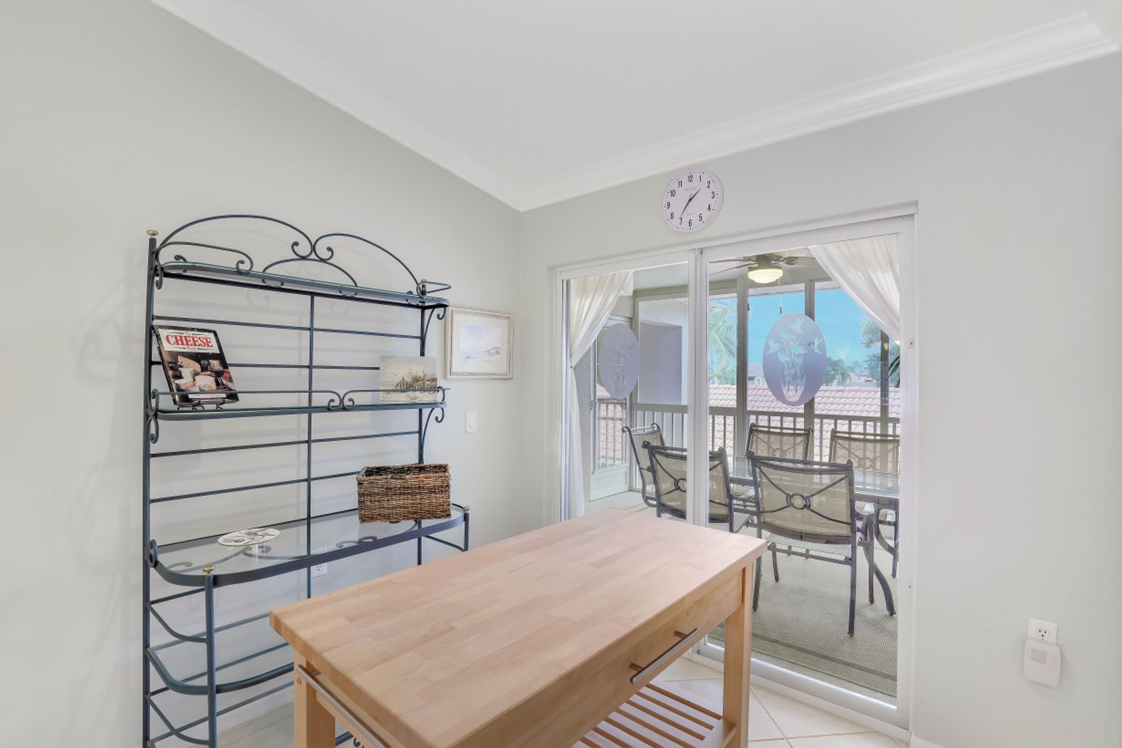Custom built dry bar with granite top, with detail wood trim around dry bar and kitchen bar area.
