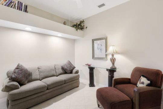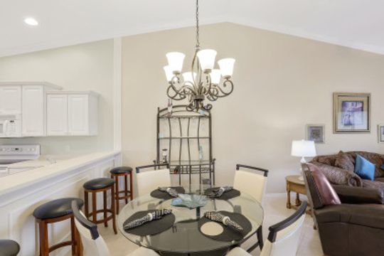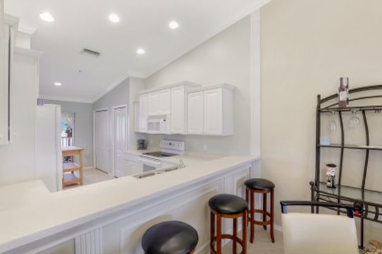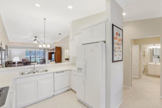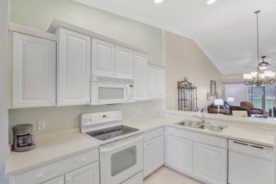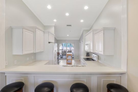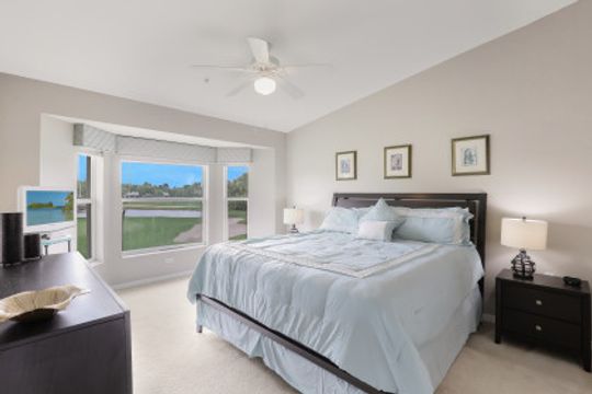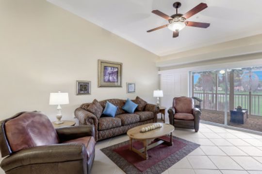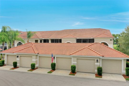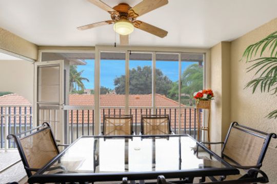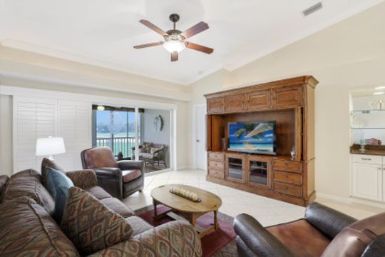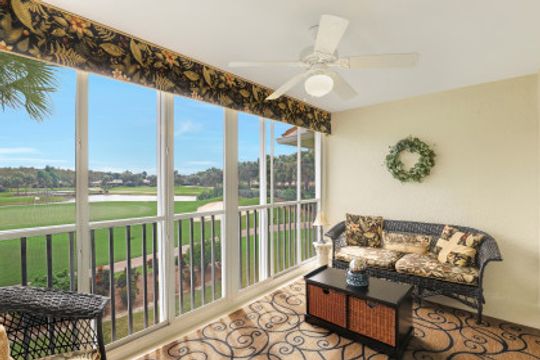 GREAT LOCATION! SPECTACULAR VIEWS overlooking lake and green of the Sabal golf course. THIS GORGEOUS TOP FLOOR BARRINGTON has Acrylic enclosures expanding front & rear lanai living areas. Top floor-vaulted ceilings, diagonal set tile throughout living areas, plantation shutters in living room.