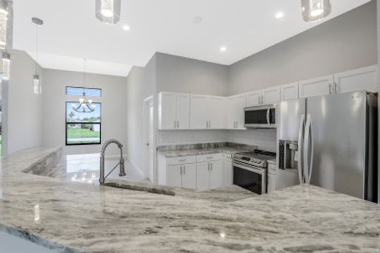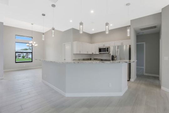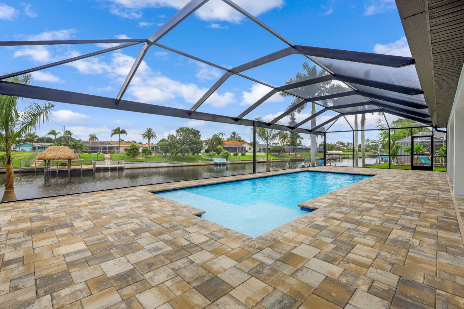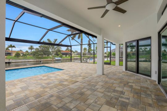 Exceptional opportunity to own a brand new GULF ACCESS pool home in SE Cape Coral overlooking the extra wide Tequila Canal and Rubican Basin. Due to complete in April, Villa Serenity features impact windows and sliding glass doors, a 32x12 foot pool, modern palette and a multitude of upgrades. Boasting 2069 sqft this 3 bedroom 2 full bath modern home features open floor plan centered around the pool, water view, and Florida lifestyle! Situated on an oversized corner lot with 100' of brand new seawall. Built to the highest standards 10ft panels were used raising the elevation of the original seawall by 18 inches. Transferable builders warranty. Assessments are in and 100% paid. Exceptional location with convenient access to both Veterans Bridge and Cape Coral Pkwy Bridge. Pictures updated on 2/5. Spec selections and detailed floor map available upon request.