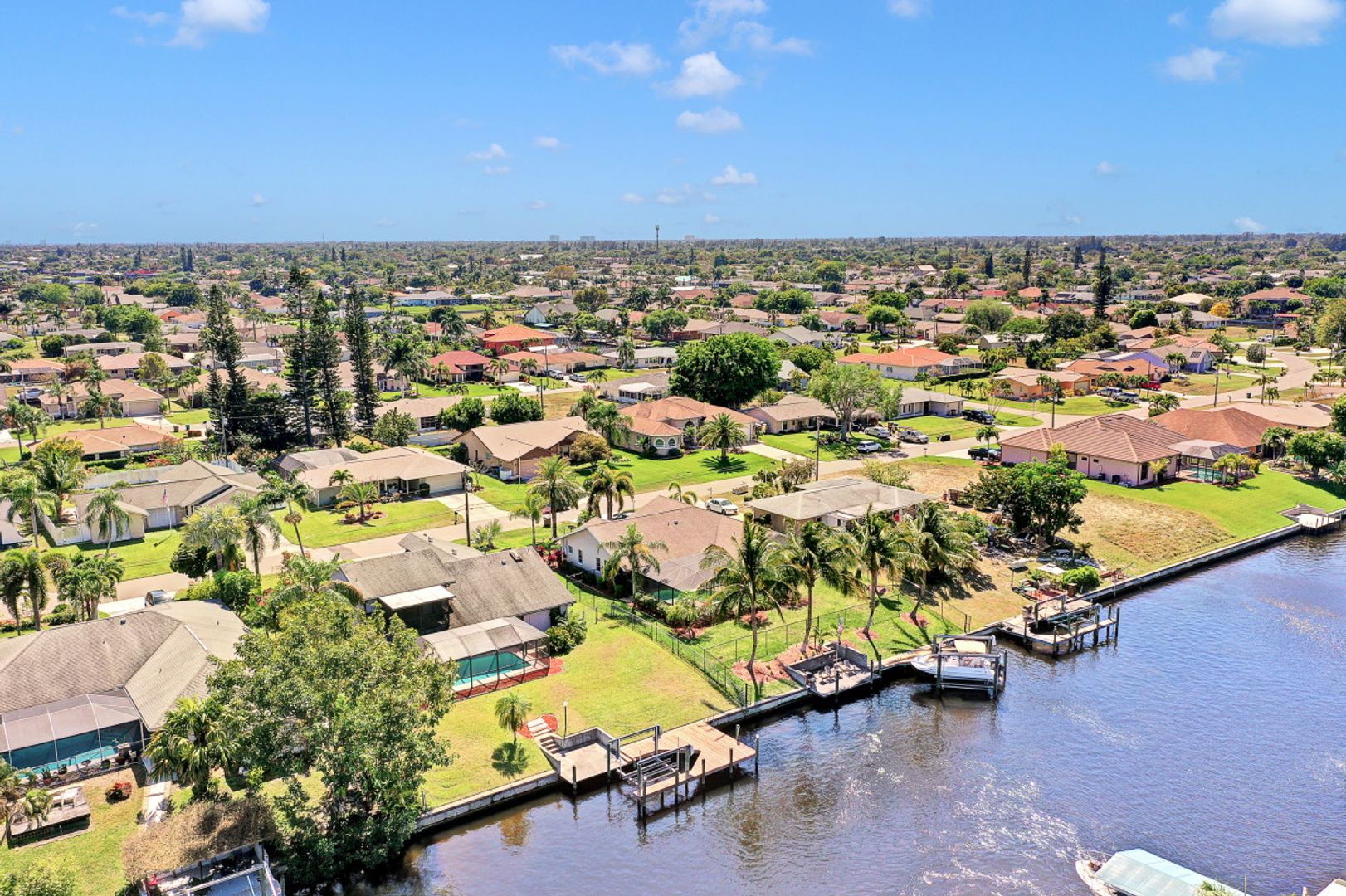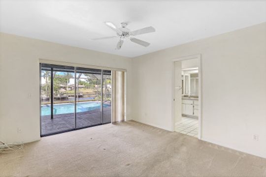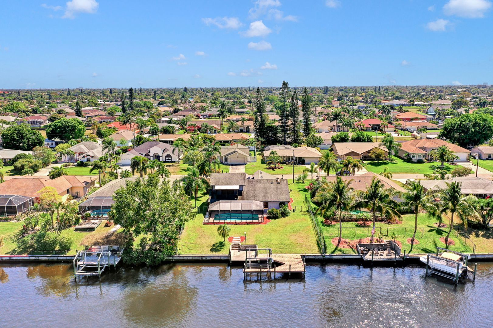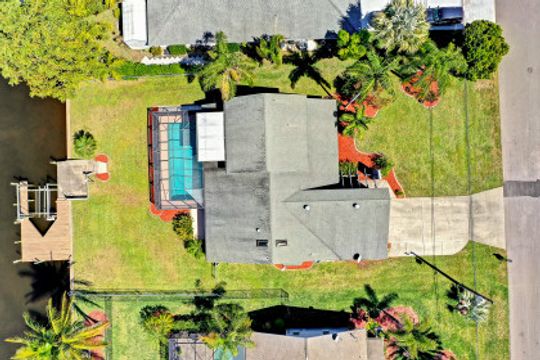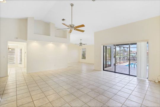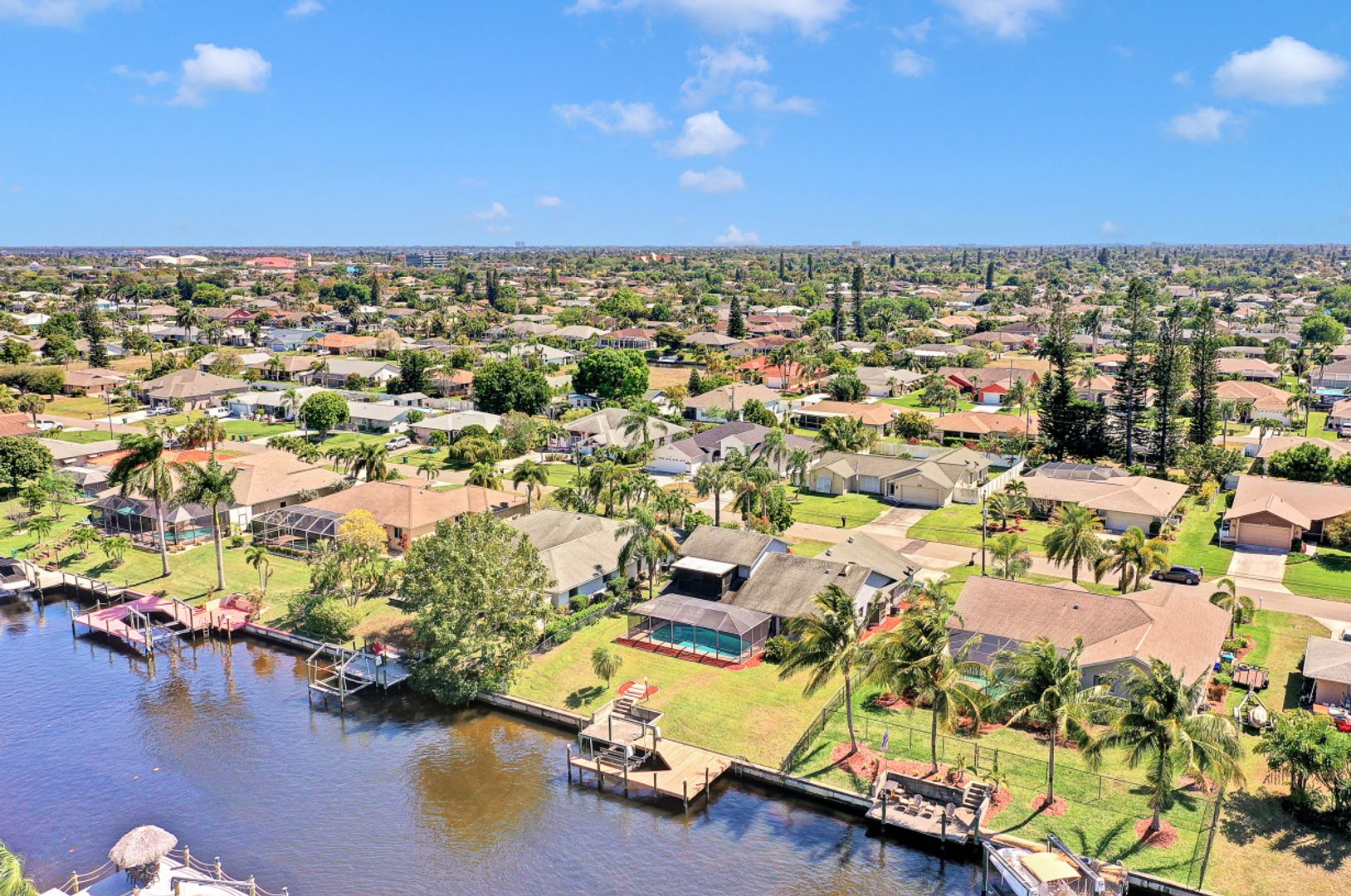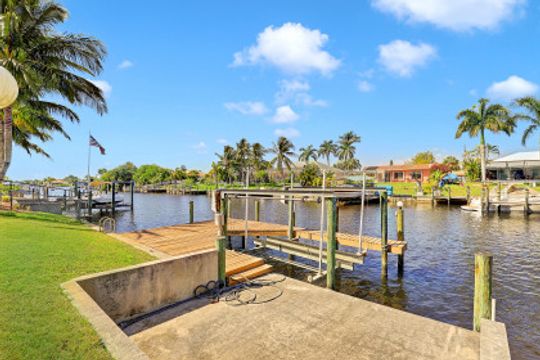 Amazing location with Gulf access and minutes to the river. This spacious three-bedroom, three-bath plus den offers a floor plan with over 2,200 square feet of living space, a boat dock and a lift. The second-floor room could serve as a master bedroom with a walk-in closet, balcony and full bath. While it needs few updates, this home features skylights in the kitchen, tiles in the main area, a spacious lanai and a generous-sized pool facing the canal. Palm trees around the house and a secluded location—this home is just minutes to some of the great shopping and dining of Cape Coral and a short boat ride to the Gulf.