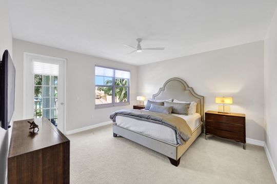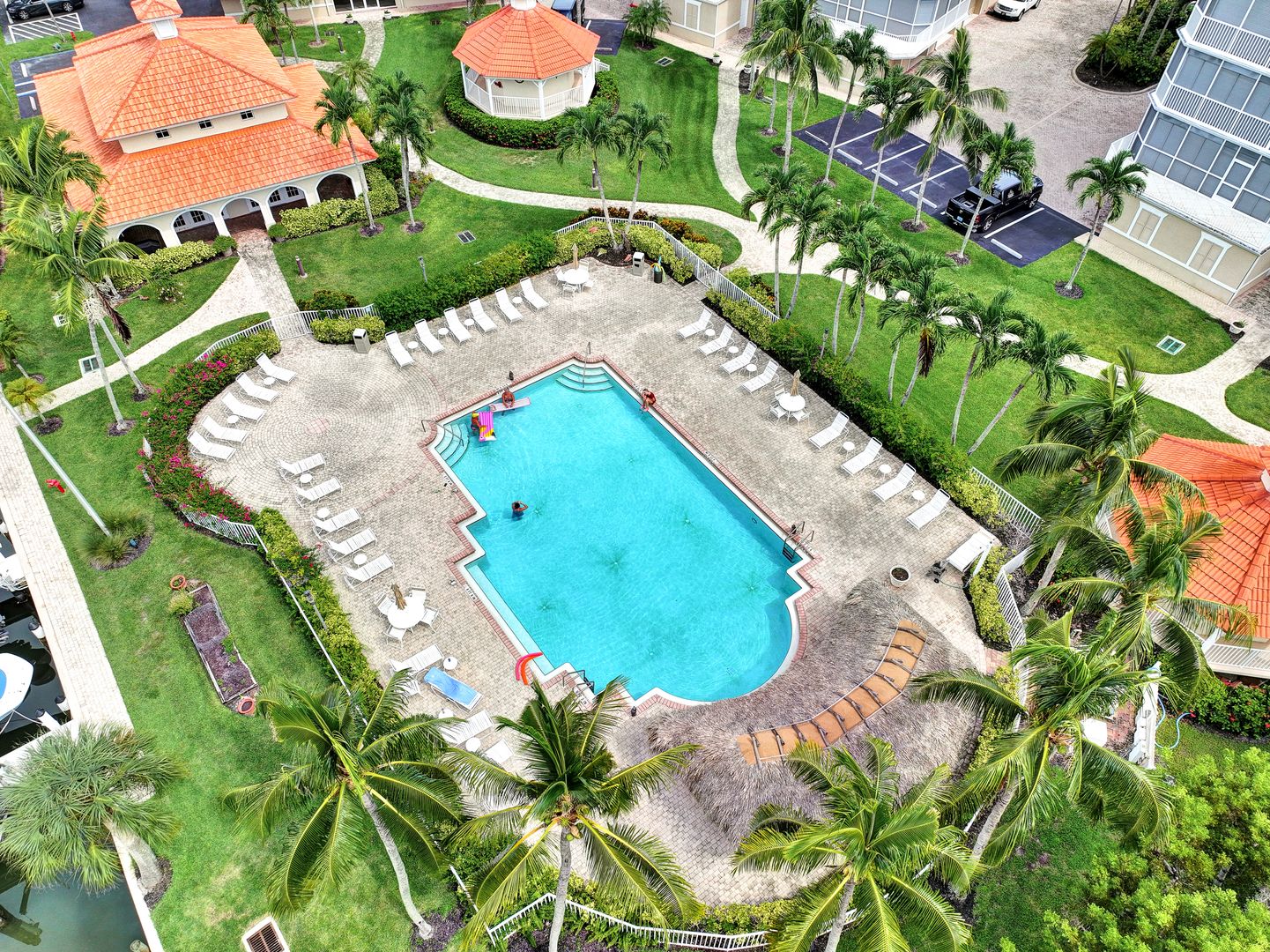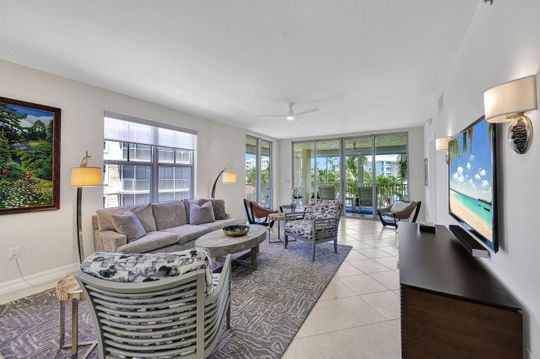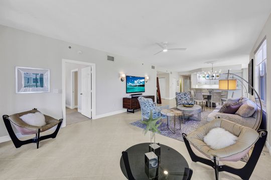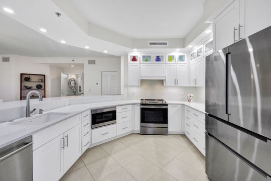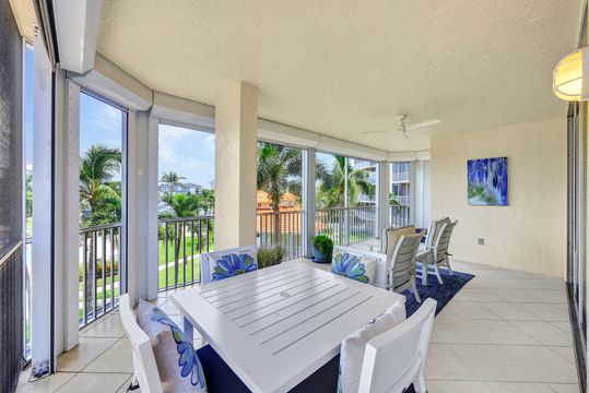 Luxury living the minute the elevator opens to your private foyer and French door entry. You will be captivated by the wall of windows and bright space that highlights the clean lines of this beautiful Southwest facing condo. Only two units per floor, this thoughtful 3 bedroom, 3 ½ Bath layout is both open for entertaining yet private with the split bedroom design. A variety of enhancements including a stunning new gourmet kitchen, HVAC, Water Heater, electric shades in kitchen/dining to name a few. A spacious wrap-around screened lanai takes in the coastal views of the canal waterway, pool, & swaying palms and is accessed by both the living room & Owner's suite. The Owner's retreat offers two walk-in closets, a tiled shower, soaking tub,& dual sinks. The second lanai is accessed by both guest suites. Sophisticated furniture design, electric shutters in front lanai, in-unit laundry & offered turnkey makes this a great investment for this well sought after condo complex. A private one car garage included. Courtyard Towers offers an Olympic size heated pool, 5 boat lifts/slips for lease, Clubhouse & fitness center. Steps to South Beach entrance & shops & restaurants.
