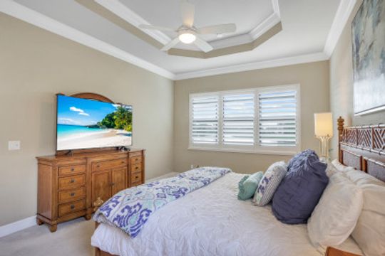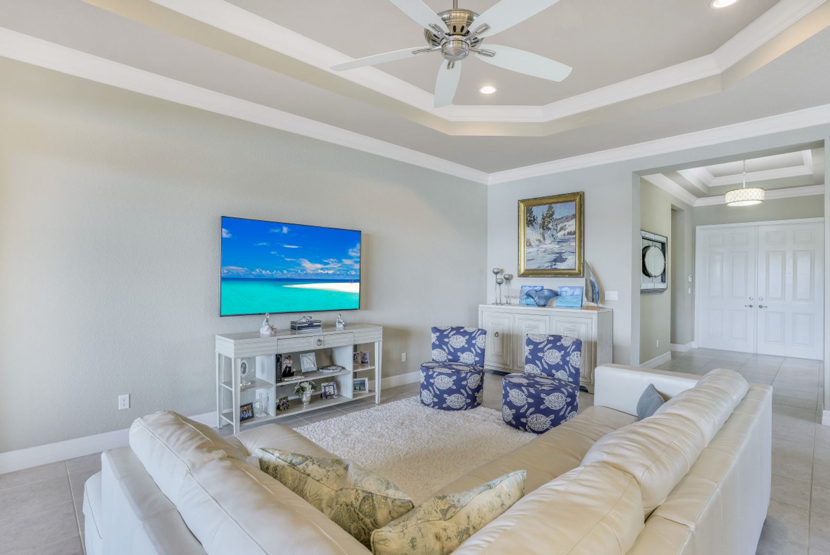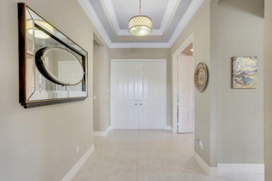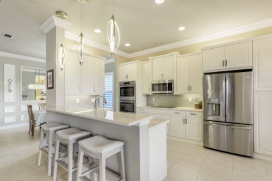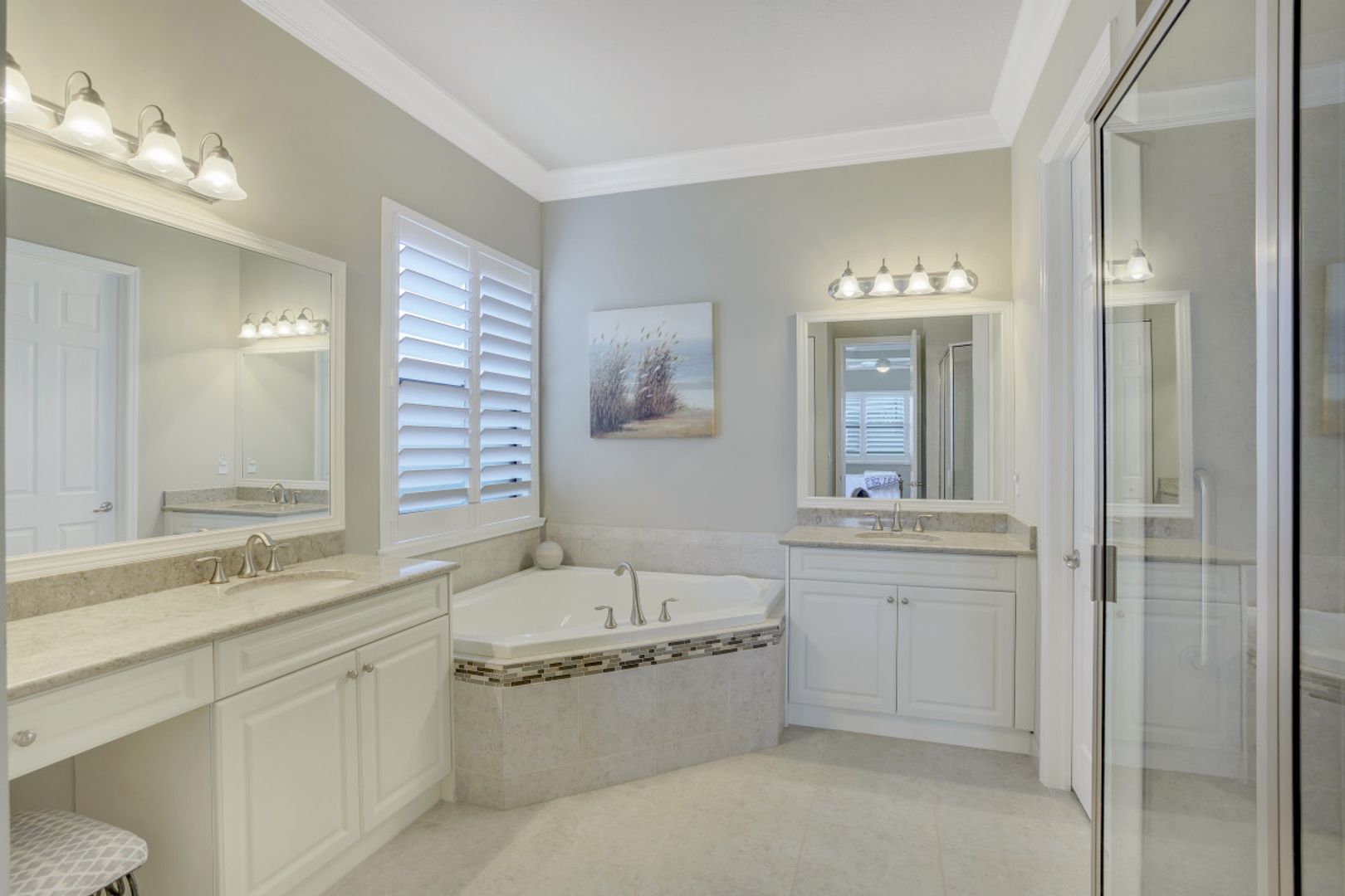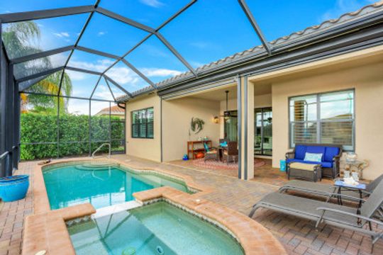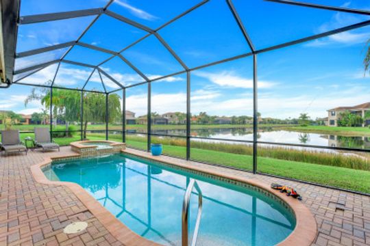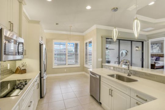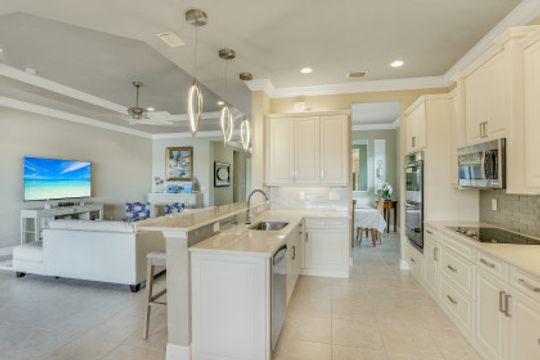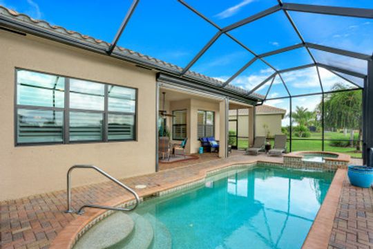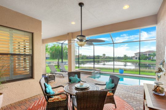 Welcome home to this beautifully appointed home in Marina Bay! The Granada by GL Homes is one of the most popular floor plans available in the community. This open and elegant layout boasts 3 spacious bedrooms, large office space, 3 full bathrooms and 3 car garage! The gourmet kitchen features stainless steel appliances, quartz countertops, wall to wall custom bright white cabinetry a breakfast bar that opens to the great room. Luxury finishes/upgrades include crown molding throughout, LED lighting, plantation shutters, neutral tile flooring in the main areas, & epoxy floors in the garage. The rear lanai offers abundant covered/uncovered space, a pool & spa & a tranquil view of one of Marina Bay's sparkling lakes. Marina Bay has full resort amenities with pools, tennis, pickleball, basketball (indoor & outdoor), fitness center, social activities, playground, waterslides & splash pad. Low HOA fees include a gated entrance (with live security), lawn & landscape maintenance, and much more.