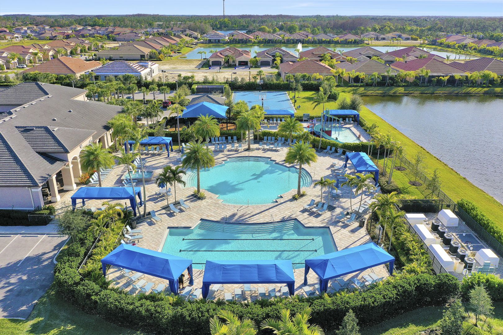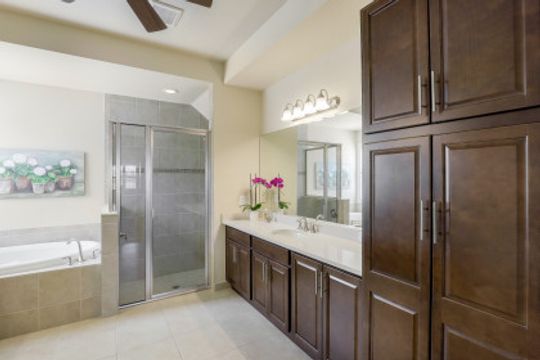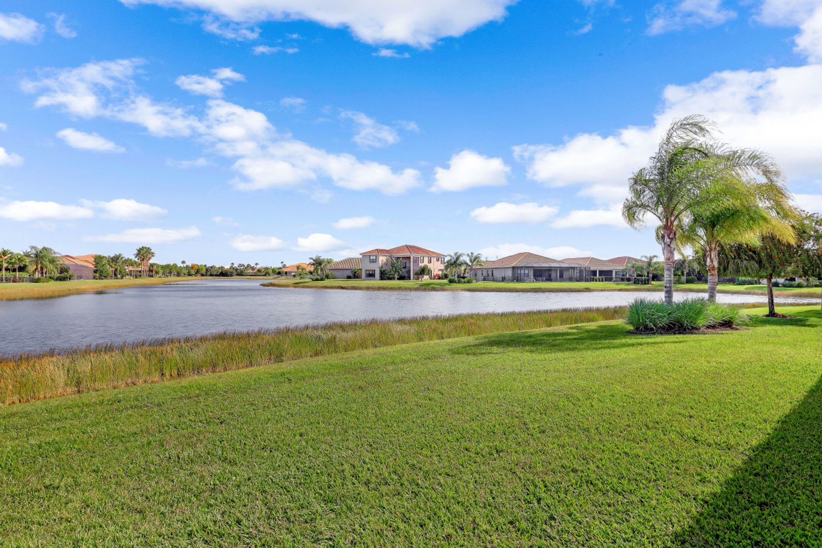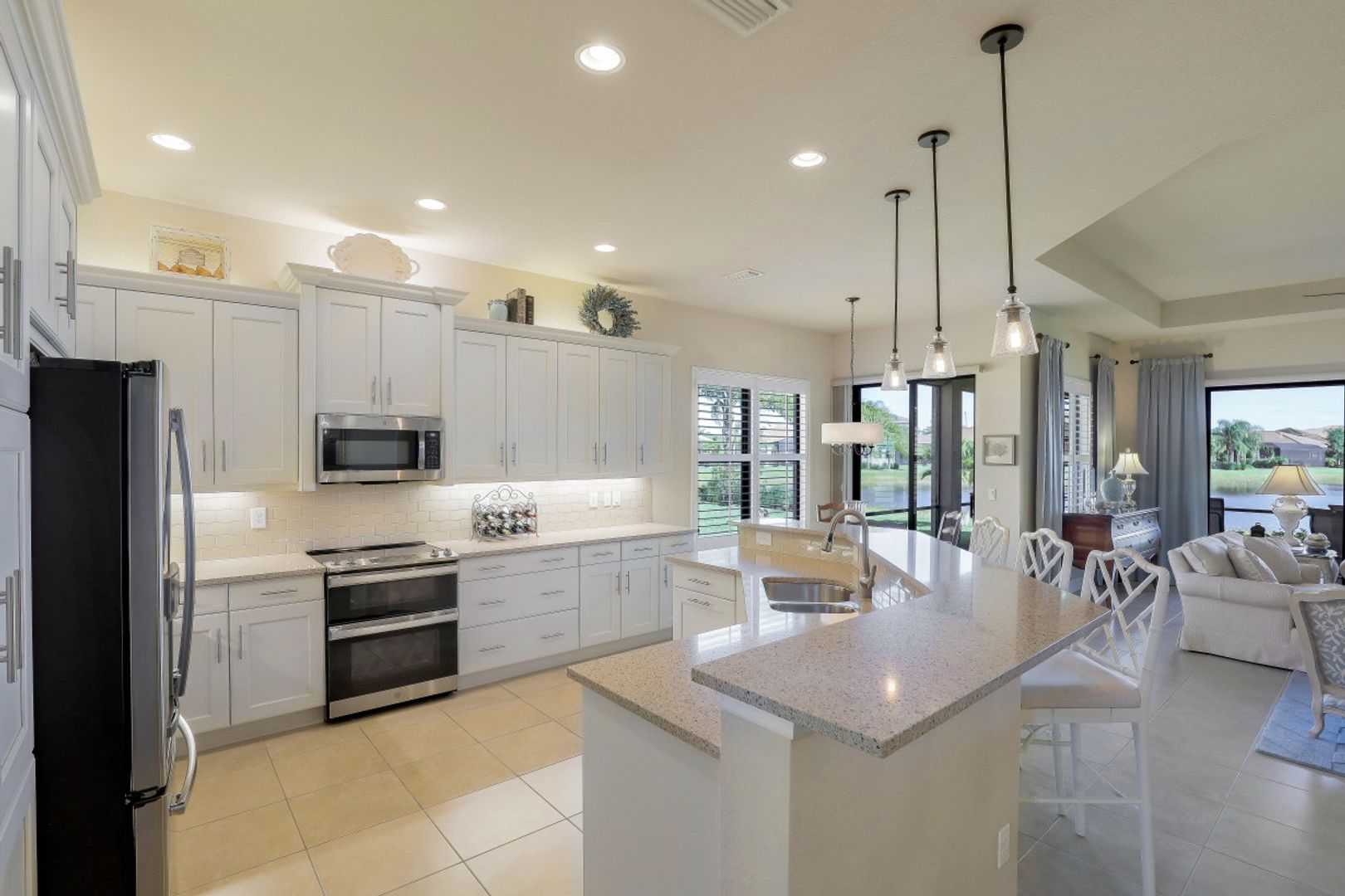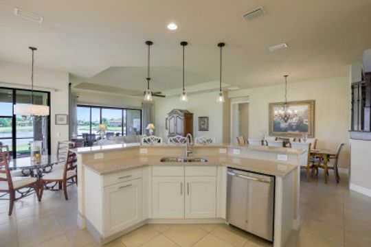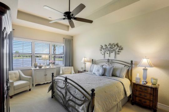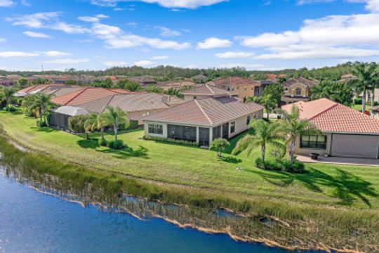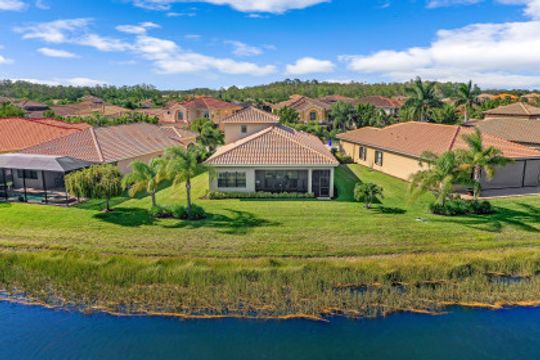 Welcome to this beautifully appointed home in Marina Bay, positioned with one of the best long lake views in the community! Built by GL Homes, this much desired floor plan boasts 4 spacious bedrooms, 3.5 bathrooms and an upstairs loft/media room with additional storage closets — perfect to accommodate you, your family and overnight guests. You’ll love the open concept kitchen with quartz countertops, glass tile backsplash, stainless steel appliances and quaint breakfast nook with views of the sparkling lake. Your private Master Suite offers you lake views, two large closets, and an en-suite bathroom with dual counter space, soaking tub and tiled walk-in shower. Additional upgrades include: plantation shutters, epoxy flooring and custom cabinetry in garage, custom window treatments, light/neutral tile flooring in the main living areas and extended covered lanai space with plenty of room to add a pool! Marina Bay has full resort amenities with pools, tennis, pickle-ball, basketball (indoor & outdoor), fitness center, social activities, playground, waterslides & splash pad. Low HOA fees include a gated entrance (with live security), lawn & landscape maintenance, and much more.