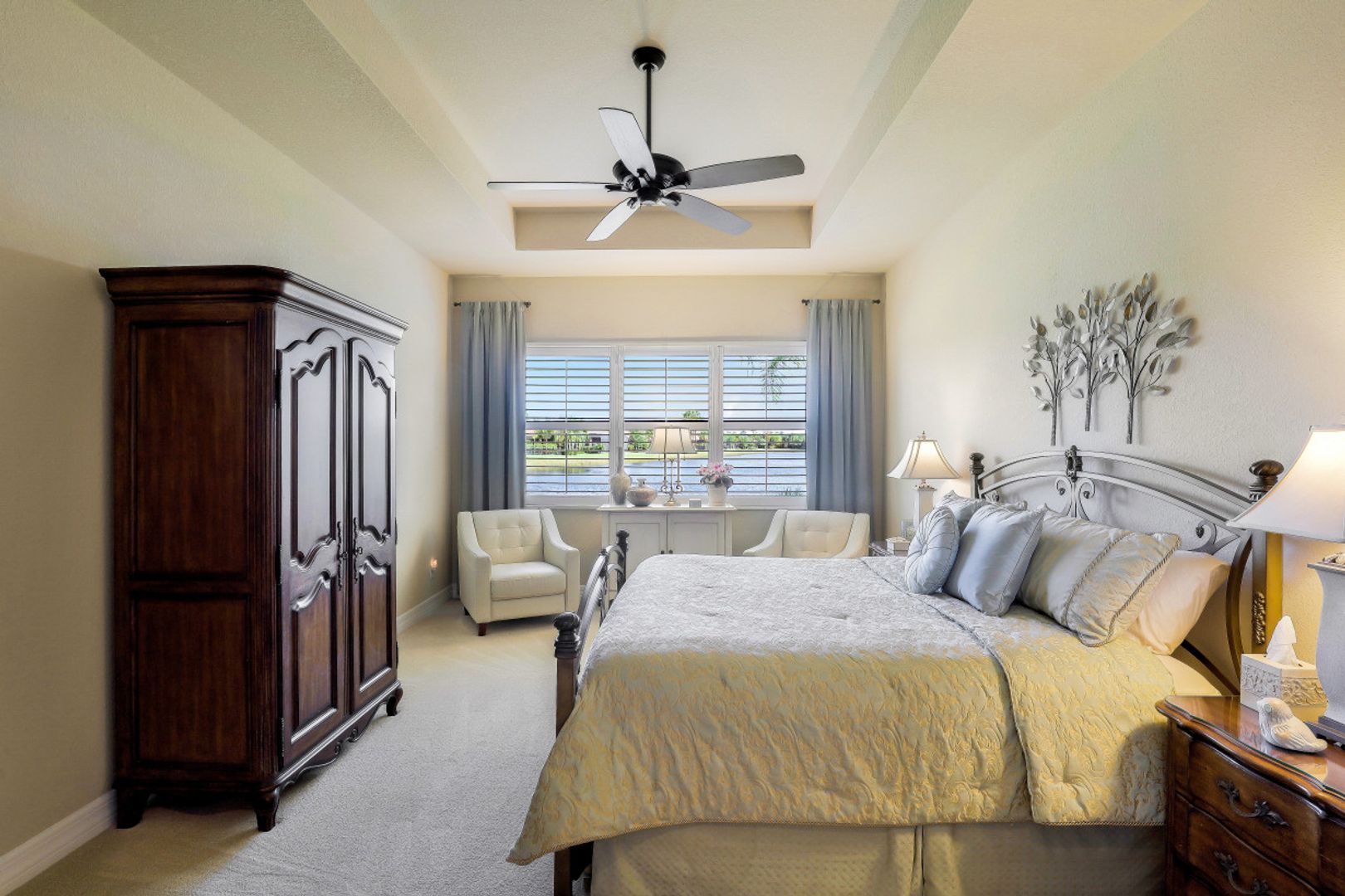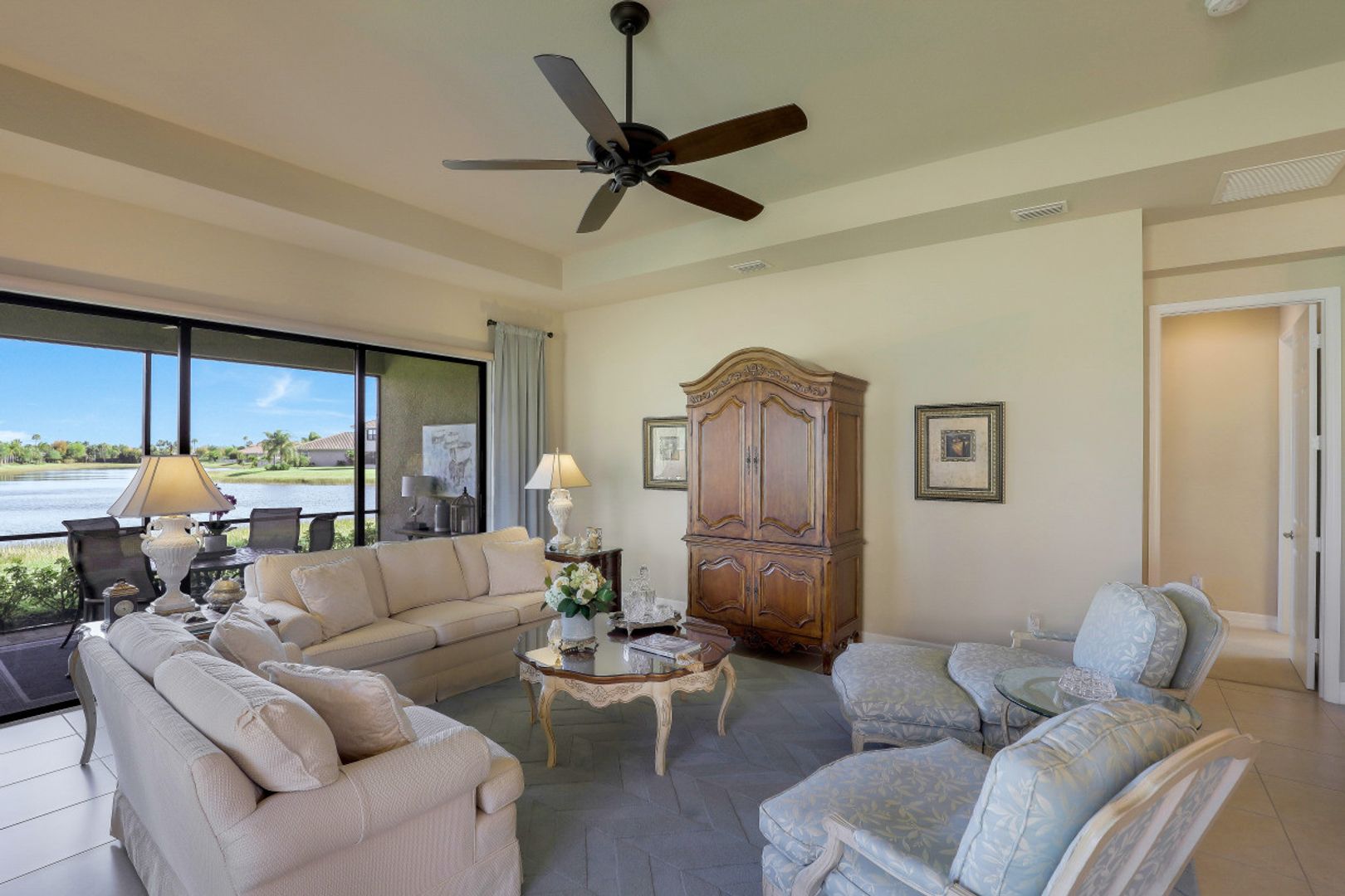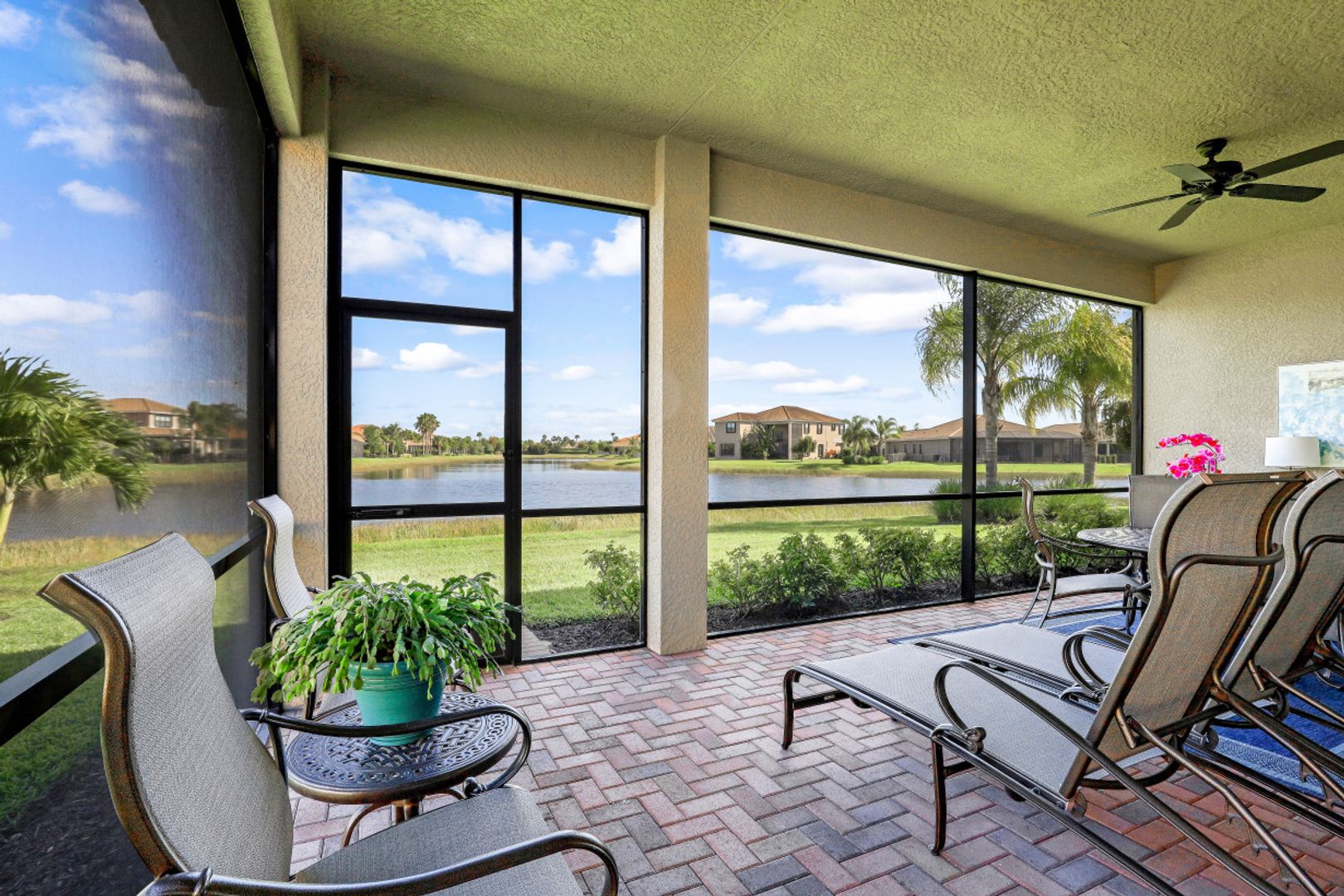 Welcome to this beautifully appointed home in Marina Bay, positioned with one of the best long lake views in the community! Built by GL Homes, this much desired floor plan boasts 4 spacious bedrooms, 3.5 bathrooms and an upstairs loft/media room with additional storage closets — perfect to accommodate you, your family and overnight guests. You’ll love the open concept kitchen with quartz countertops, glass tile backsplash, stainless steel appliances and quaint breakfast nook with views of the sparkling lake. Your private Master Suite offers you lake views, two large closets, and an en-suite bathroom with dual counter space, soaking tub and tiled walk-in shower. Additional upgrades include: plantation shutters, epoxy flooring and custom cabinetry in garage, custom window treatments, light/neutral tile flooring in the main living areas and extended covered lanai space with plenty of room to add a pool! Marina Bay has full resort amenities with pools, tennis, pickle-ball, basketball (indoor & outdoor), fitness center, social activities, playground, waterslides & splash pad. Low HOA fees include a gated entrance (with live security), lawn & landscape maintenance, and much more.