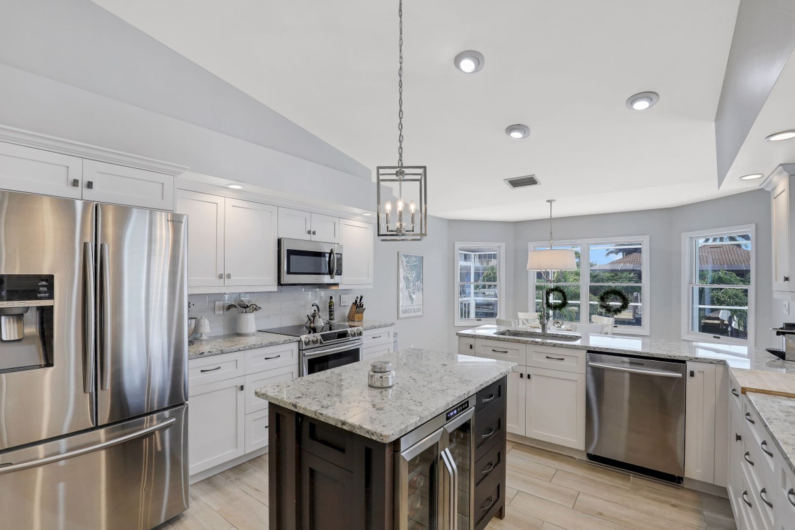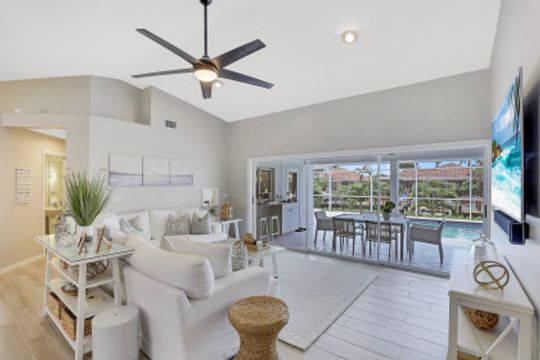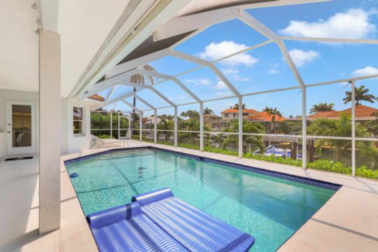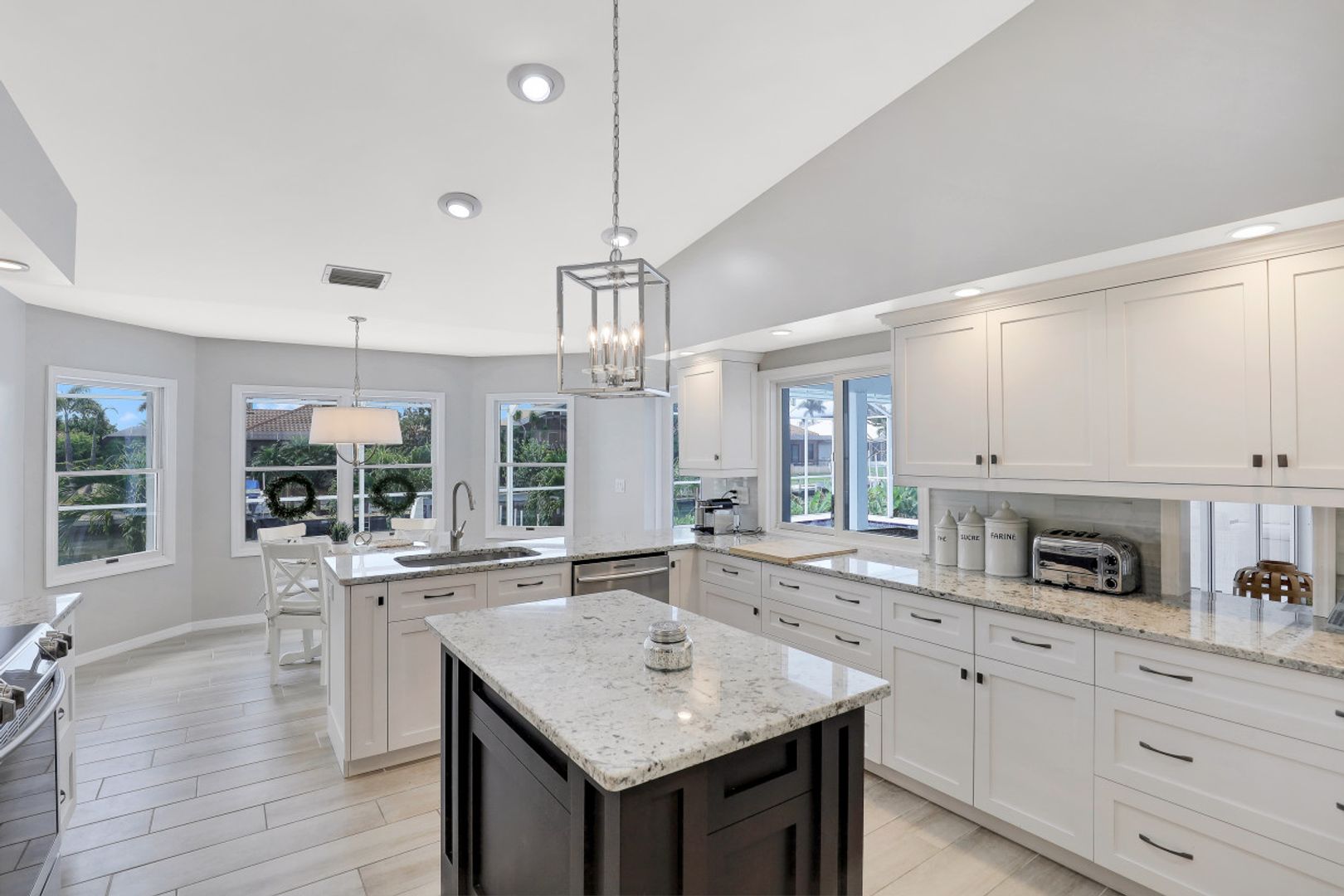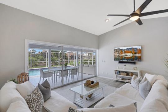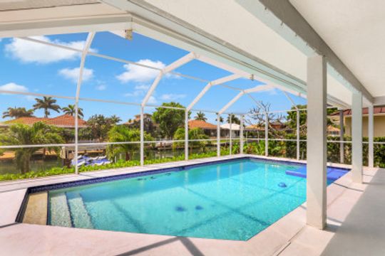 Consider this 3 bedroom and 2 ½ bathroom home your affordable (and beautifully renovated) opportunity to live within 0.6 miles of a public beach access. Its split-bedroom floorplan features popular wood-grain tile in main areas; a kitchen with granite countertops, glass backsplash, stainless-steel appliances, pantry, ample storage, and breakfast nook; a master bathroom with double vanity, quartz countertop, large tub, and separate shower; and a lanai with pool, coveted southern exposure, large shaded area, passthrough window from the kitchen, outdoor wet bar, outdoor shower, direct bathroom access, and banana trees in the yard. Major improvements to the home include a newer roof, HVAC system, water heater, pool heater, seawall, dock, 6,000-pound lift, and more. Also within walking distance is Marco Walk Plaza, offering numerous chic dining and shopping options, as well as the Island’s movie theater. This home would be an outstanding investment property, or your ideal home on Marco Island! What more could you ask for?!