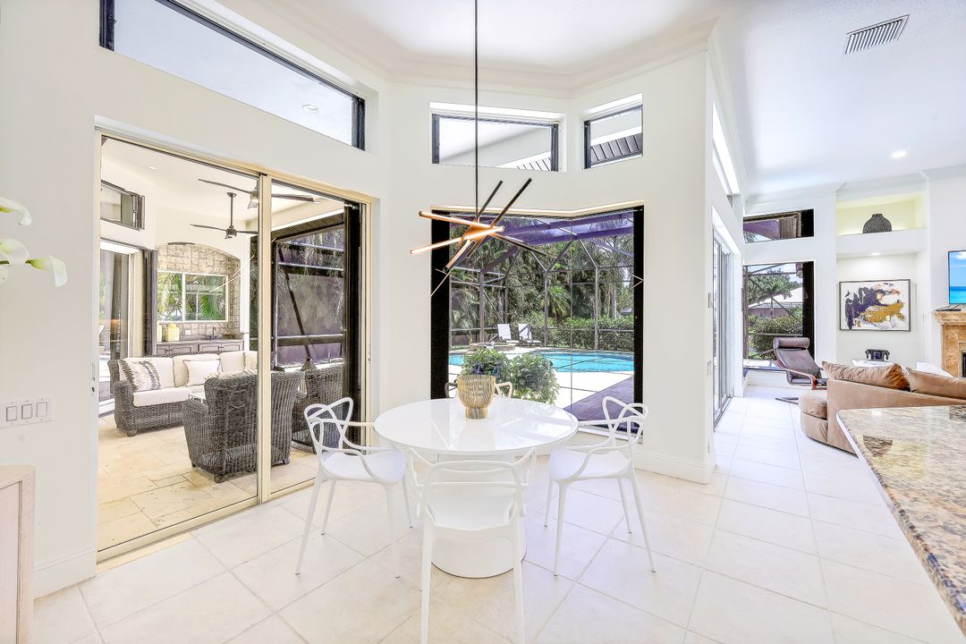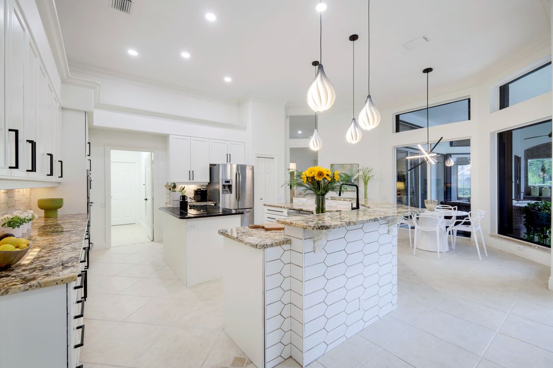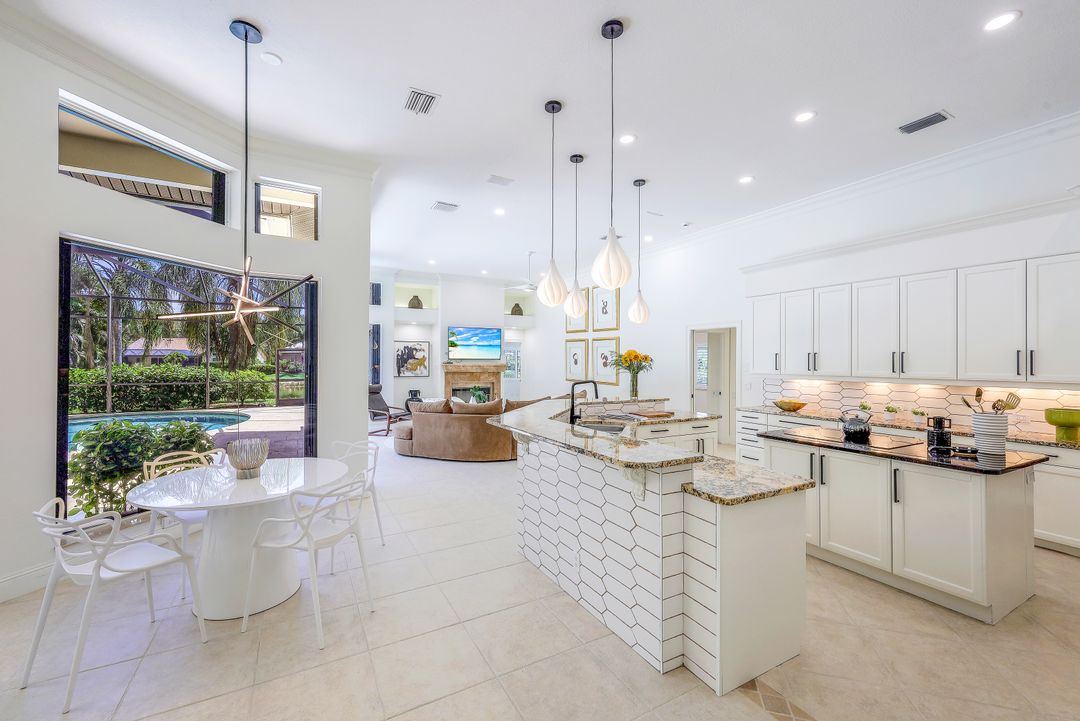 The one you have been waiting for! Sophisticated lake home sits on an oversized .50 acre manicured lot in the picturesque, low fee, no CDD community of Longshore Lake. With ~3,600 SF under roof, this Rutenberg "Bimini" is one of the largest single story family homes in Longshore. A split bedroom floor plan with two primary suites, this 4 bedroom+den, 3.5 bathroom home has tons of natural light via transom windows, volume ceilings, crown molding, a two car garage and room for everyone! Recently painted inside and out, this fabulous residence is move-in ready. An entertainer’s delight, the home centers around the gourmet kitchen w/stainless appliances, granite countertops w/center island, white wood cabinetry and tile backsplash. The kitchen opens to the family room w/a fireplace and lanai/pool access via glass sliders. The expansive outdoor area offers an abundance of space for dining and relaxing w/a tile deck, spectacular circular pool and lake and yard views. Newer roof (2018) and hurricane shutters. Amenities include clubhouse w/restaurant, bar and outdoor dining, fitness center, 9 Har Tru tennis courts w/full-time tennis Pro, miles of walking paths and playground.
