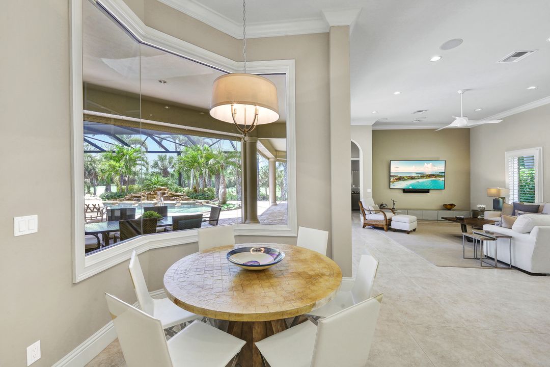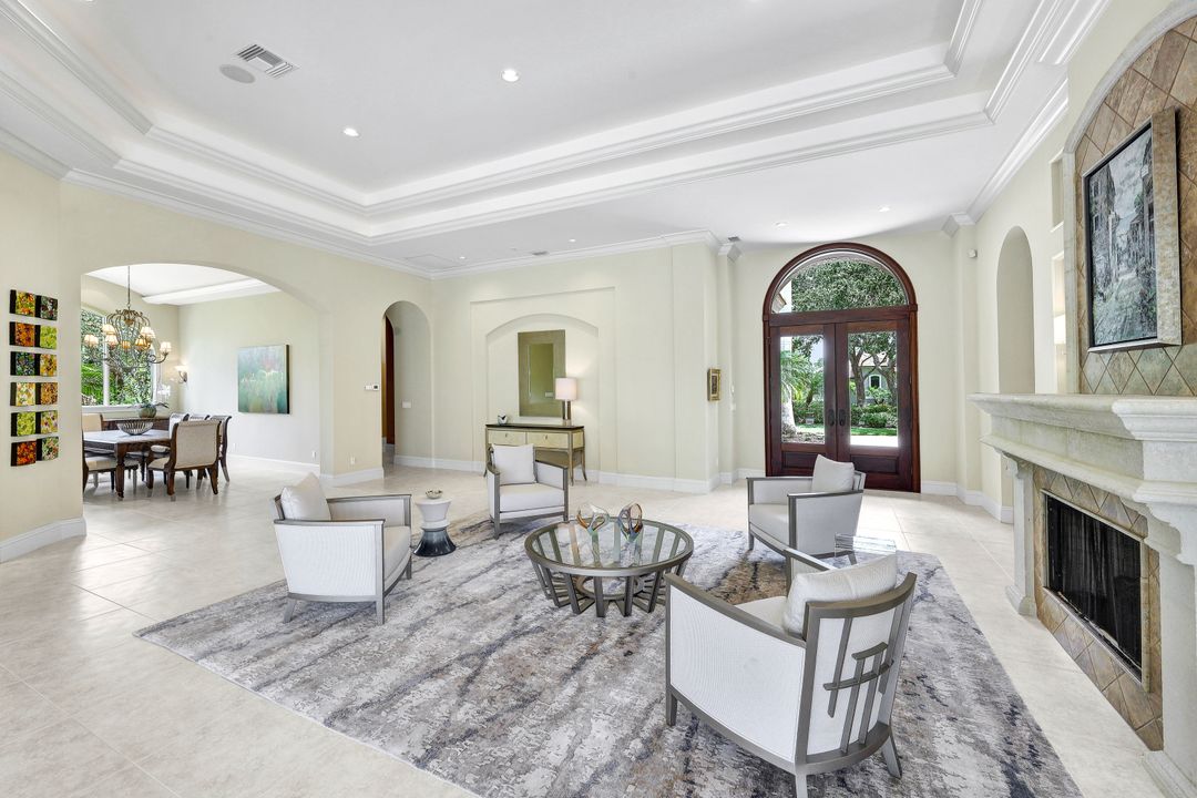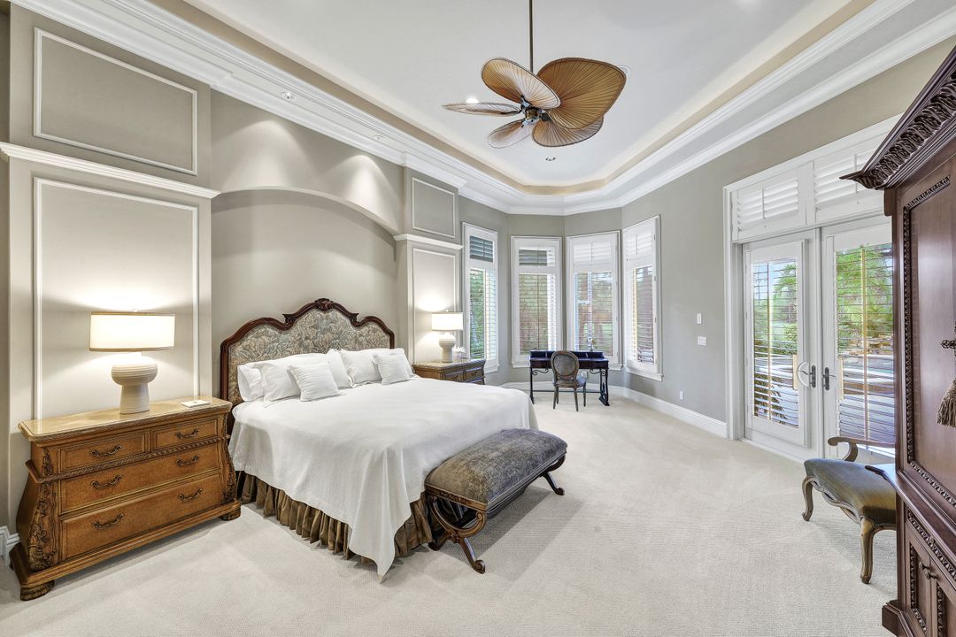 Paradise Found! WITH IMMEDIATE GOLF MEMBERSHIP OPTION. This sunset golf home on an oversized 0.60 acre lot overlooking hole #18 is just a short walk to the driving range and all the Club's amenities. Sunny by day, the estate shines by night. Perfect for indoor-outdoor living, the seamless layout is coupled with 10' zero-corner disappearing sliders to the lanai. The open design creates light-filled spaces that are enhanced by up to 14' high tray ceilings with rich crown molding and cove lighting. Recently renovated, the island kitchen with butler's pantry/bar and great room with fireplace are ideal to host family and friends. Poolside, a fabulous ‘living room’ includes a BBQ grill, wet bar with TV wall and ample seating area. Electric hurricane shutters protect it all. Focal point of the huge outdoors is the 40' gas heated pool with spa and water feature, complete with a new panorama-screen pool enclosure. All five bedroom suites come with private baths and custom-fitted closets; a beautiful custom wood office opening to the lanai and two half baths complement the spacious floor plan. 2 cars plus your golf cart park easily in the 3-bay garage with room for storage as well.