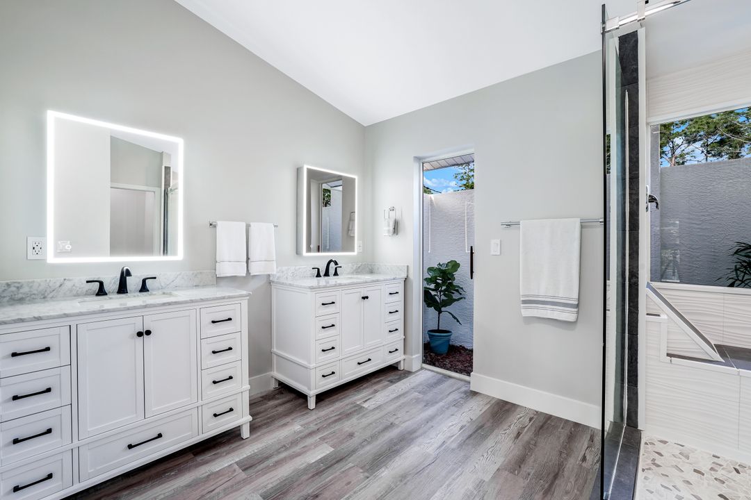 Welcome to your dream home retreat! Nestled on a tranquil road, this completely remodeled from the inside out gem offers the epitome of modern luxury living. Boasting three bedrooms and two bathrooms, plus an exterior lanai pool bathroom, this sanctuary exudes peace and tranquility! Security and comfort are paramount, with a comprehensive security system and a radio audio system enveloping every corner. Step inside to discover a haven of sophistication, with brand new everything: interior and exterior paint, irrigation system, pool control box system, landscaping, light fixtures, flooring, baseboards, electric fittings, and hardware. The heart of the home, the kitchen, is a chef's delight, featuring top-of-the-line brand-new appliances, soft-close cabinets, and quartz countertops. Indulge in purified water with the reverse osmosis drinking system while staying connected with USB and USB-C plug-ins in every room. Entertainment and relaxation await with two living areas, a formal dining space, and a cozy kitchen nook. Retreat to the master suite, where luxury knows no bounds. Enjoy the direct pool access and bask in the opulent master bath, boasting a picturesque view, a spacious shower with 3 showerheads and a bench, and dual vanities with oversized cabinet mirrors and LED lighting. Situated on half an acre of lush land, with the rare opportunity to EXPAND UP TO 2.5 ACRES, this home offers endless possibilities for outdoor enjoyment and expansion. Don't miss the chance to make this oasis your own slice of paradise! This will not last long so call TODAY for your private tour!
