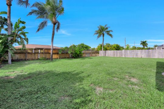 Welcome Home! You must see this Beautifully Updated 3 Bedroom Home with an Open Floor Plan. Features include an Updated Kitchen with Granite and Wood Cabinets, Updated Baths, Tile and Laminate Floors (No Carpet), New Roof 2016, New Air Conditioner 2017, New Electric Panel & Wiring 2019, Brand New Interior Paint, Windows Replaced in 2013, and Home Repiped in 2013. You will Love the Large Screened Lanai overlooking a Huge Backyard with Privacy Fence, a Shed for Extra Storage, and plenty of room for a pool. All Bedrooms, Living Room, Dining Room and Lanai are equipped with Ceiling Fans. This Move-in Ready Home is located in a Quiet Neighborhood close to everything, dining, shopping, schools, and has easy and quick access to Fort Myers. NOT IN A FLOOD ZONE & ALL UTILITY ASSESSMENTS ARE PAID. This Home is Priced to Sell!
