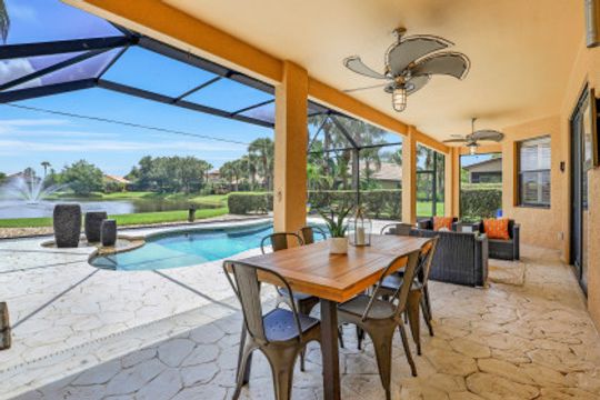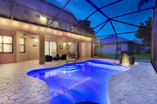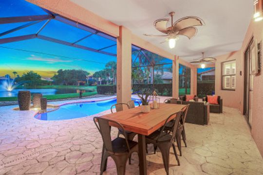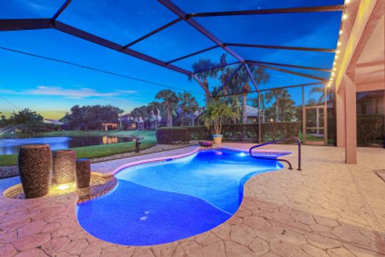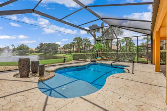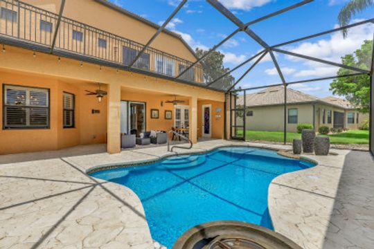 Been waiting for that truly one of a kind home to hit the market? THE WAIT IS OVER!! The owner, a luxury custom home builder has spent years designing and perfecting this beautiful custom home with every upgrade imaginable. If you are tired of the ordinary, be sure to put this one first on your list. You will be hard pressed to find a home of this calibre anywhere on the market today. The Grand Hampton features a spacious 3500+ square foot with 4 bedrooms and several bonus rooms that can accomodate your large family that include an entertainment room and your very own private theatre, 4 full baths and a 3 car garage. There just isn't enough I could say about the gourmet kitchen with custom wood cabinets (all the bells & whistles) and the finest quartz countertops, fixtures and appliances. Sun on your private sun shelf or just relax in your pool lakefront with a gorgeous direct view of the waterfall out of your frameless lanai. Your private pool is also customized with a fire and water feature. Please view the video tour and review the photo descriptions for more details on this one of a kind home. Being sold as you see it with minor list of exclusions. Your masterpiece awaits!